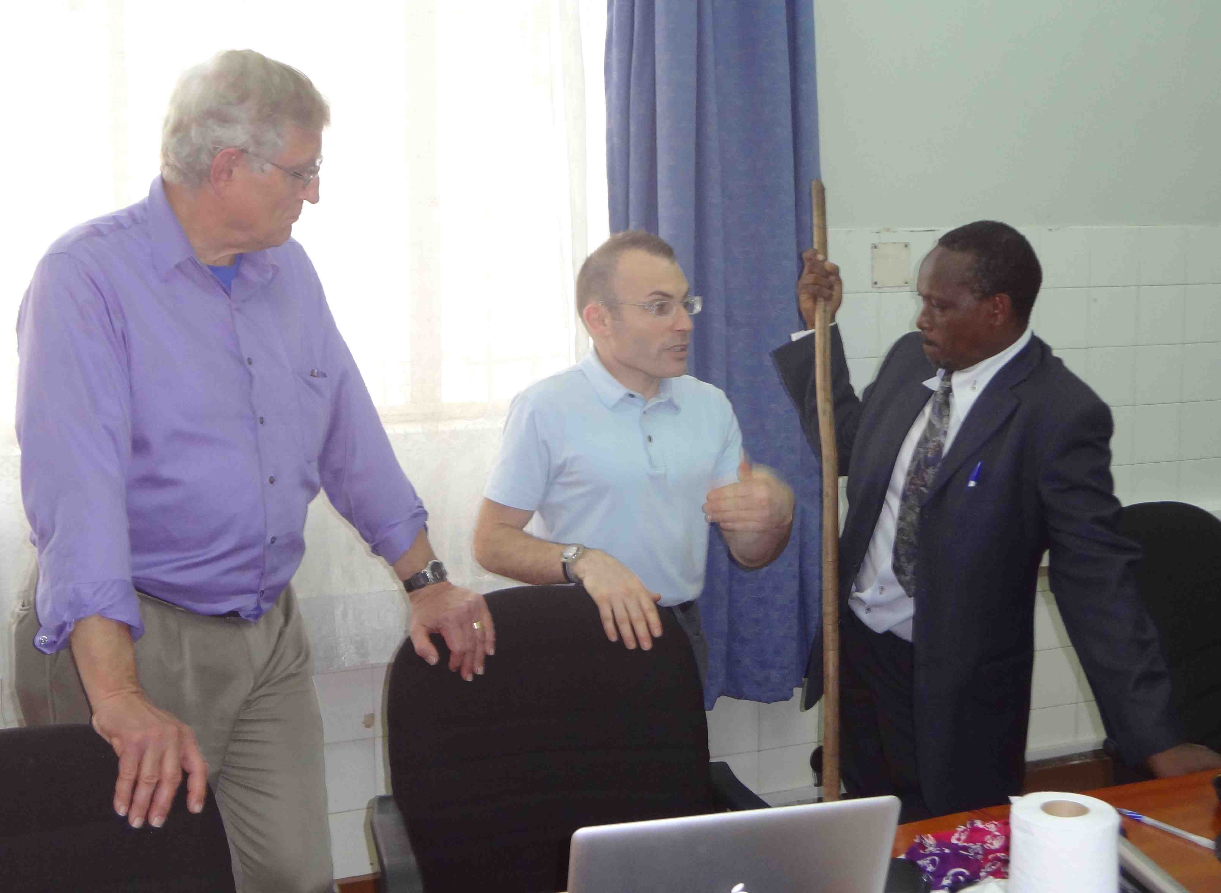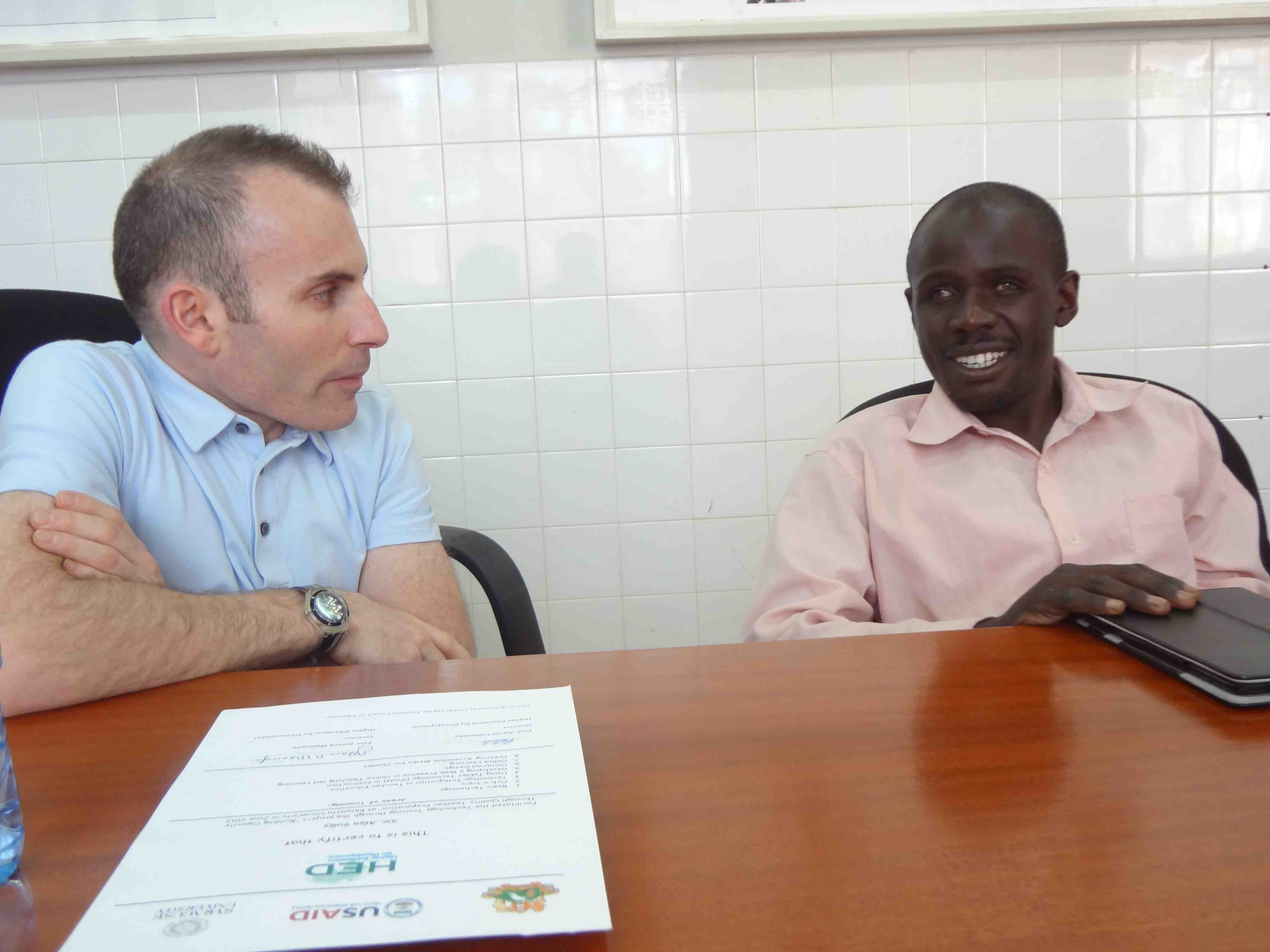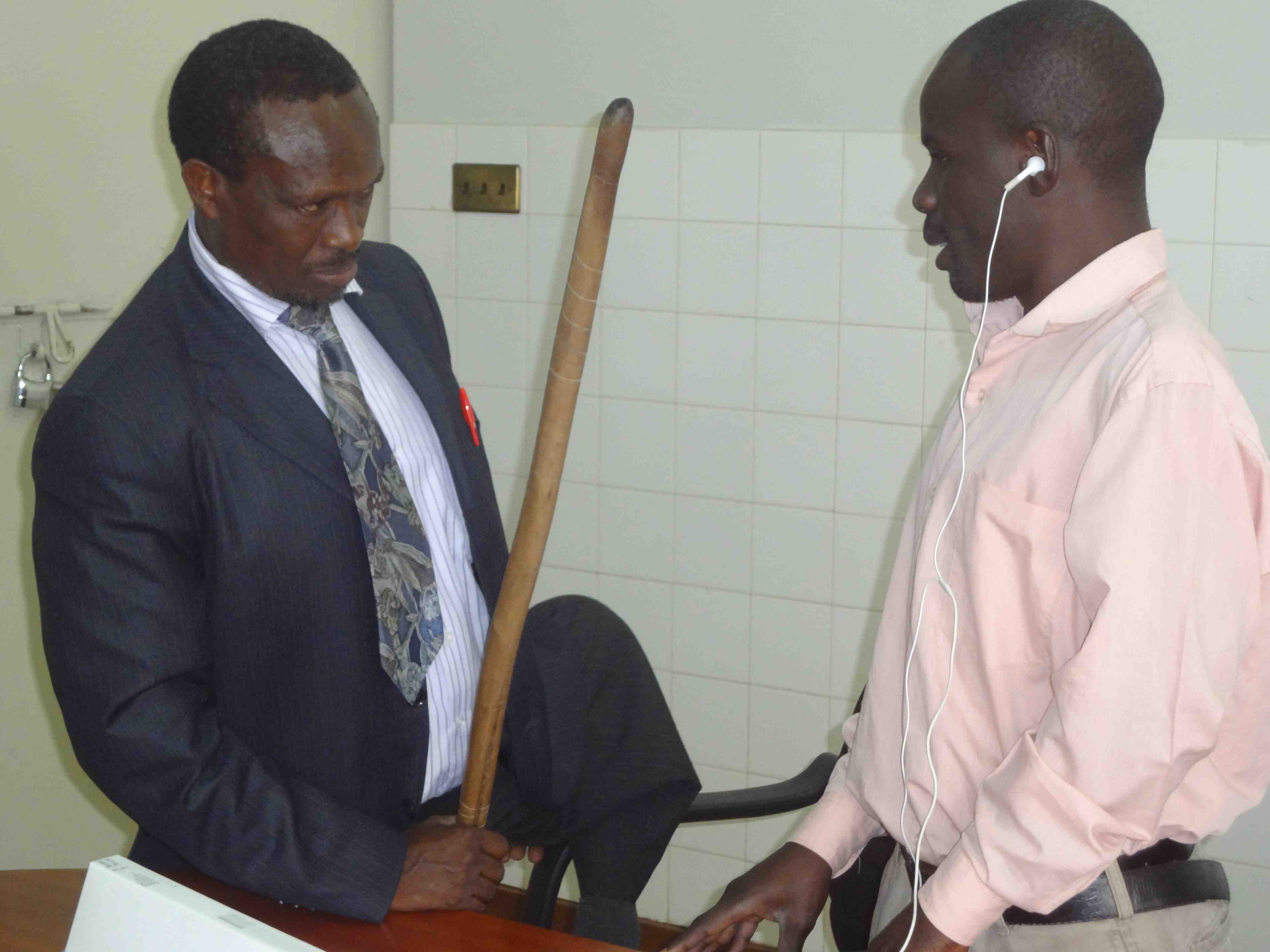 CaptionJoe and Alan talking with Prof. Mbugua, director of Disability Services at KU