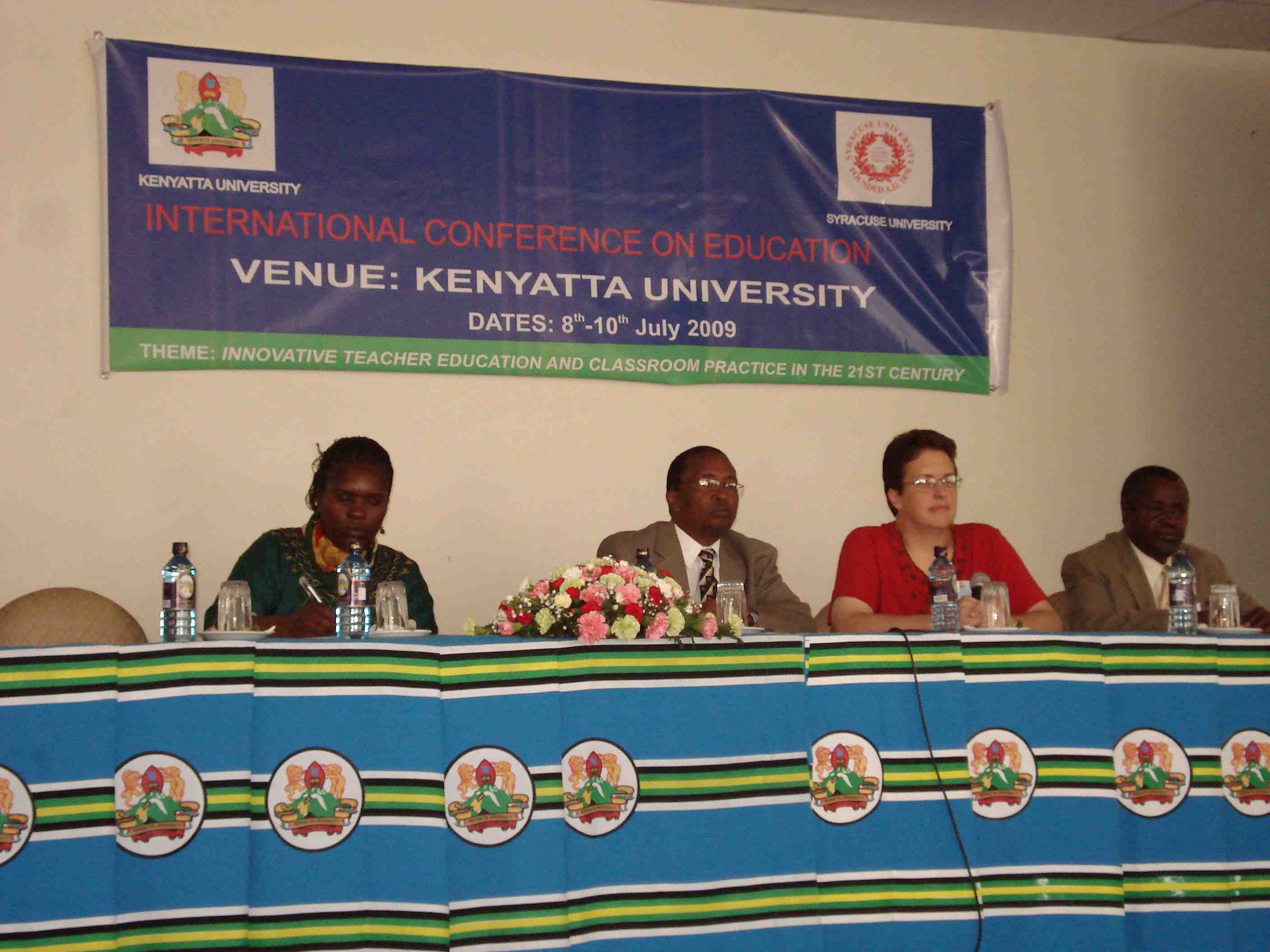 The first International Conference on Education (ICE) co-sponsored by Kenyatta University and Syracuse University was held on the campus of Kenyatta University, in Nairobi, Kenya, July 8-10, 2009. The second ICE is scheduled for July 20-22, 2011 at Kenyatta University.