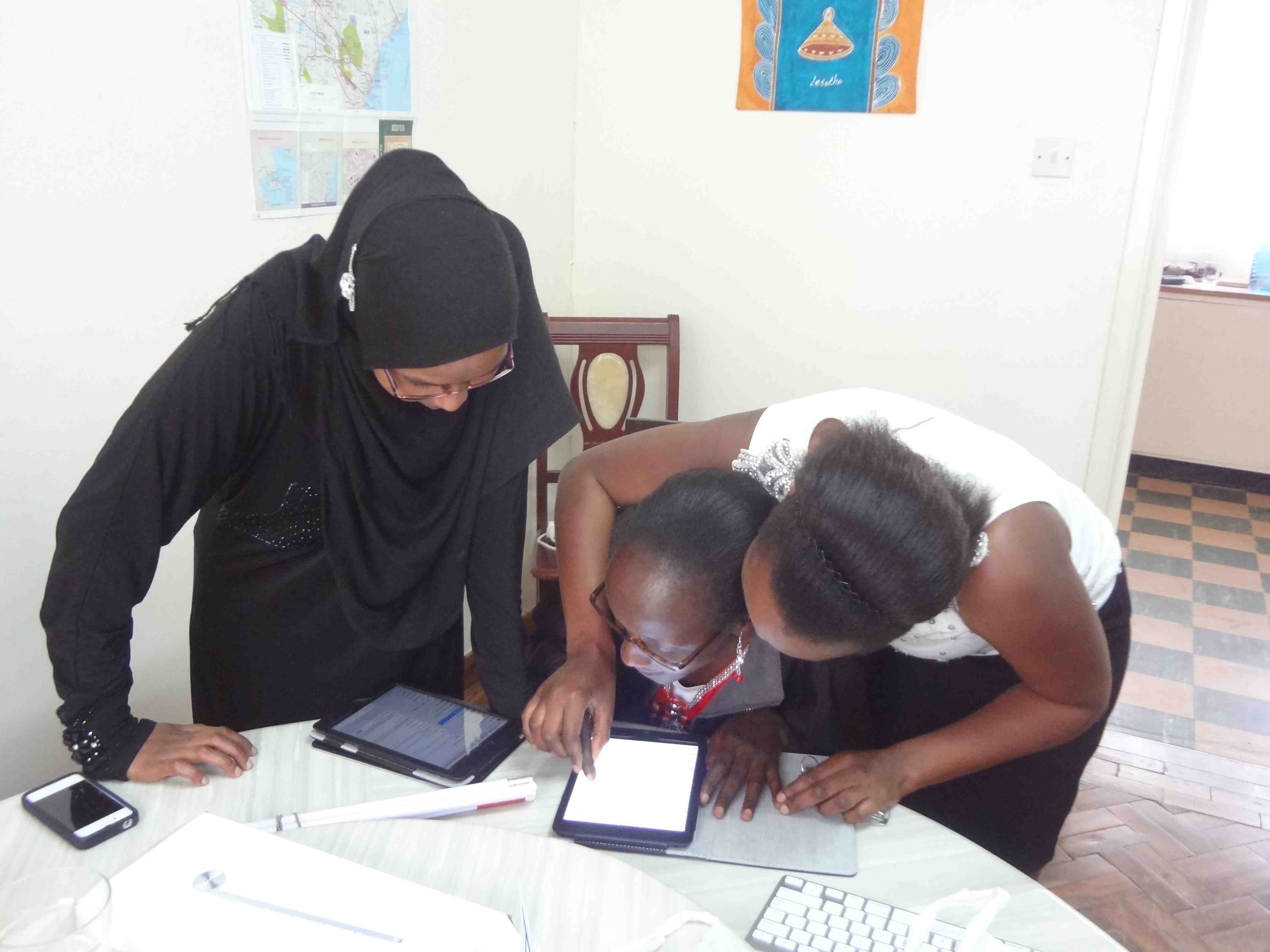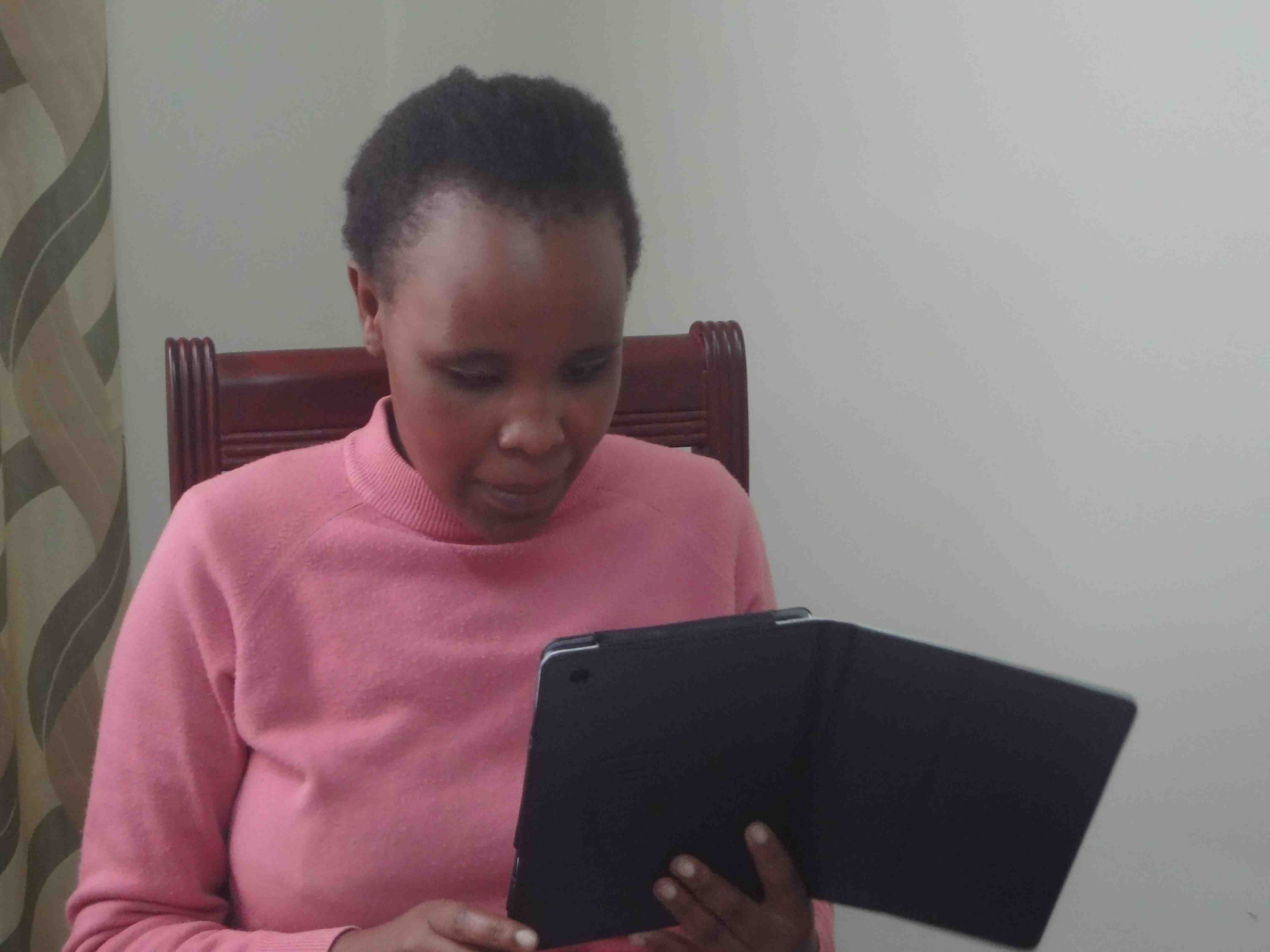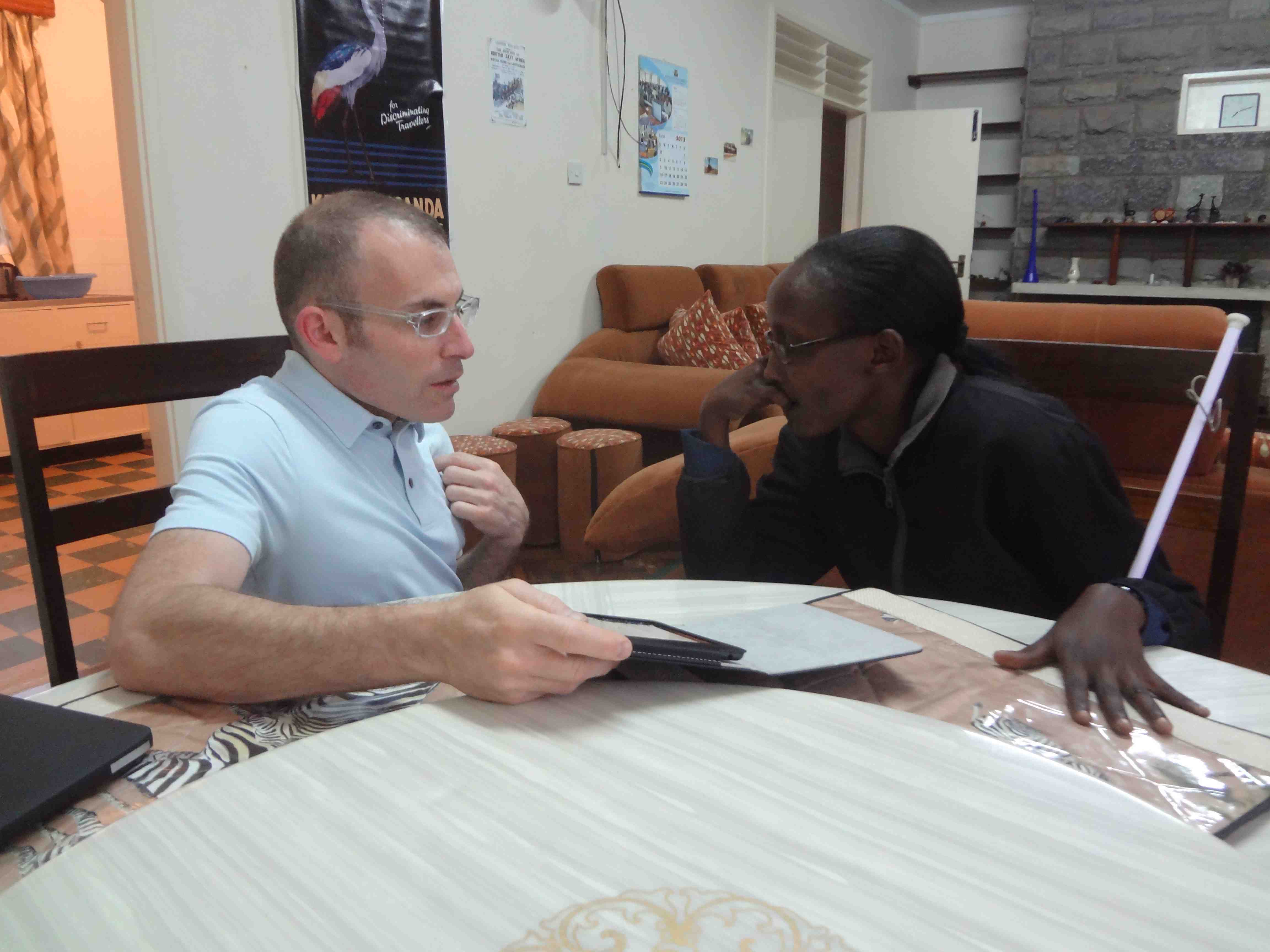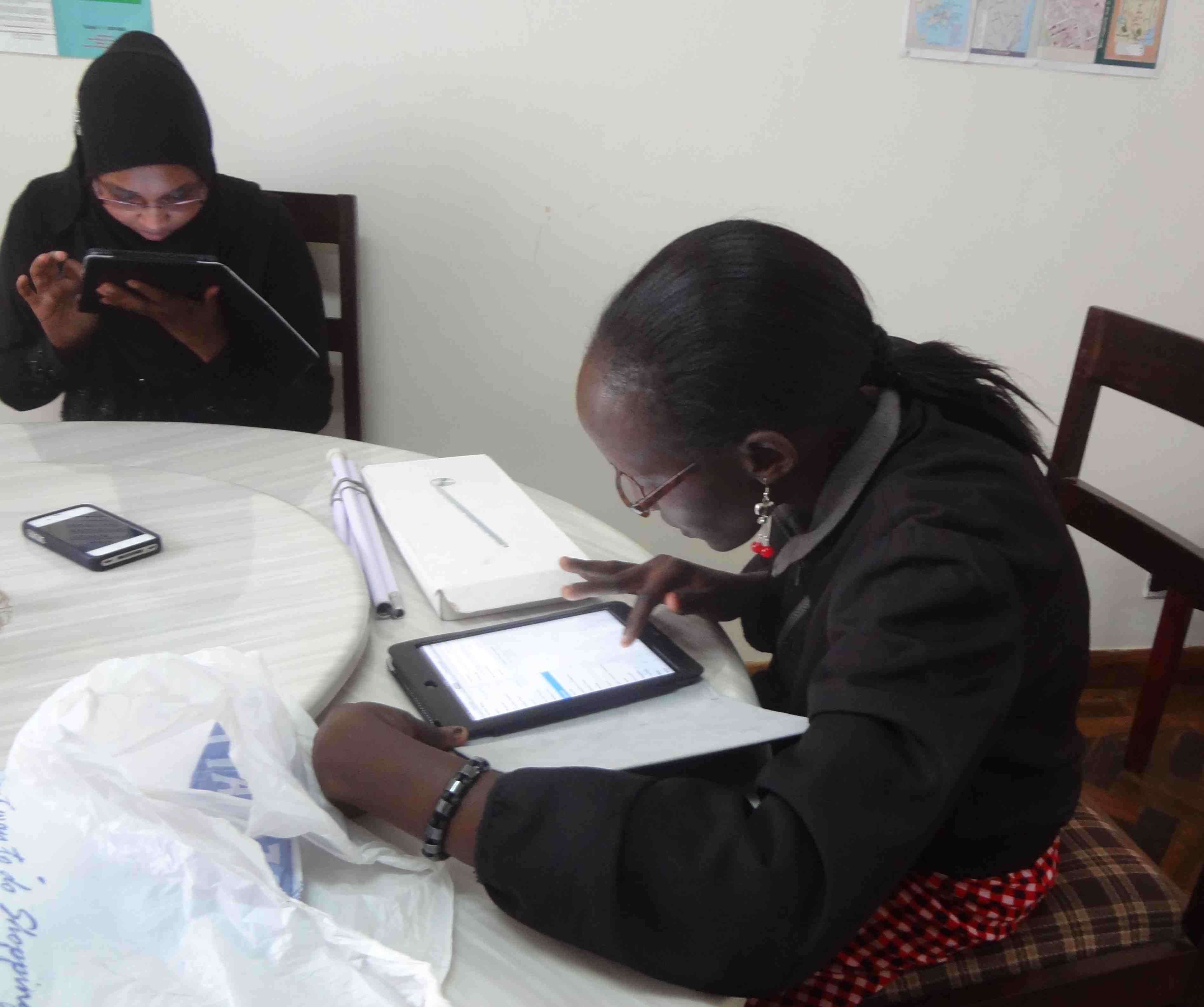 On Saturday, June 29th we worked with four Kenyatta University students with visual impairments who were using iPods we had brought in June 2012. This time we brought iPad minis to exchange with them. The women were very happy to now have 3G devices that they can use to access the Internet anywhere there is mobile network.