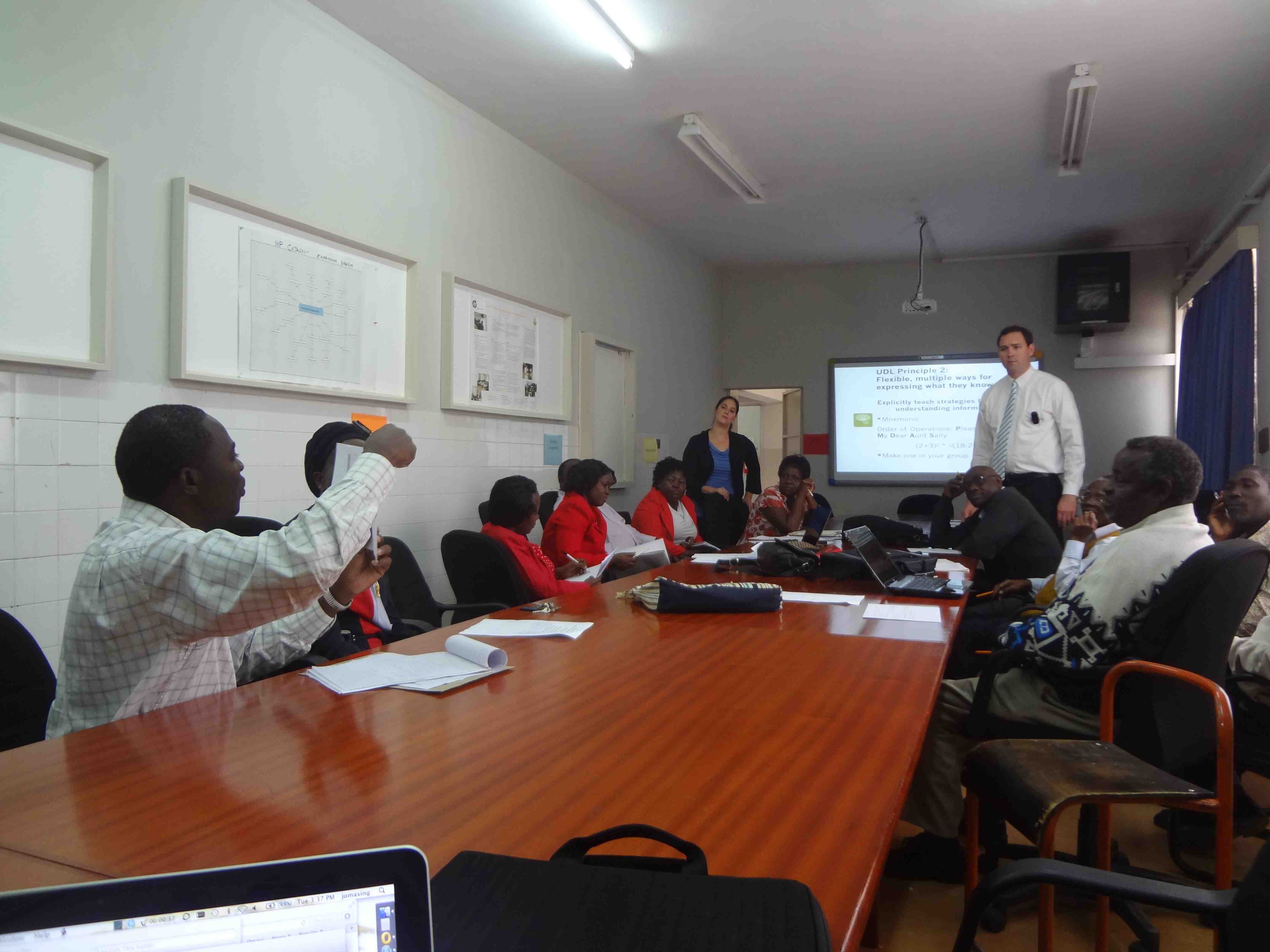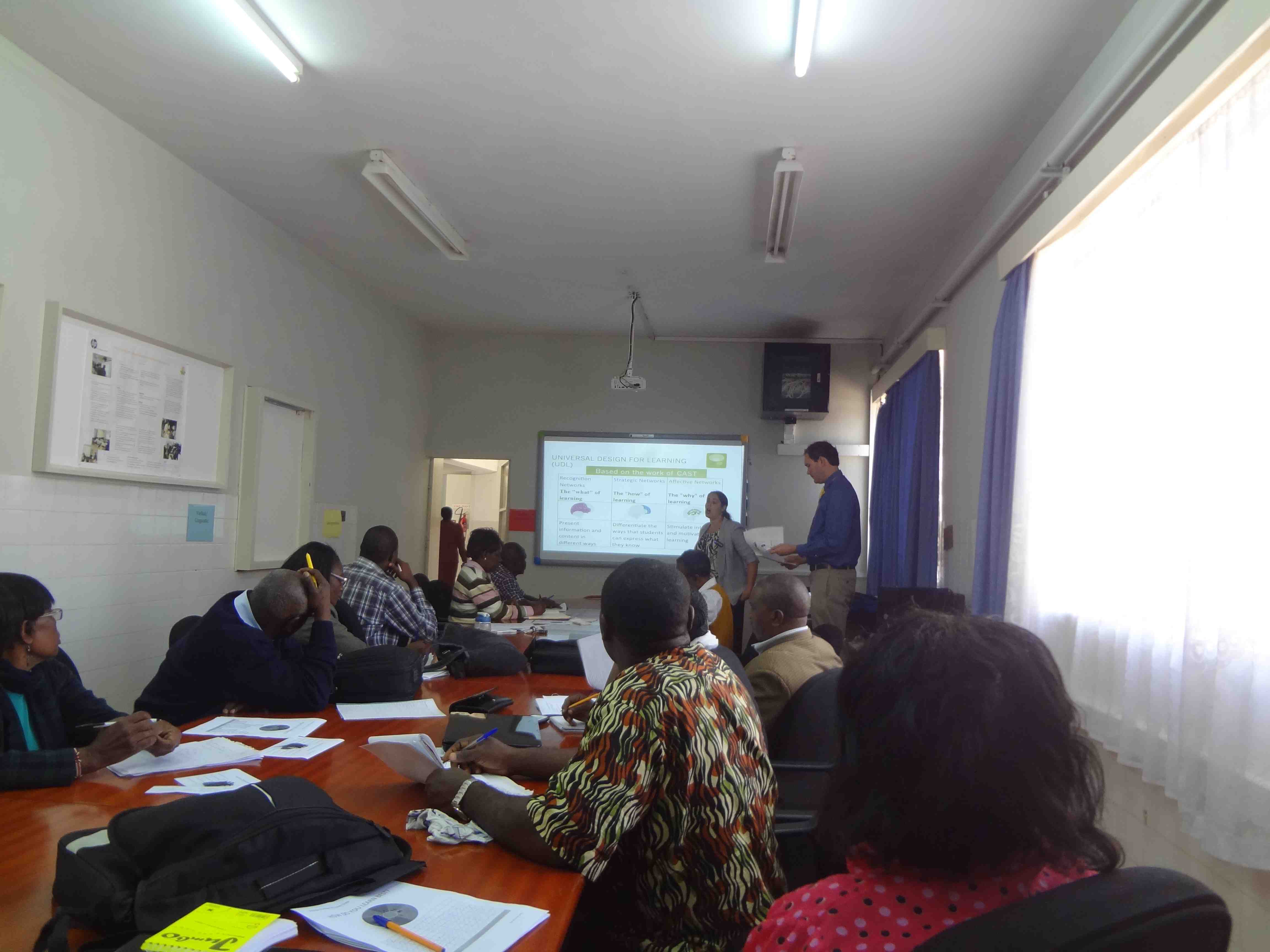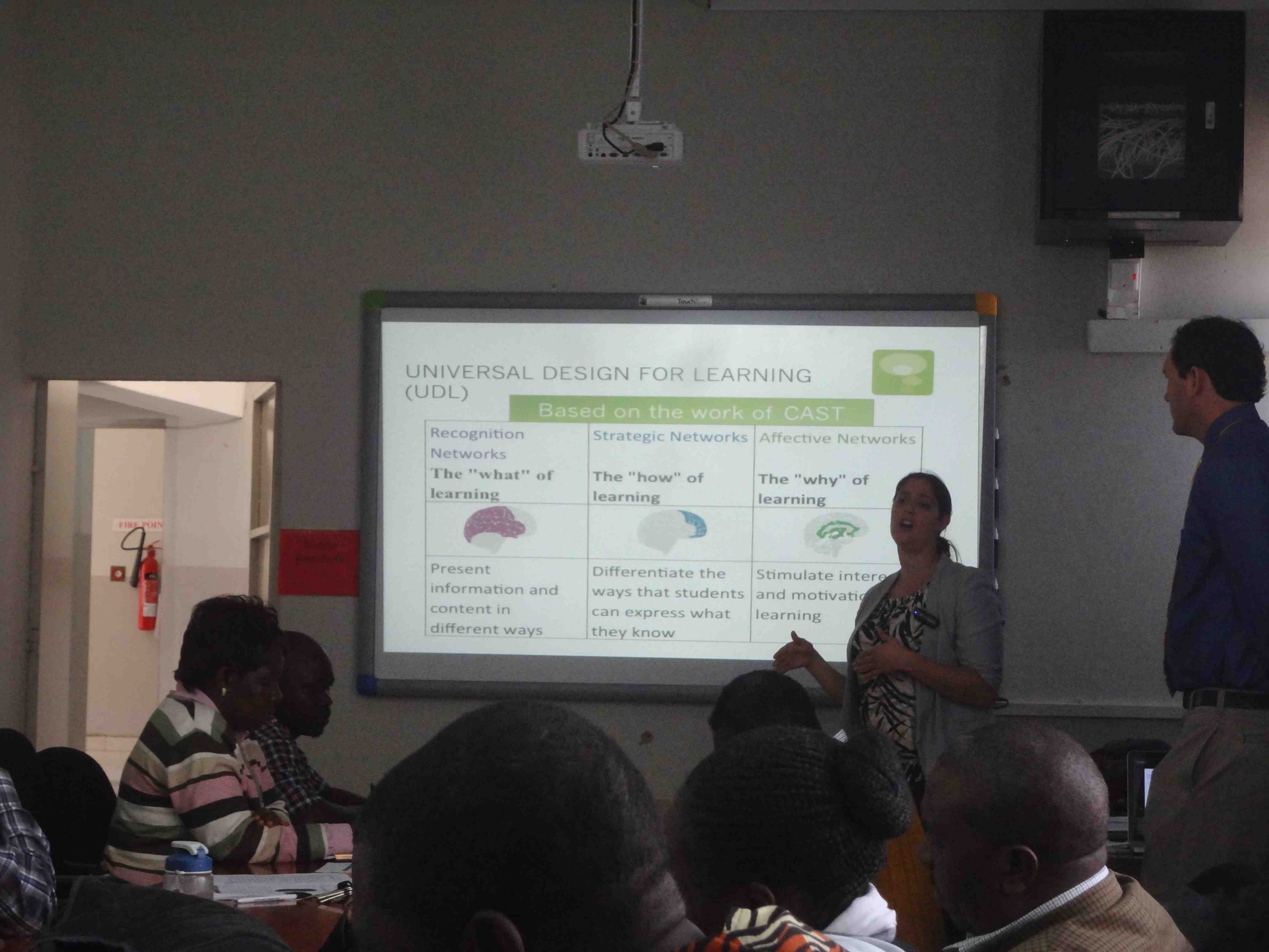 During the afternoons of July 8-9, 2013, Brent Elder and Michelle Damiani, doctoral students in Special Education at Syracuse University, led a workshop on inclusive education for faculty members in the Department of Educational Communication and Technology at Kenyatta University. Participants learned about Universal Design for Learning (UDL) and Multiple Intelligences Theory. Brent and Michelle introduced participants to a number of strategies and participants planned on how to implement these strategies and apply UDL principles in their teaching, and preparing teachers to use these strategies and principles.
