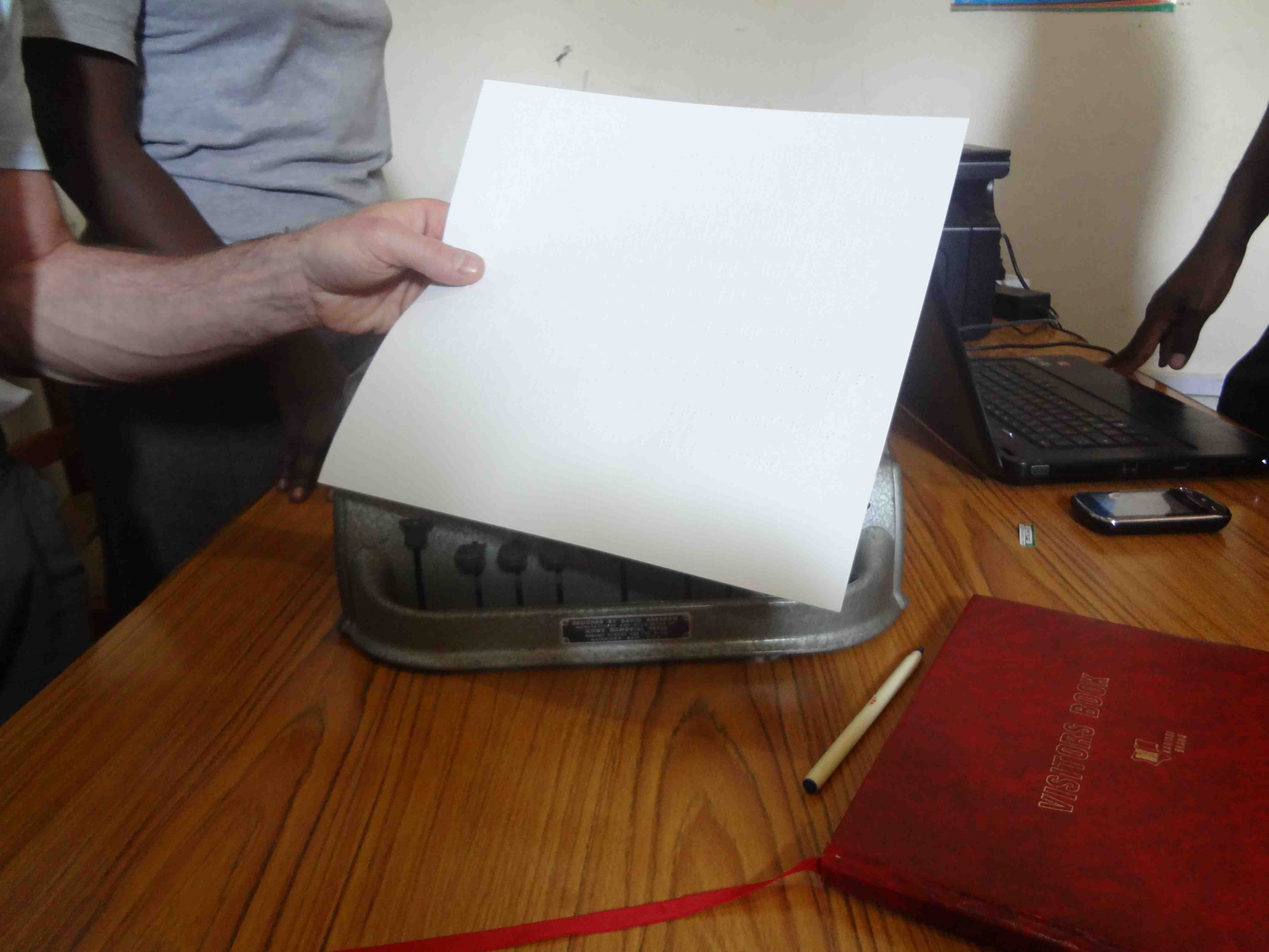 CaptionA test in the process of being prepared with a brailler