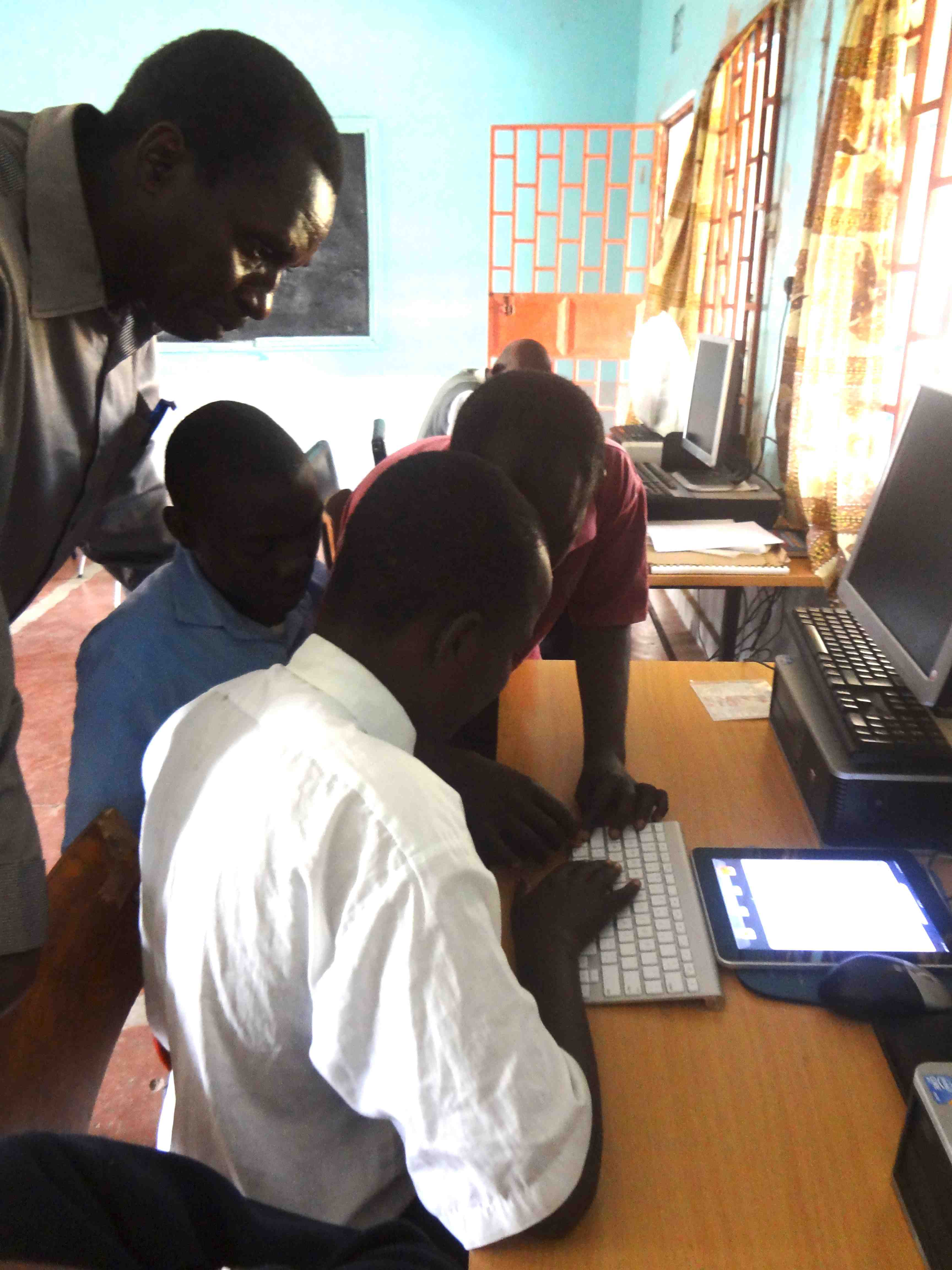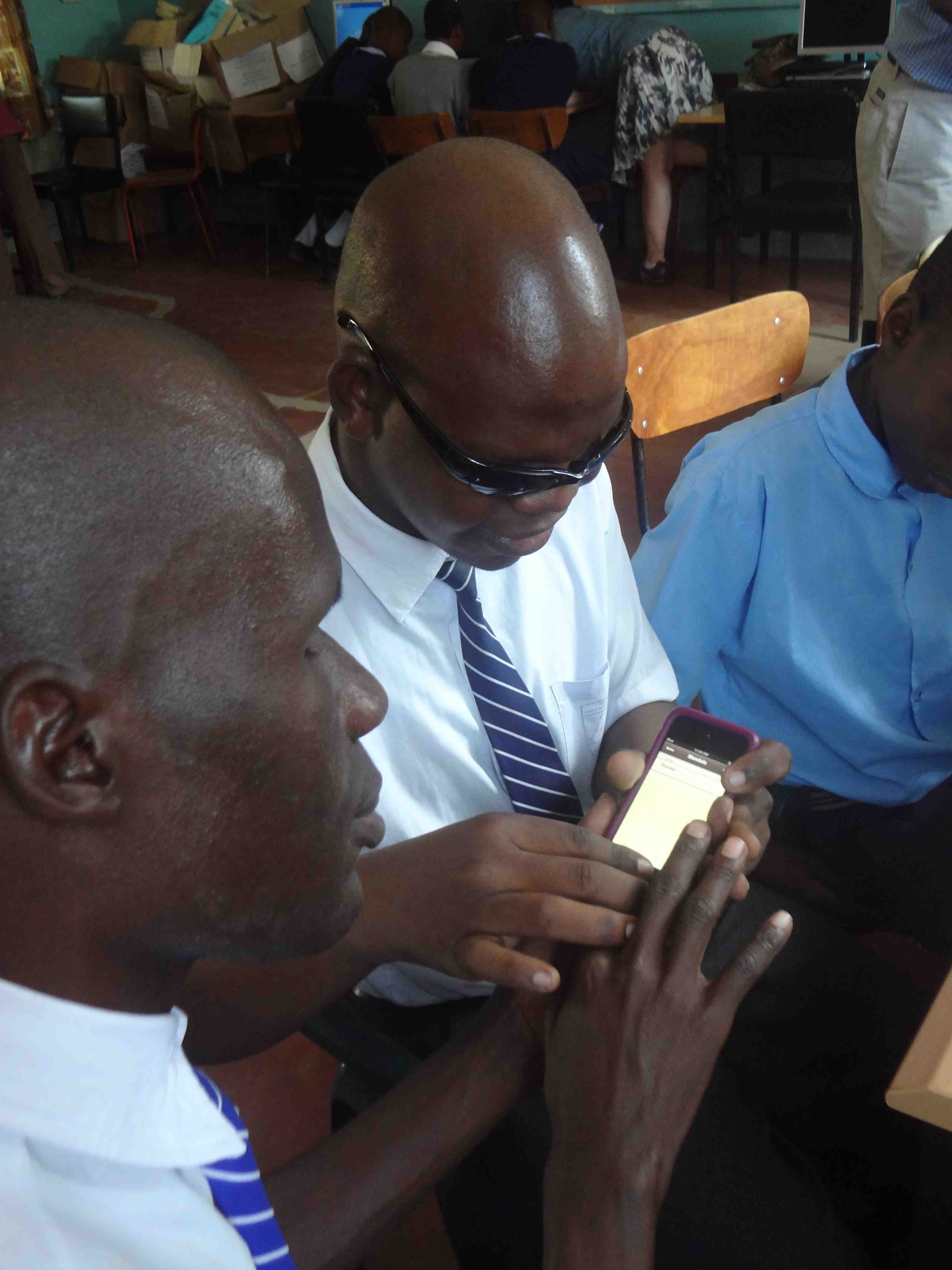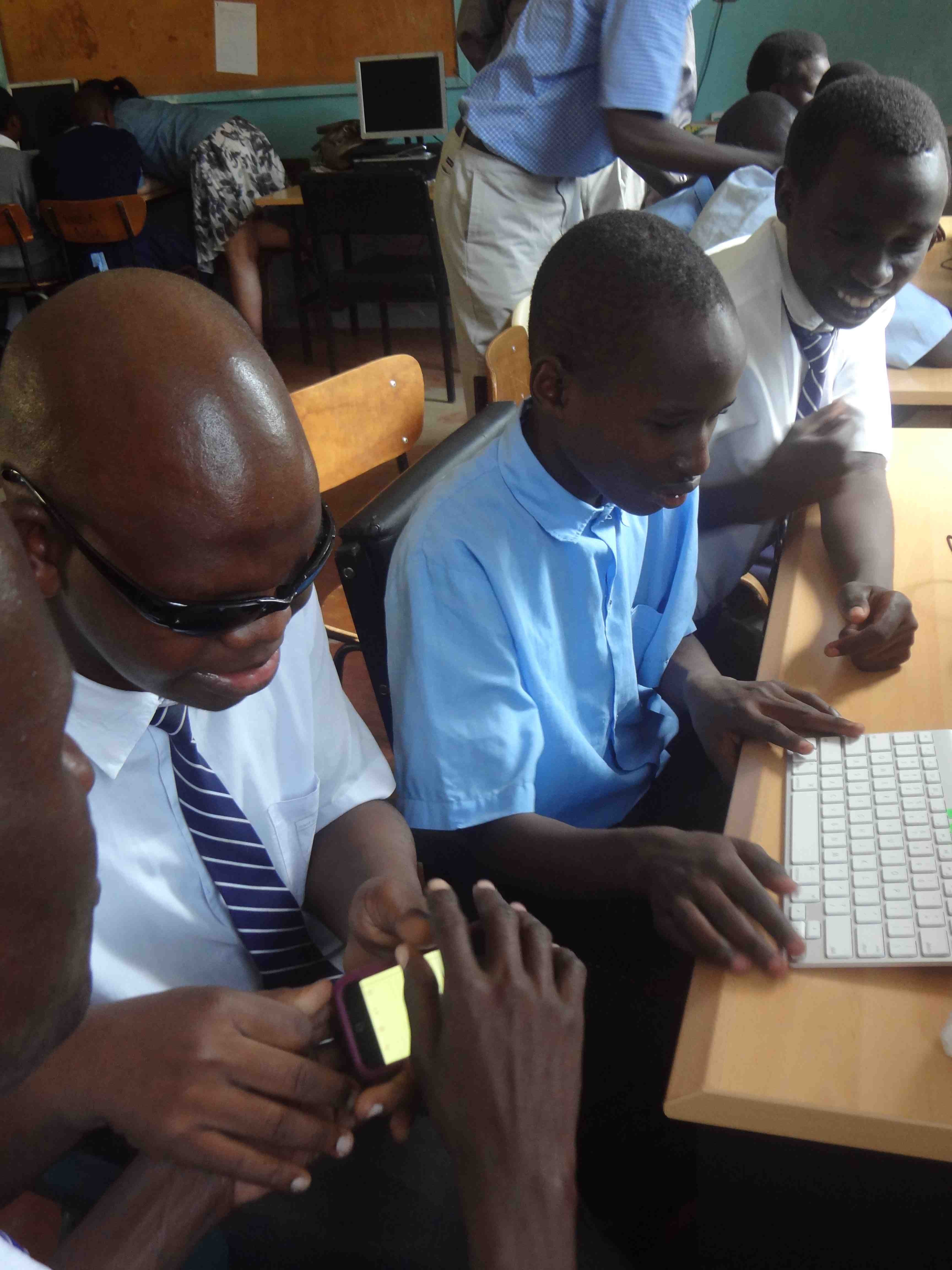 On July 15th, Alan Foley, Joanna Masingila and Yufei Wu visited Kibos School for the Visually Impaired near Kisumu, Kenya. Sammy Luvonga, a Kenyatta University student who is blind and had started using iOS technology in June 2012 through the KU-SU project, was doing his teaching practice (student teaching) at Kibos. Peter Miheso, a teacher in the primary school at Kibos had participated in the June 2012 workshops with students with visual impairments at KU and arranged for the visit.