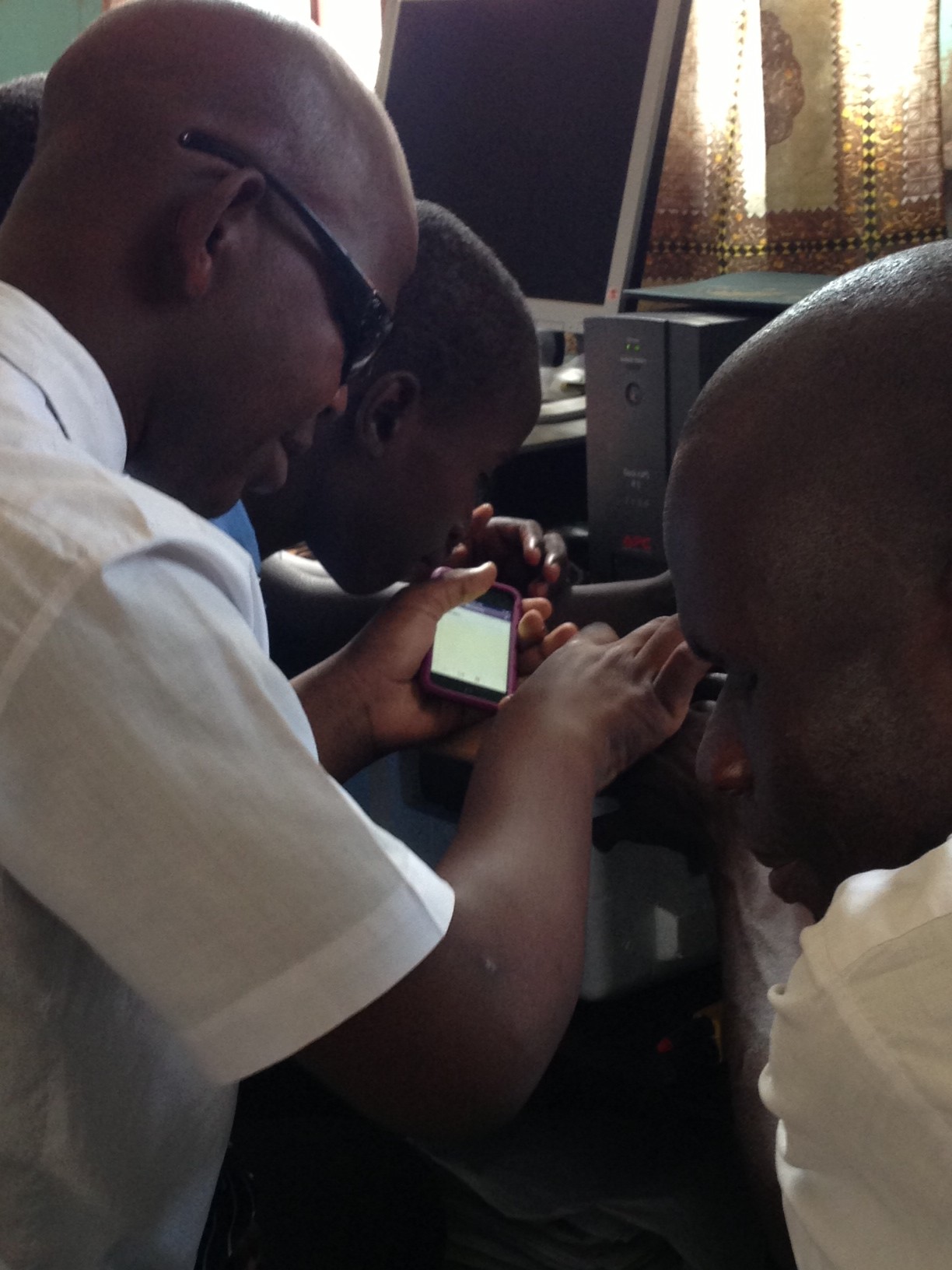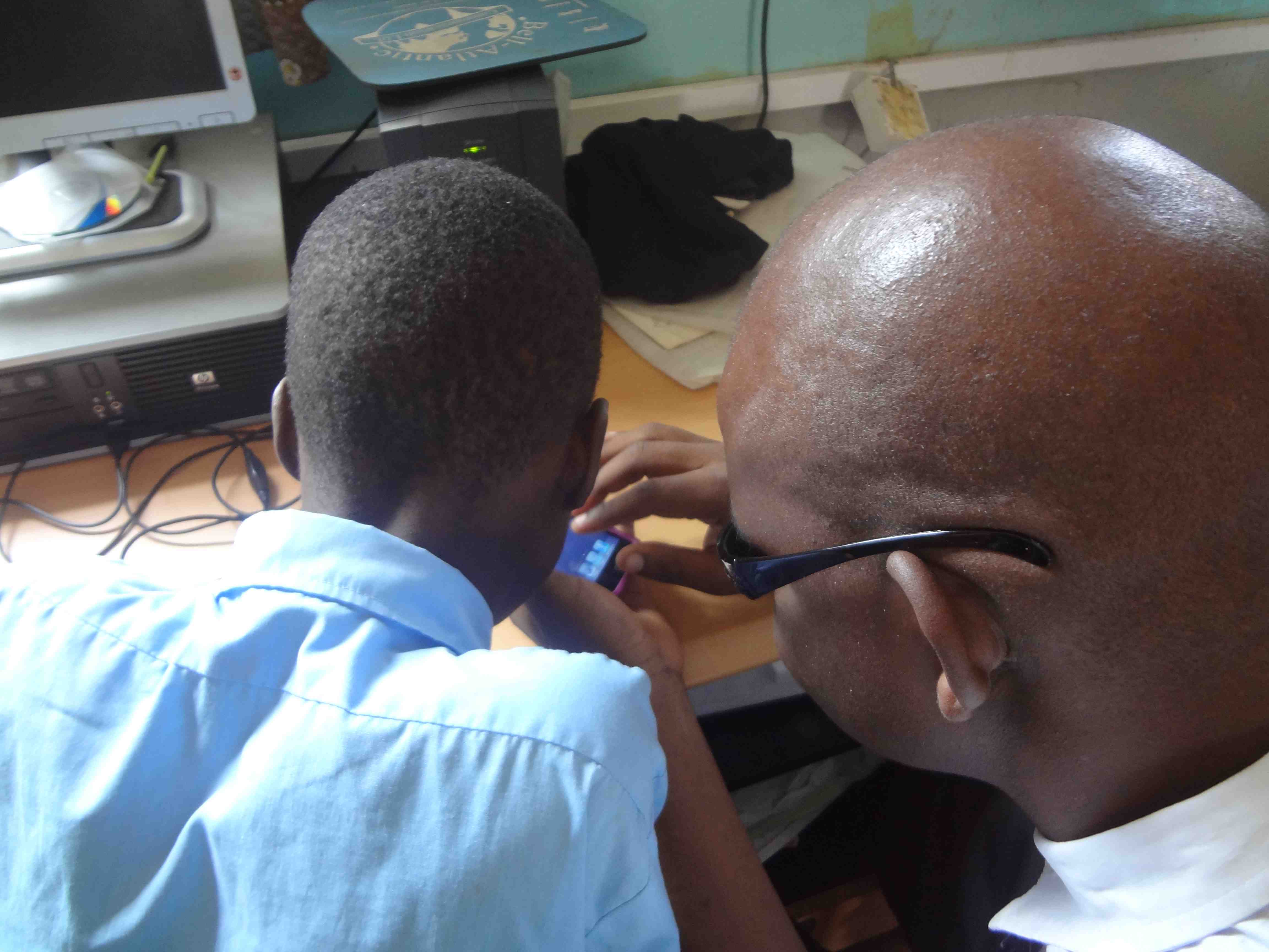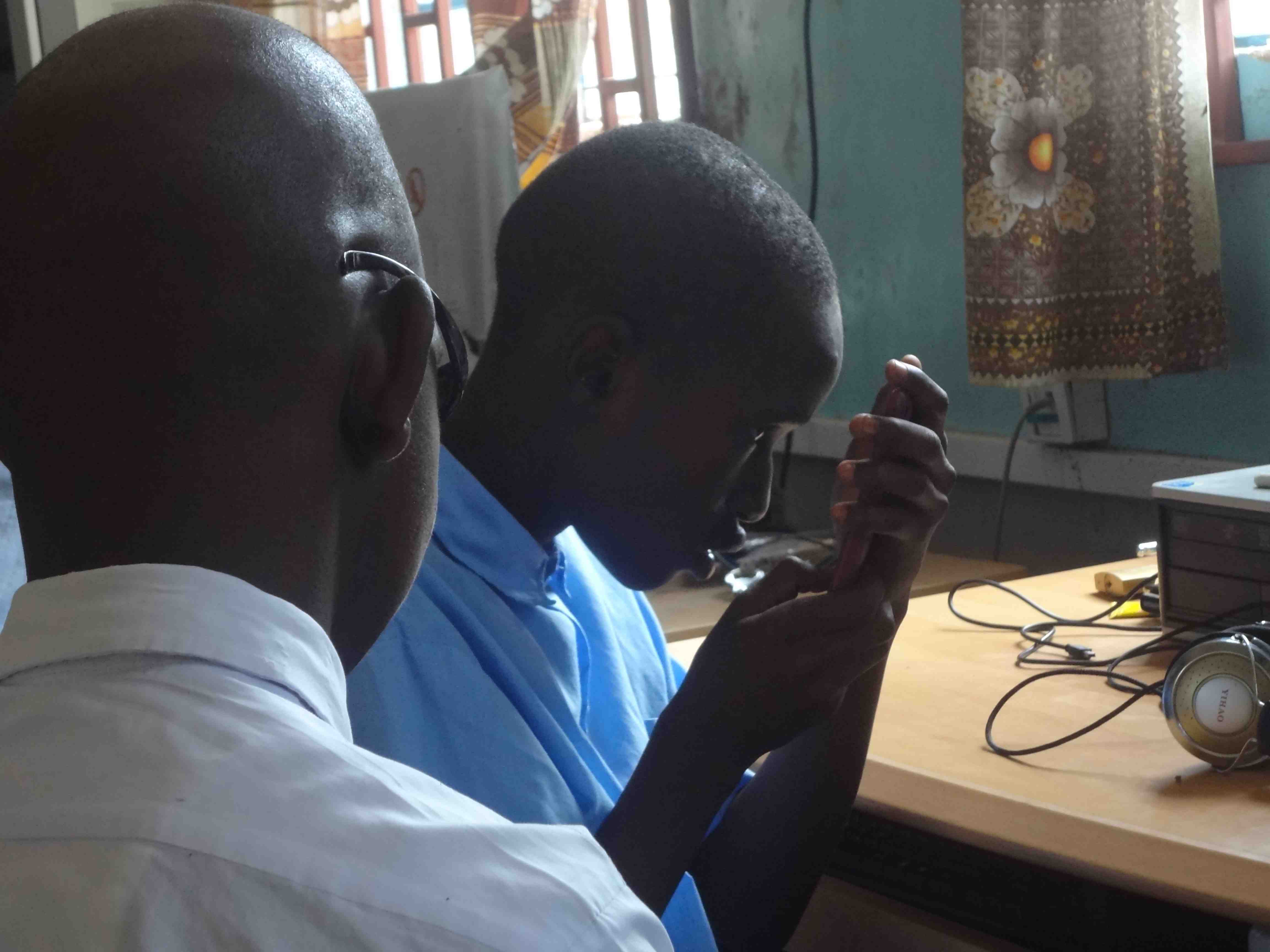 On July 15th, Alan Foley, Joanna Masingila and Yufei Wu visited Kibos School for the Visually Impaired near Kisumu, Kenya. Sammy Luvonga, a Kenyatta University student who is blind and had started using iOS technology in June 2012 through the KU-SU project, was doing his teaching practice (student teaching) at Kibos. Peter Miheso, a teacher in the primary school at Kibos had participated in the June 2012 workshops with students with visual impairments at KU and arranged for the visit.