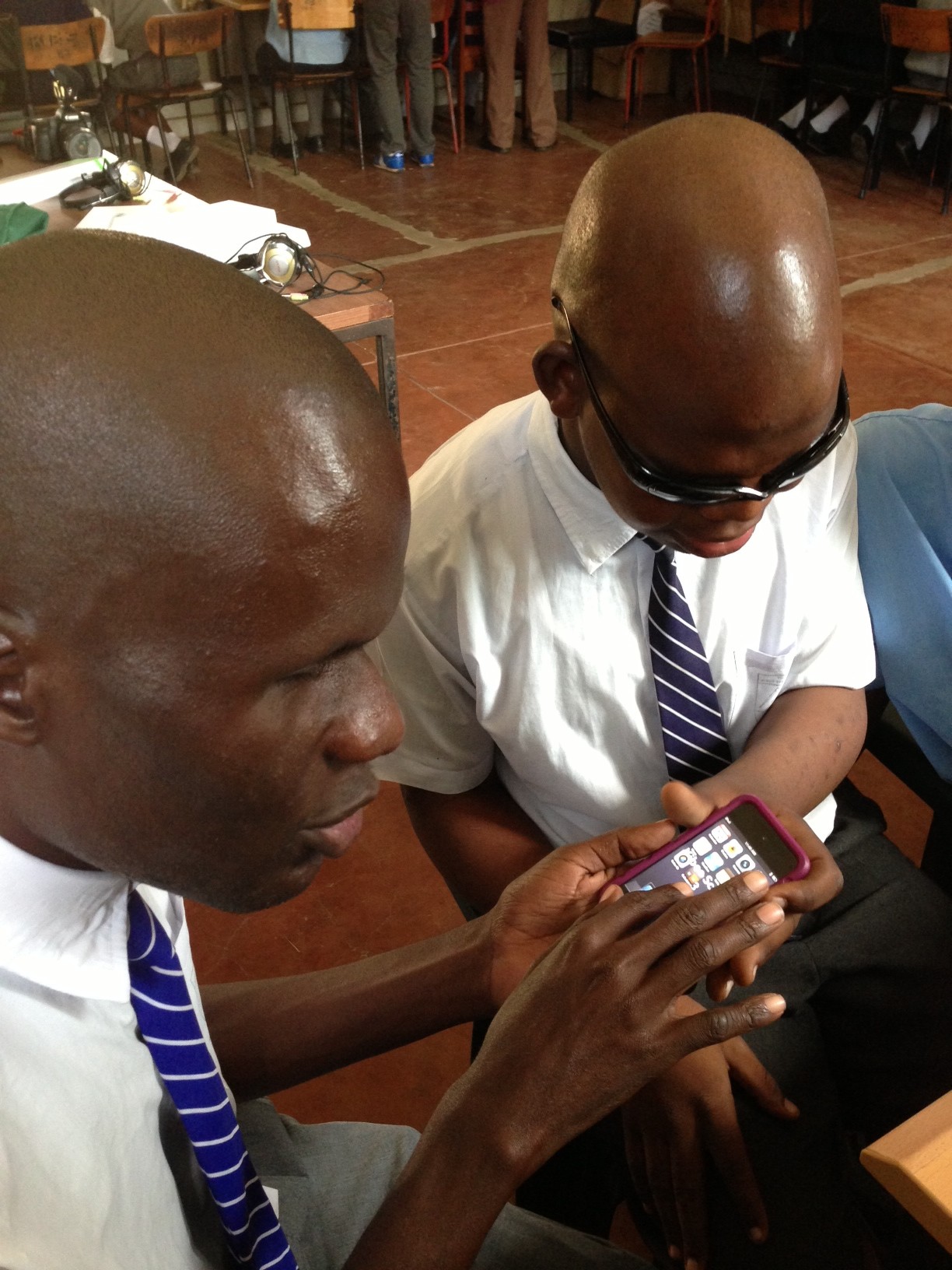 CaptionSammy sharing his experience using iOS technology with some Kibos students
