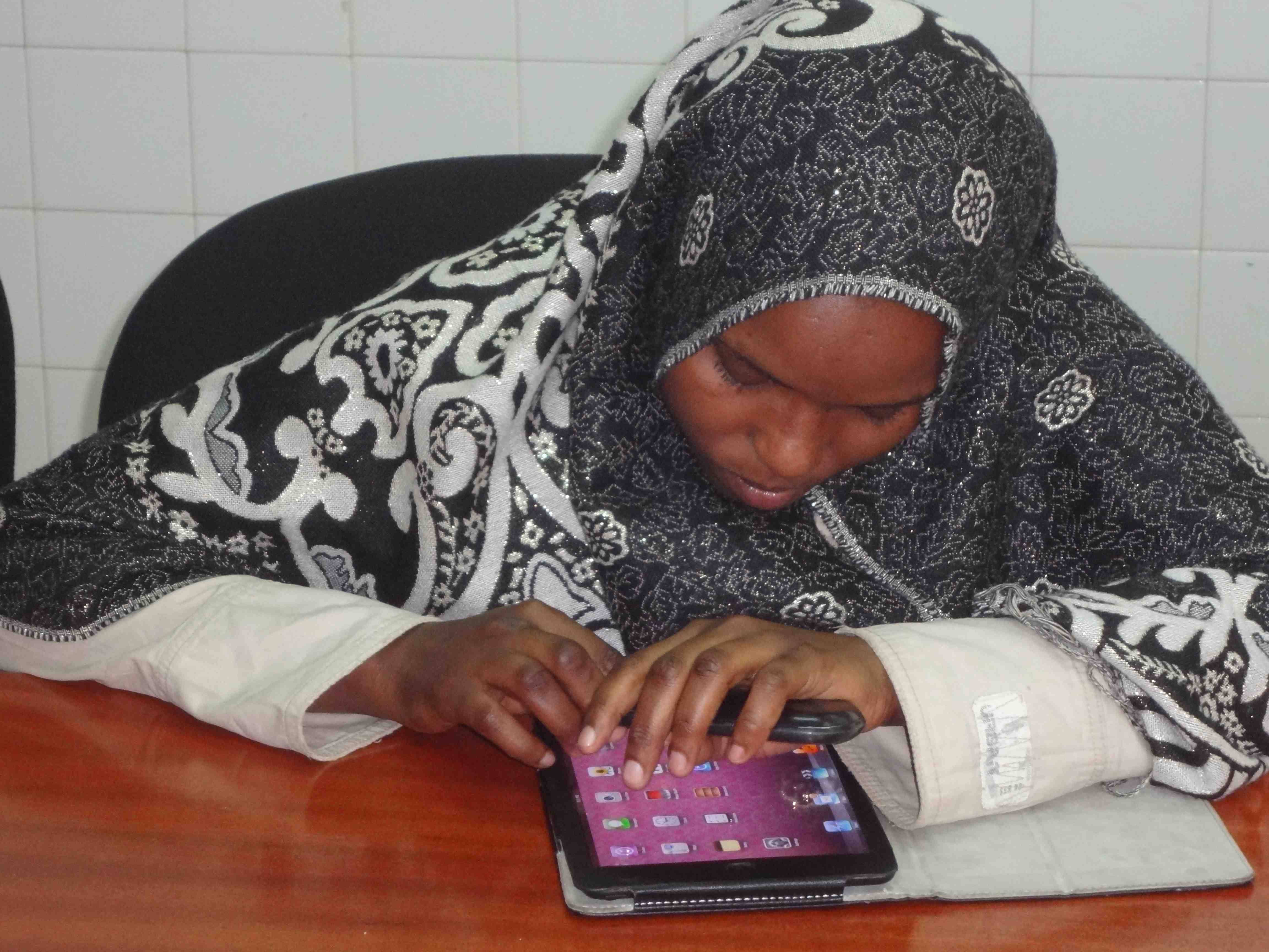 CaptionFatuma describes how she uses her iOS device and keyboard in her volunteer work with a NGO