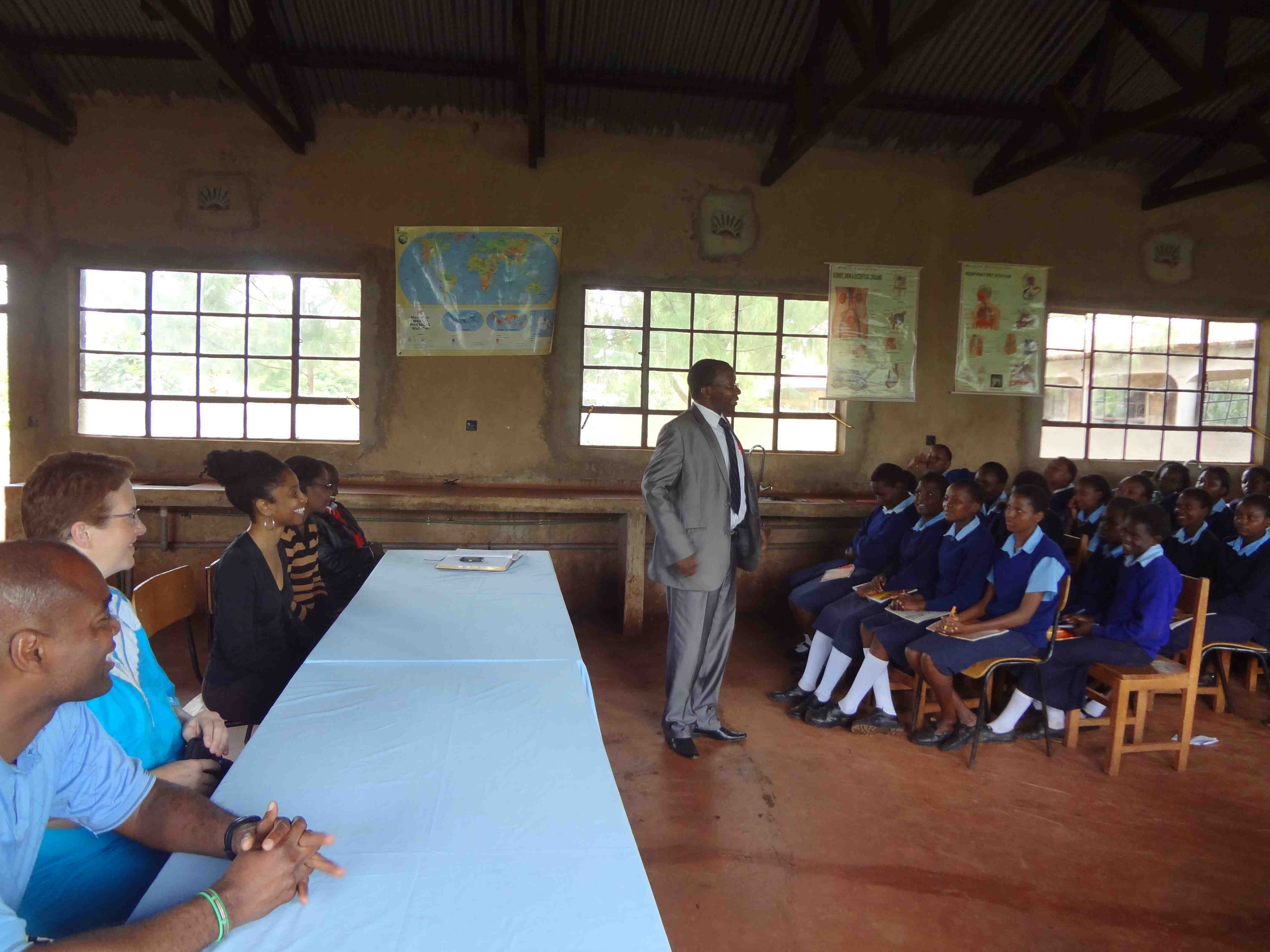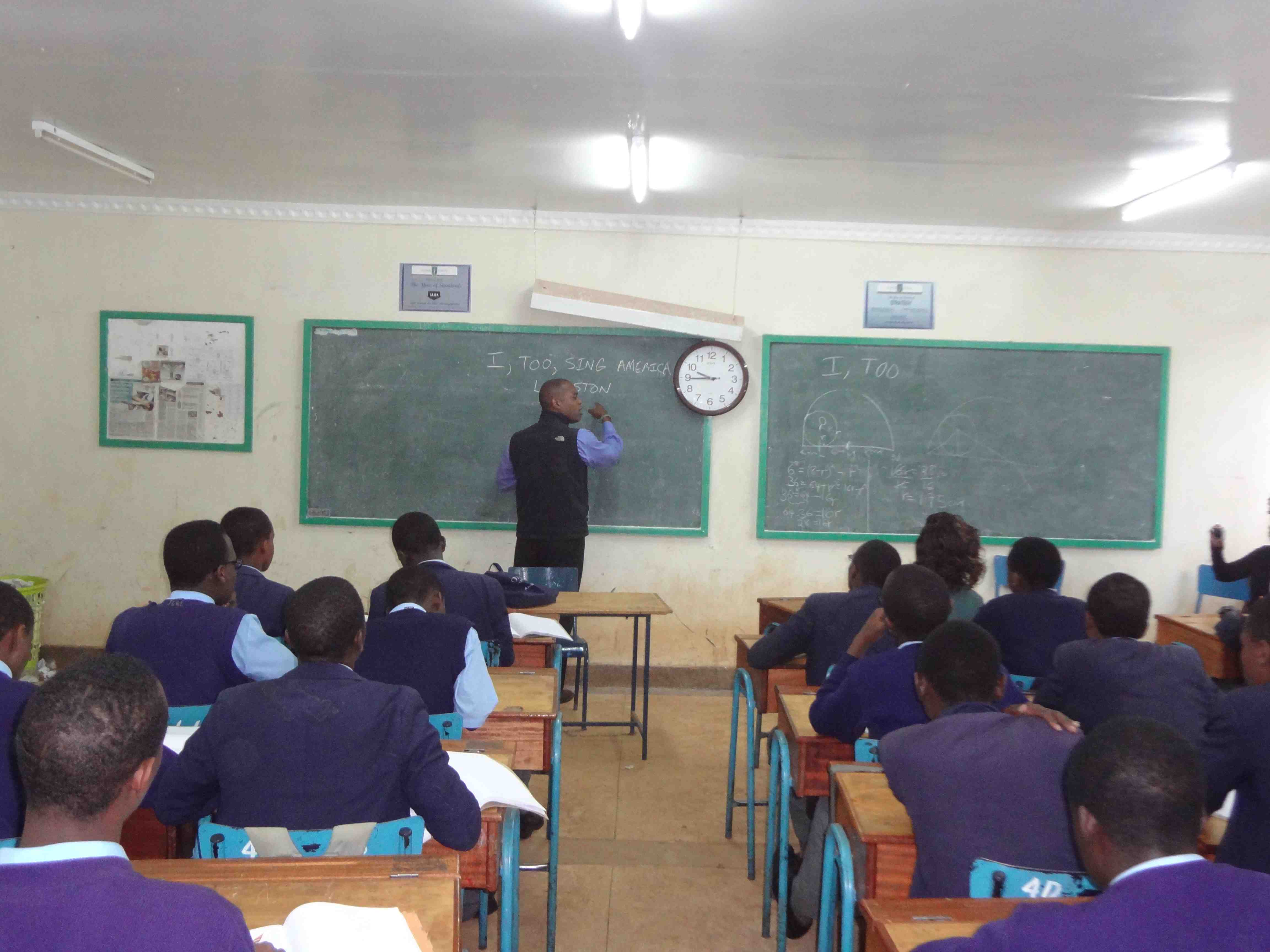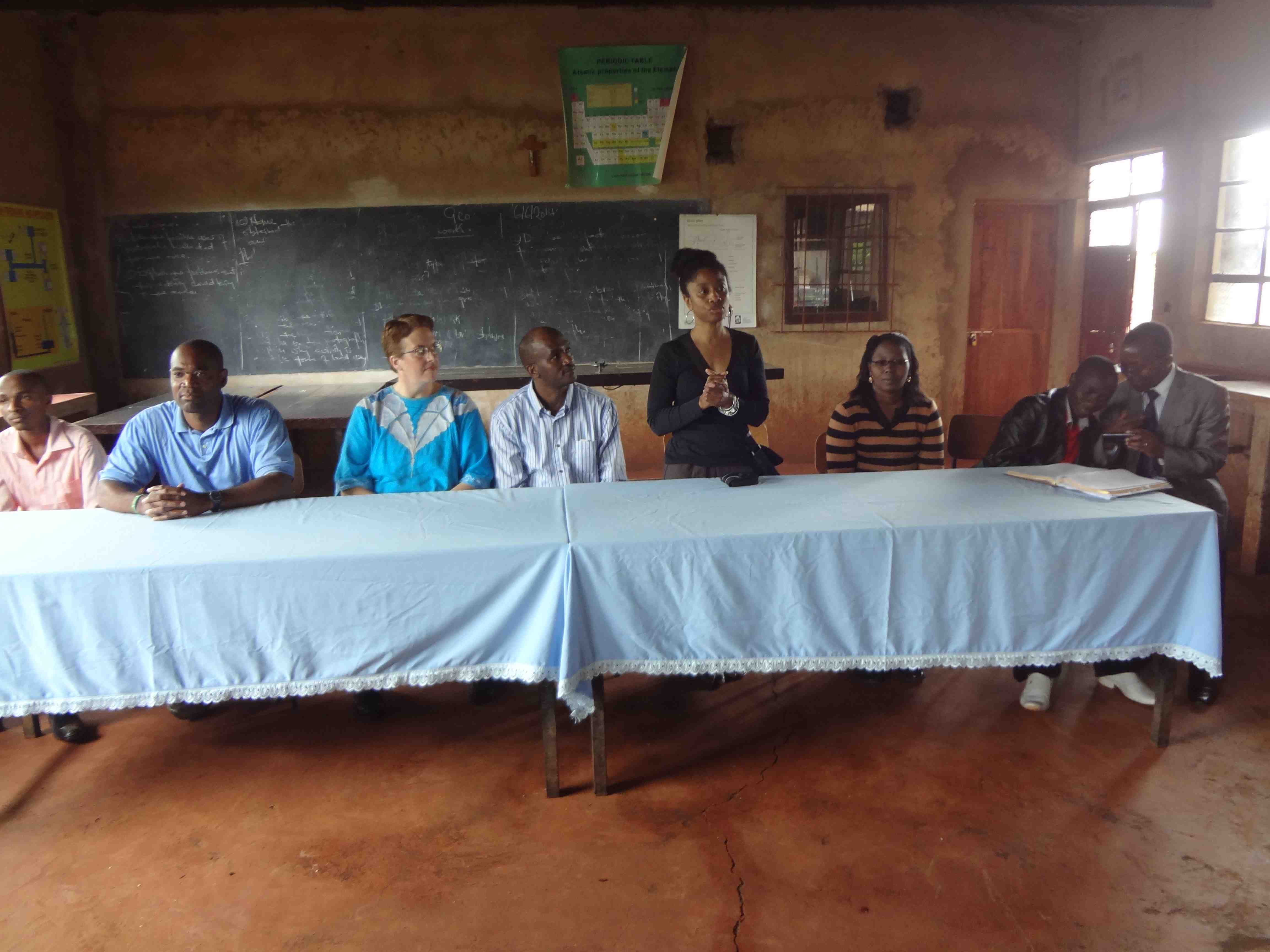SU team members Marcelle Haddix (English teacher educator) and Jeff Mangram (social studies teacher educator) visited several schools during their first trip to Kenya through the Kenyatta University-Syracuse University partnership. They visited Ugweri Secondary School (a mixed day school in a rural area), Nairobi School (a national boys boarding school in an urban area), and Kenyatta University Primary School (a mixed day school in an urban area). Joanna Masingila was part of the visits to Ugweri Secondary School and Nairobi School, and Peter Rugano (SU doctoral student) participated in the visit to Ugweri Secondary School. At each of the schools they interacted with the students, and at two of the schools they observed lessons. These photos show some of the activities of those visits.