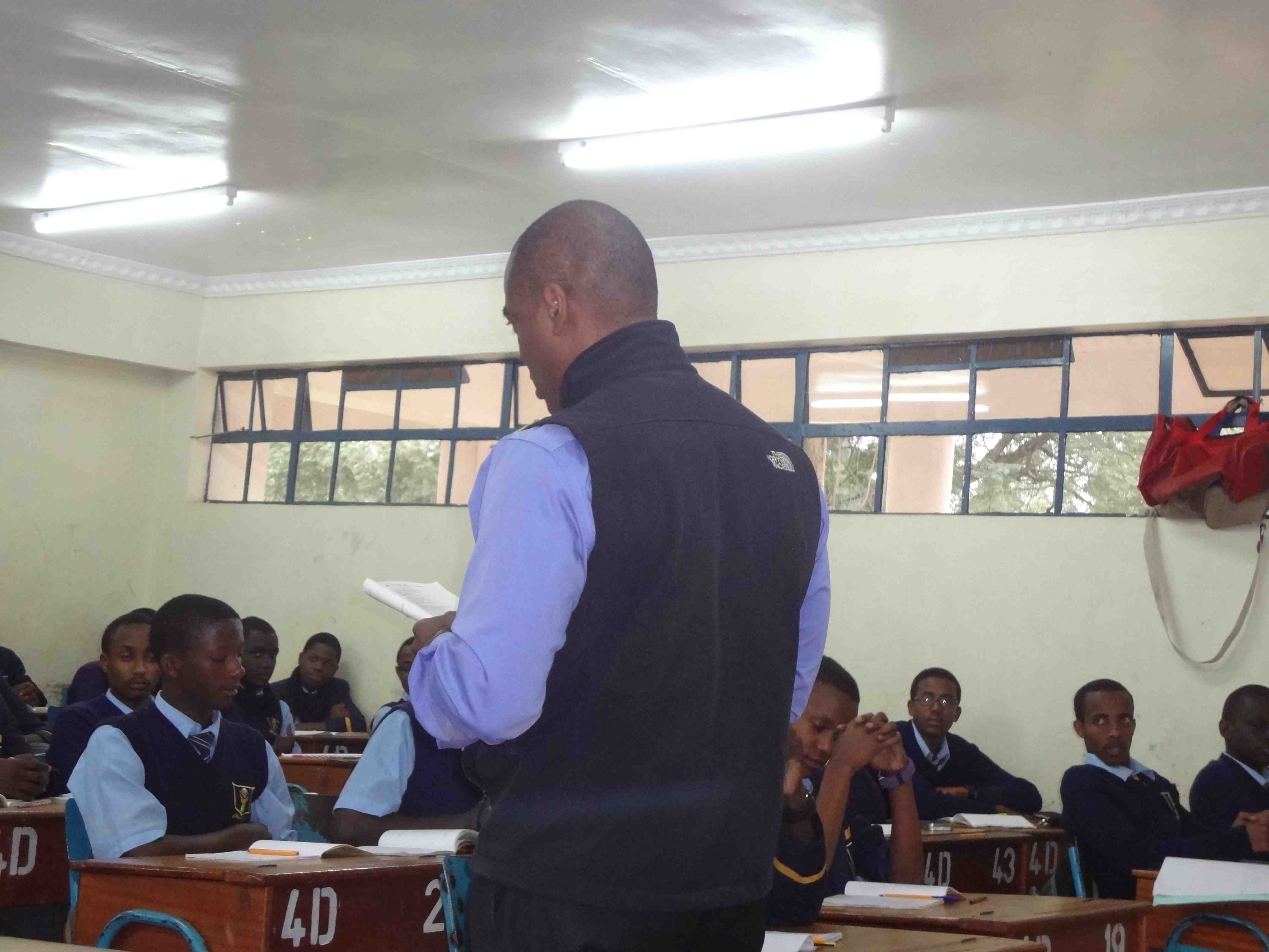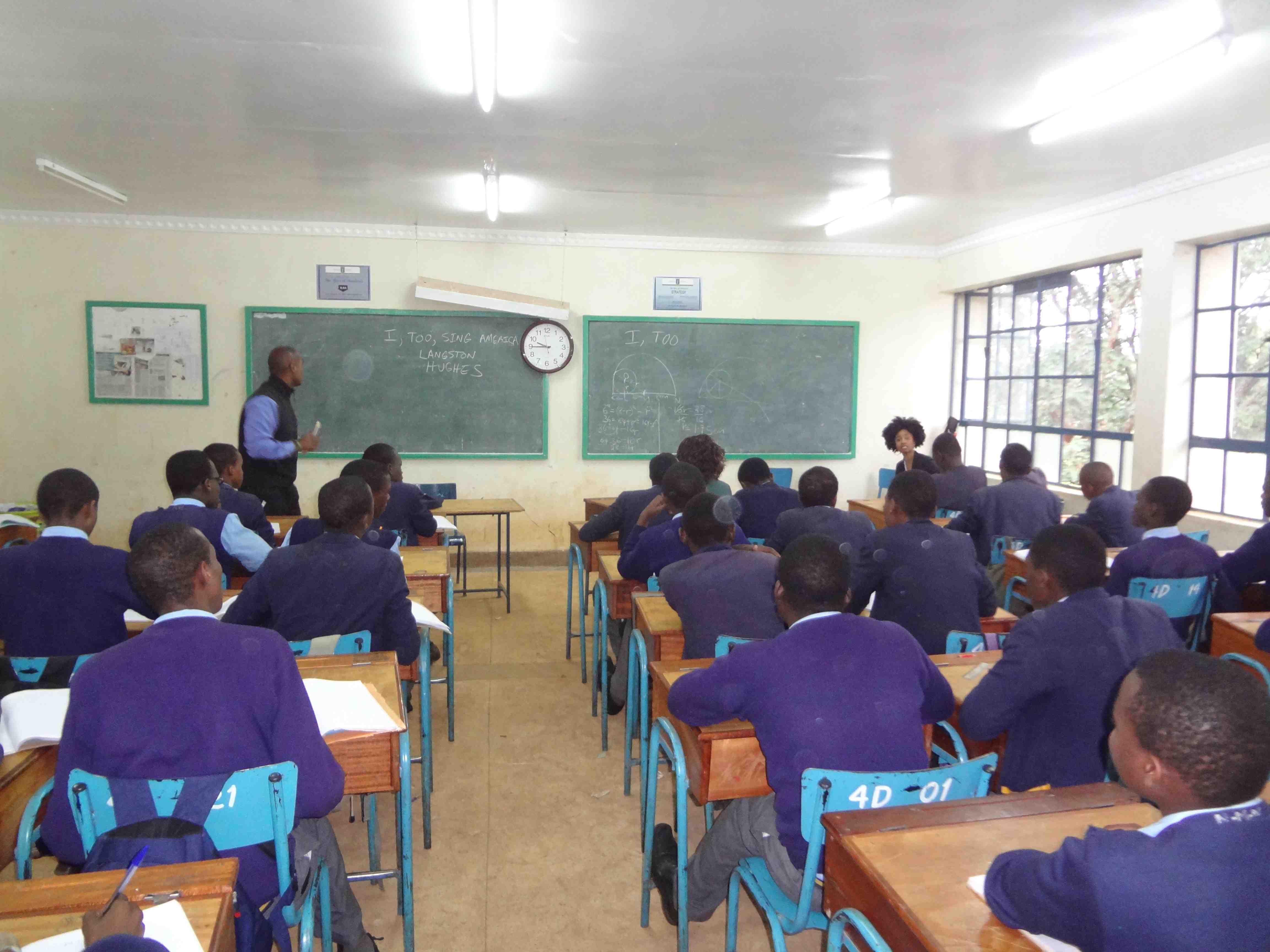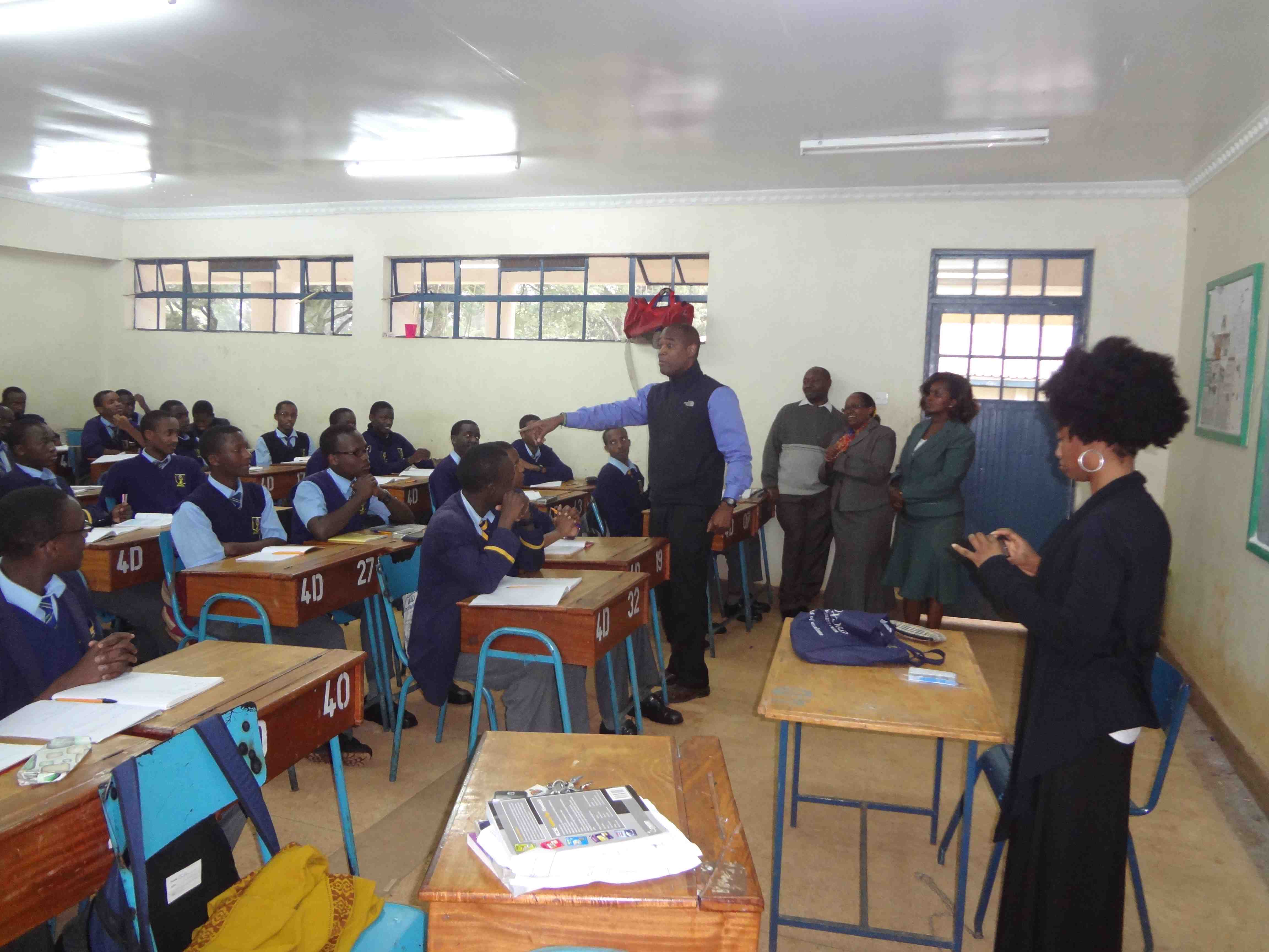 SU team members Marcelle Haddix (English teacher educator) and Jeff Mangram (social studies teacher educator) visited several schools during their first trip to Kenya through the Kenyatta University-Syracuse University partnership. They visited Ugweri Secondary School (a mixed day school in a rural area), Nairobi School (a national boys boarding school in an urban area), and Kenyatta University Primary School (a mixed day school in an urban area). Joanna Masingila was part of the visits to Ugweri Secondary School and Nairobi School, and Peter Rugano (SU doctoral student) participated in the visit to Ugweri Secondary School. At each of the schools they interacted with the students, and at two of the schools they observed lessons. These photos show some of the activities of those visits.