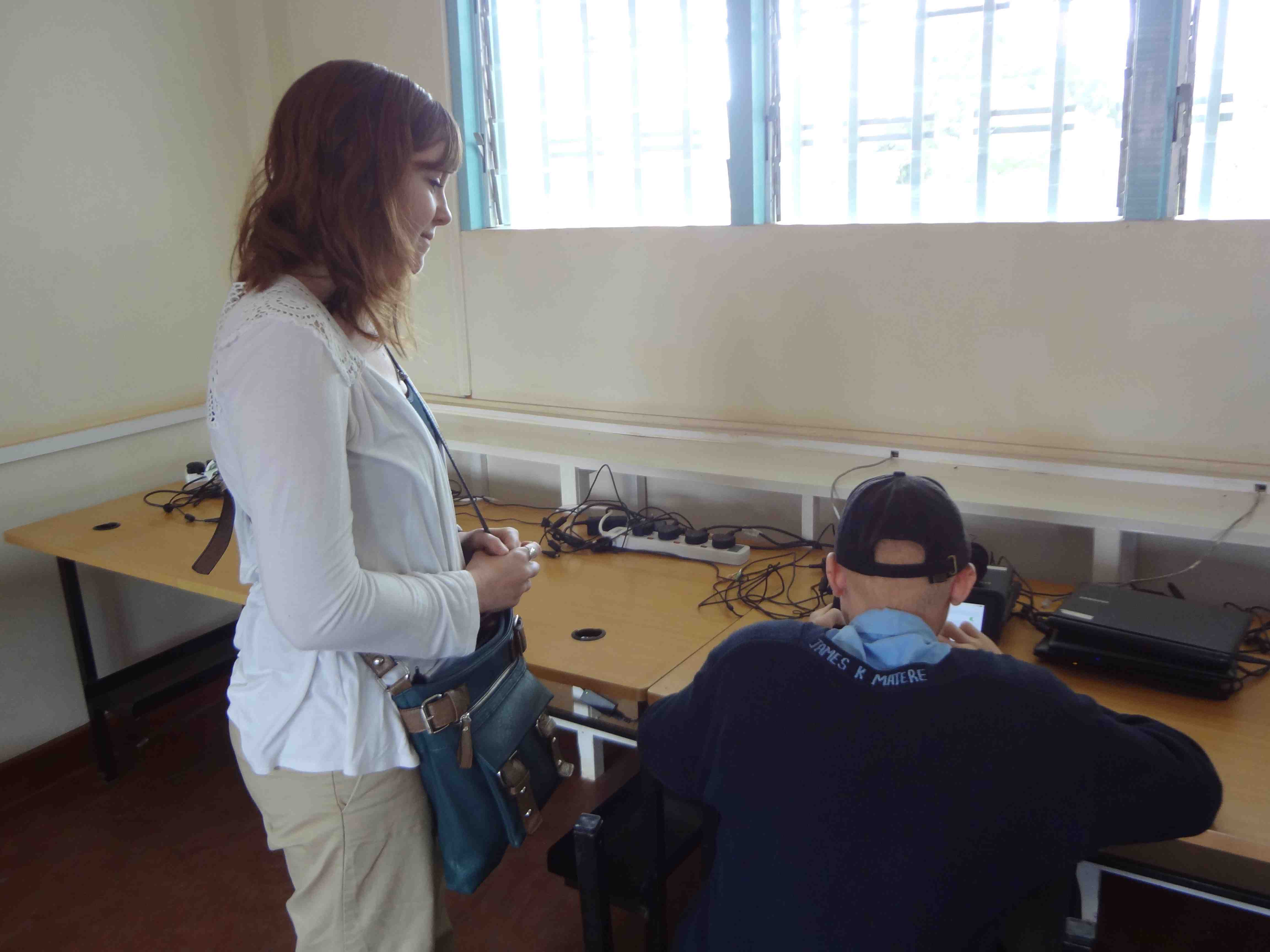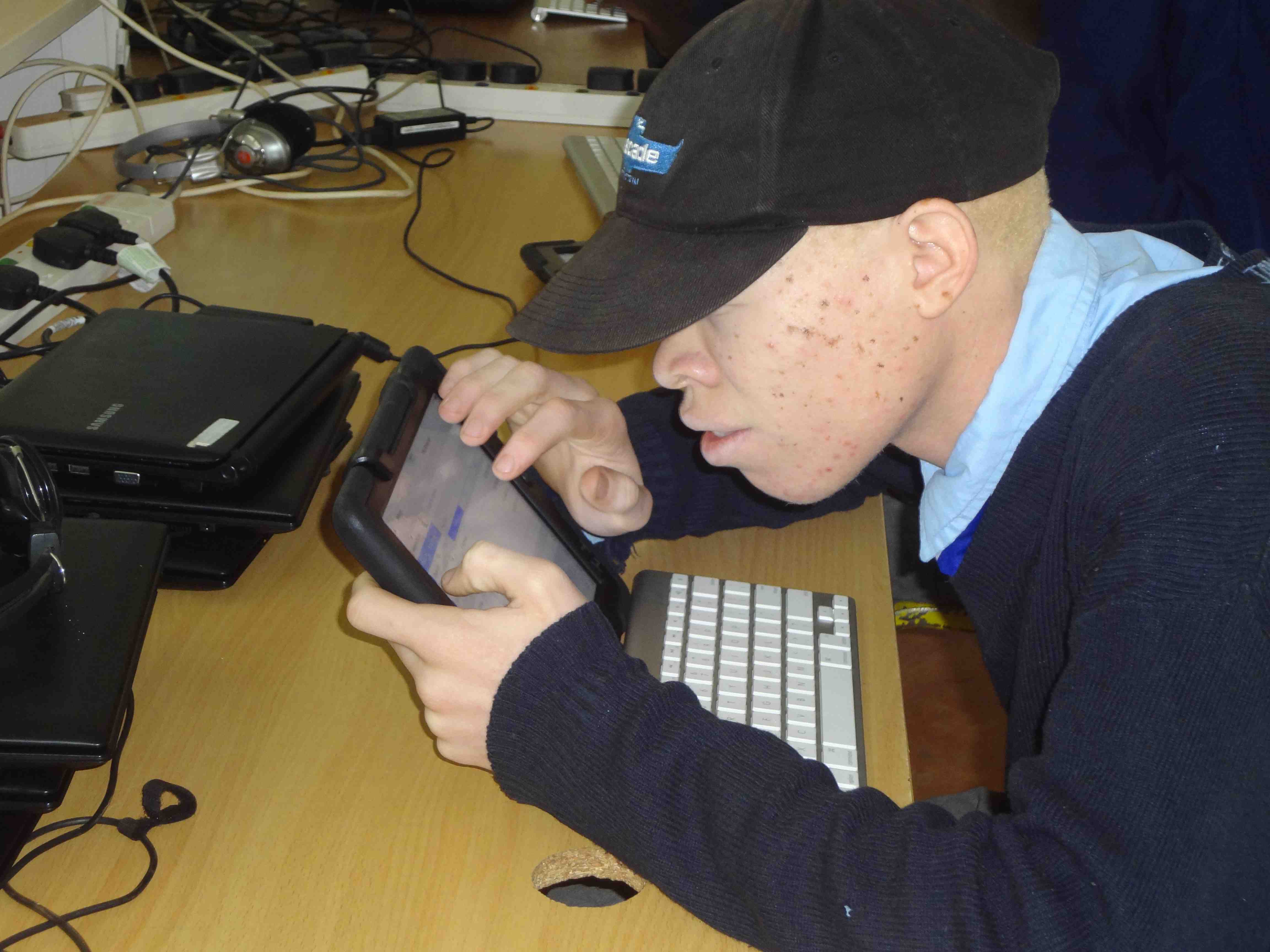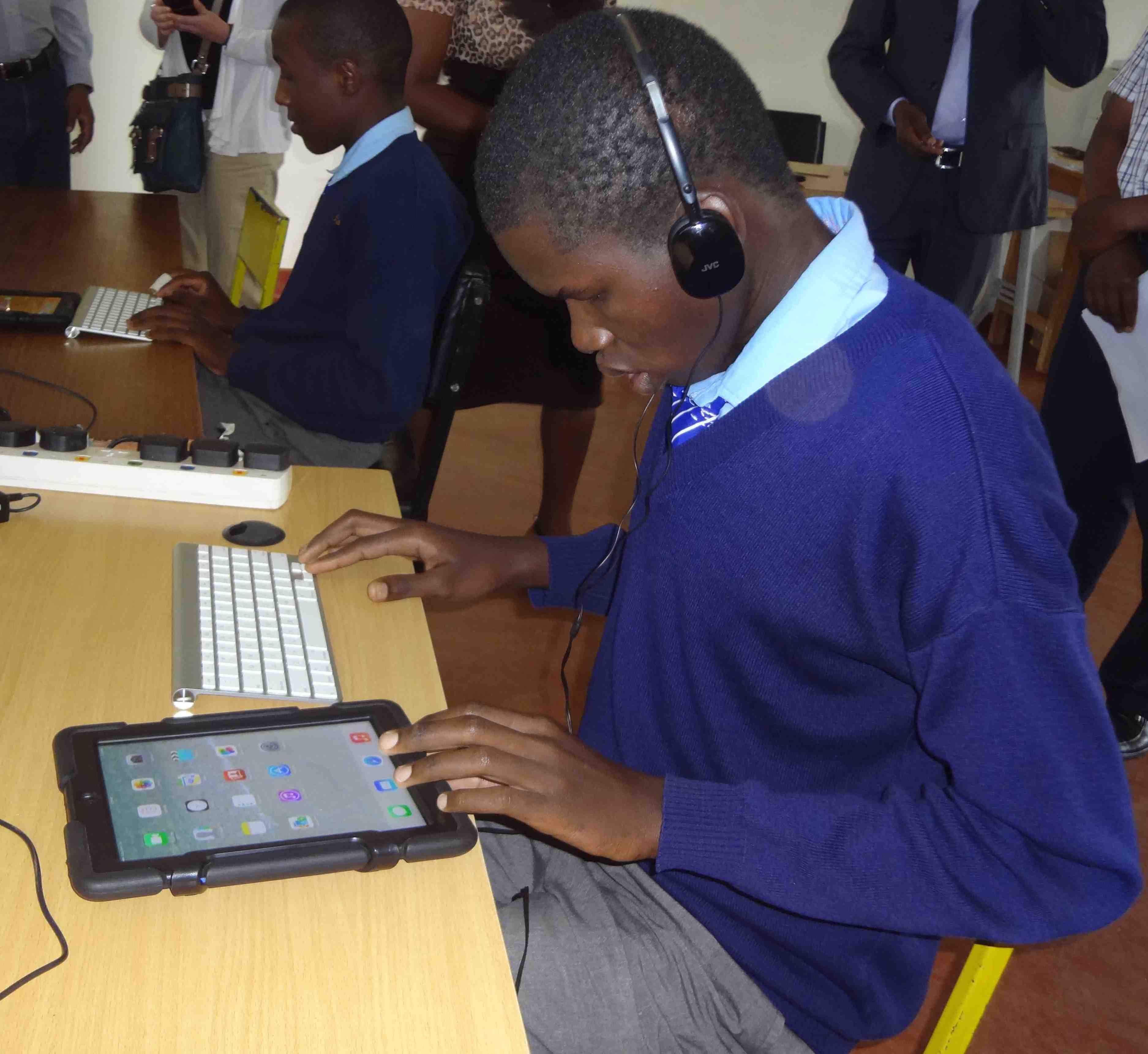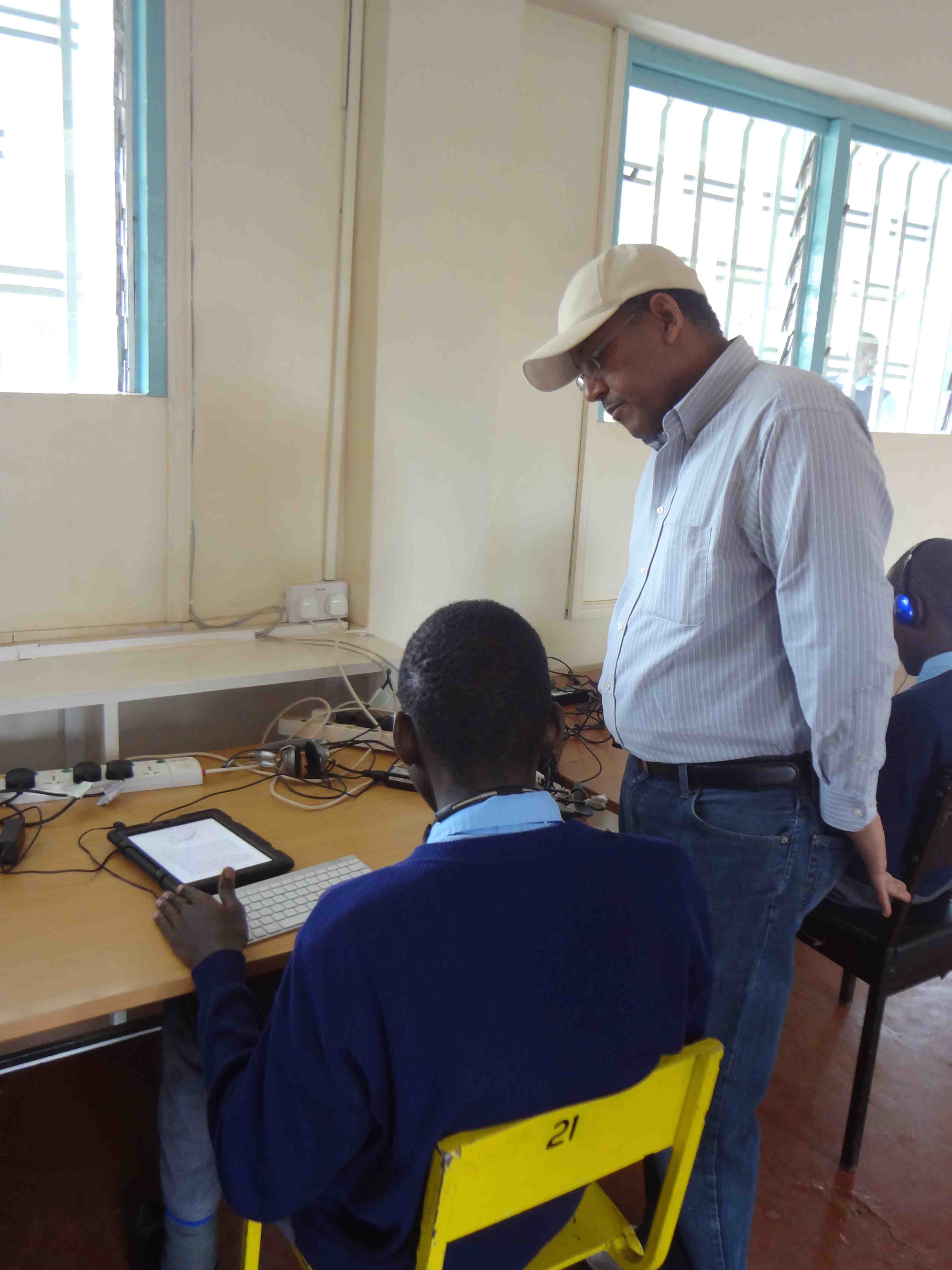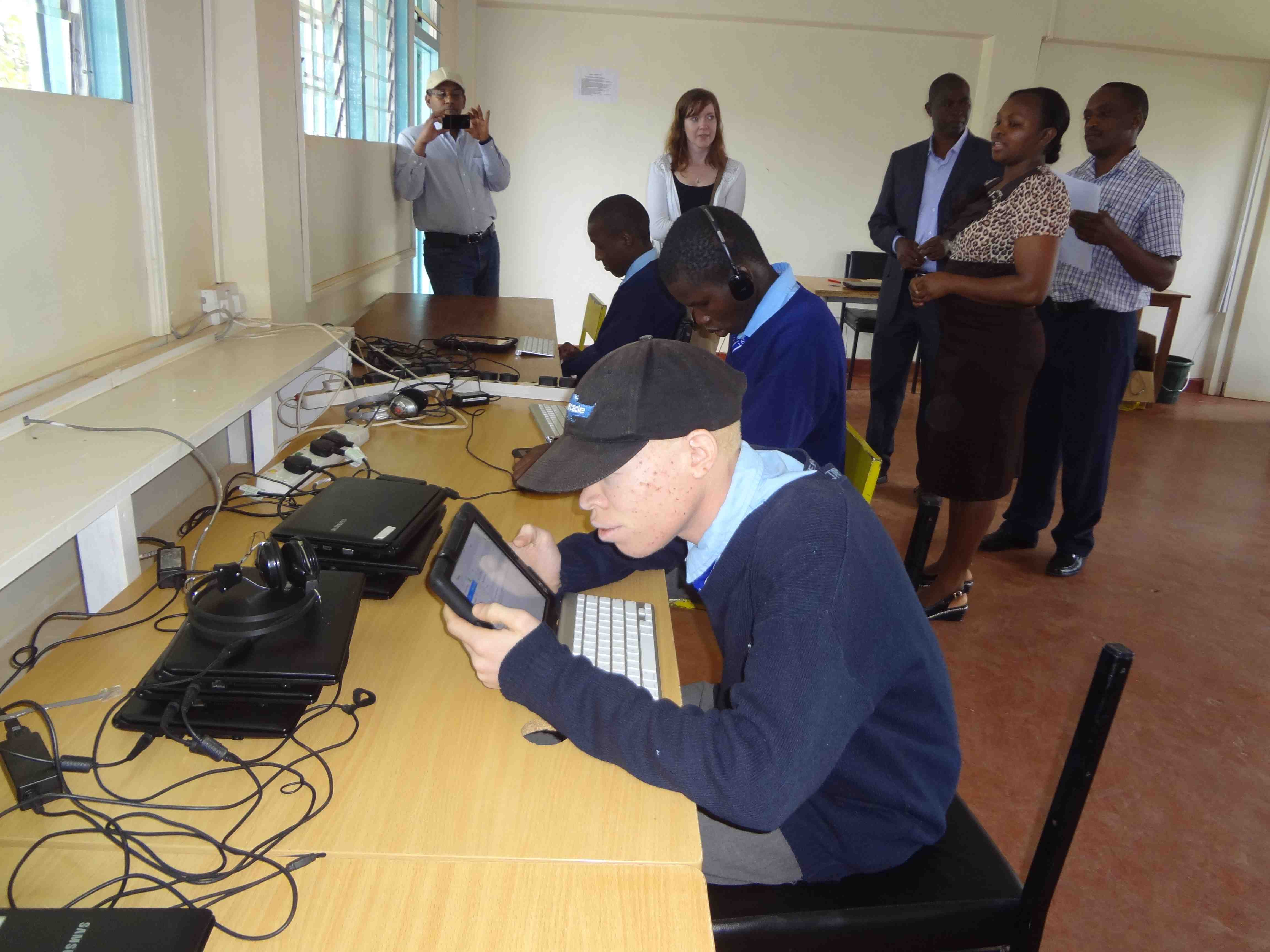 As part of Teshome Alemneh and Amy Reagan’s Monitoring and Evaluation Visit for the Kenyatta University-Syracuse University partnership project, Teshome and Amy visited one of our outreach sites, Thika School for the Blind, where SU team members Alan Foley and Joanna Masingila have worked with students with visual impairments and teachers to train them in using iOS devices with keyboards to read and create text.