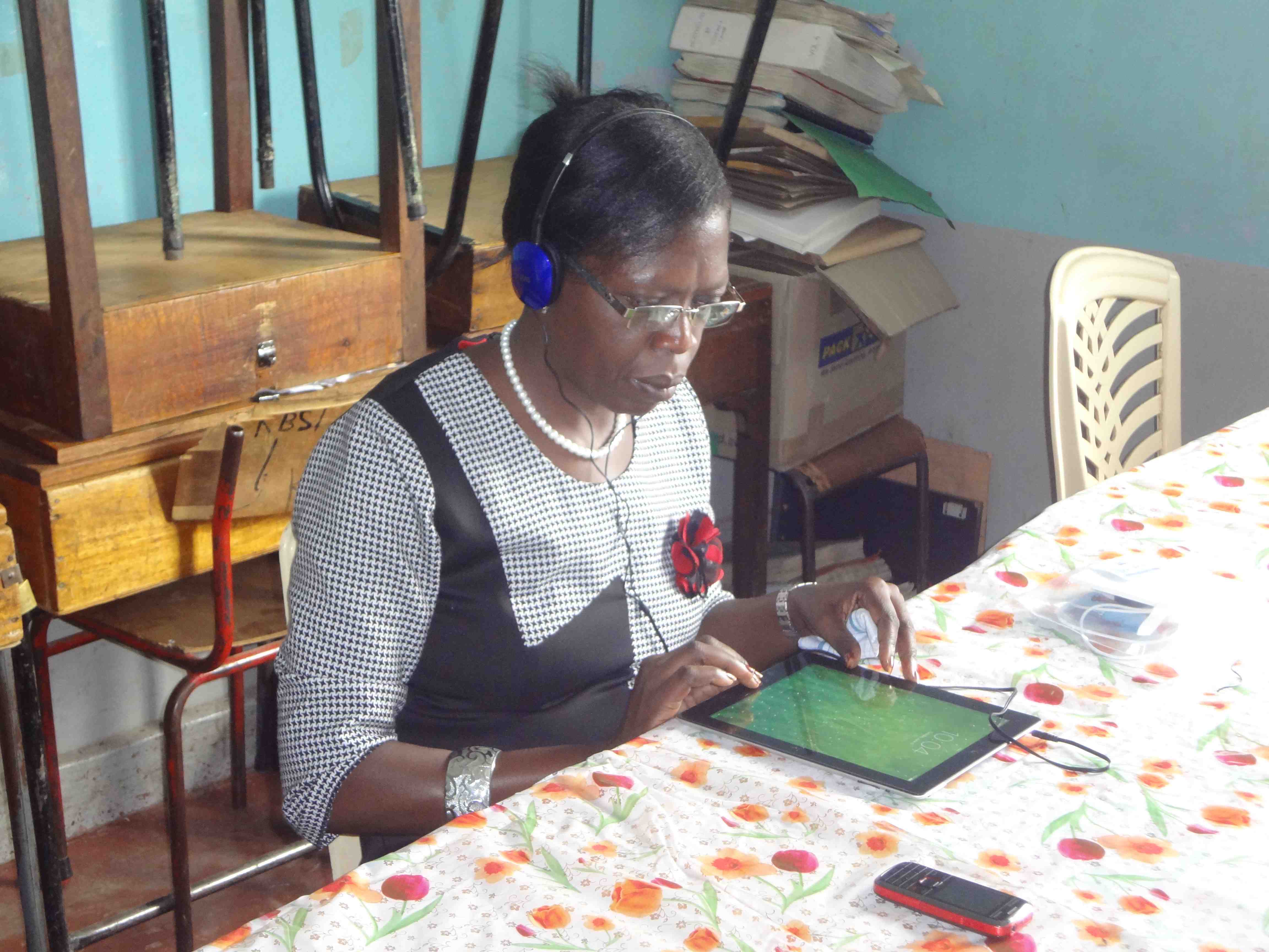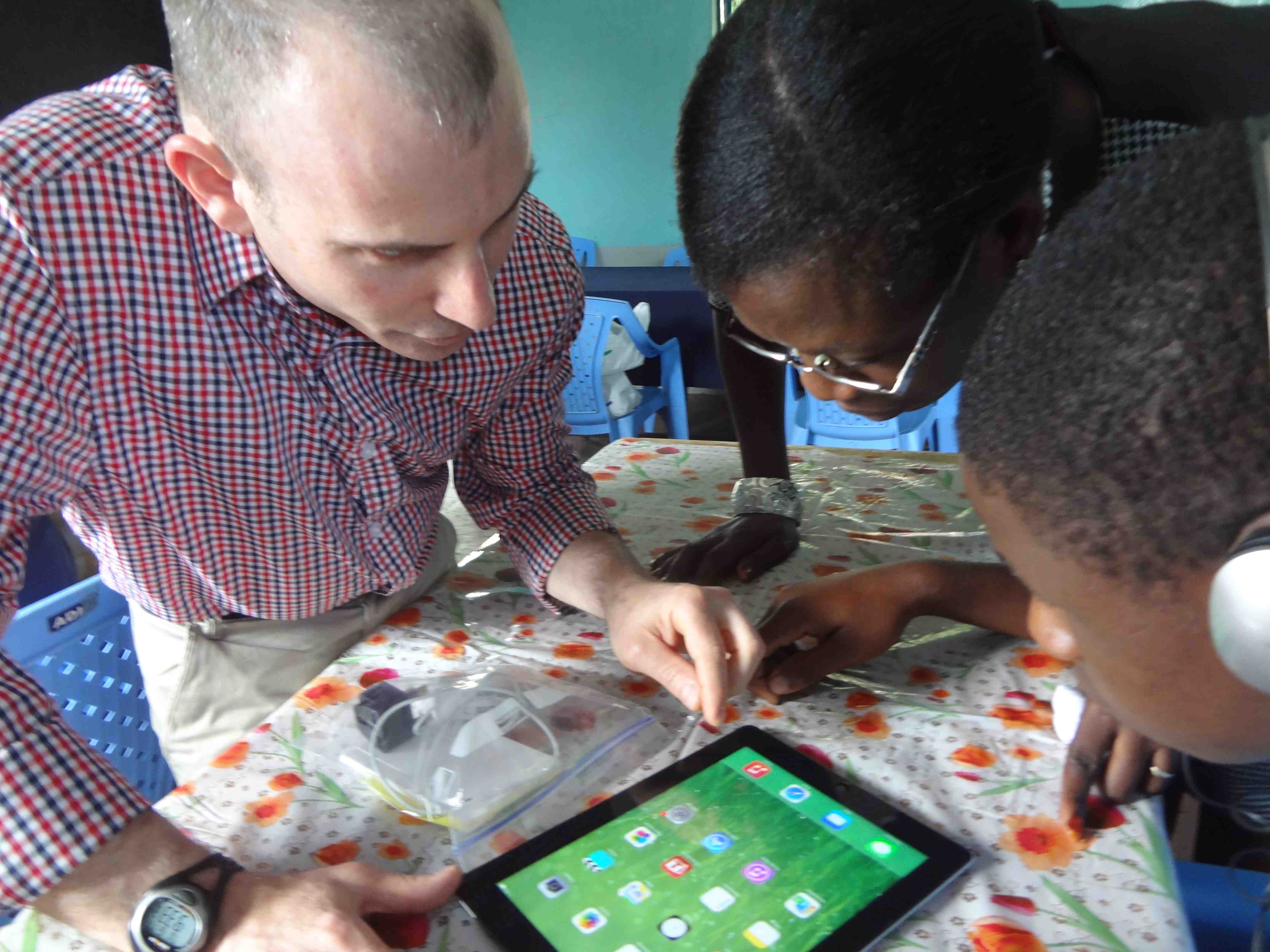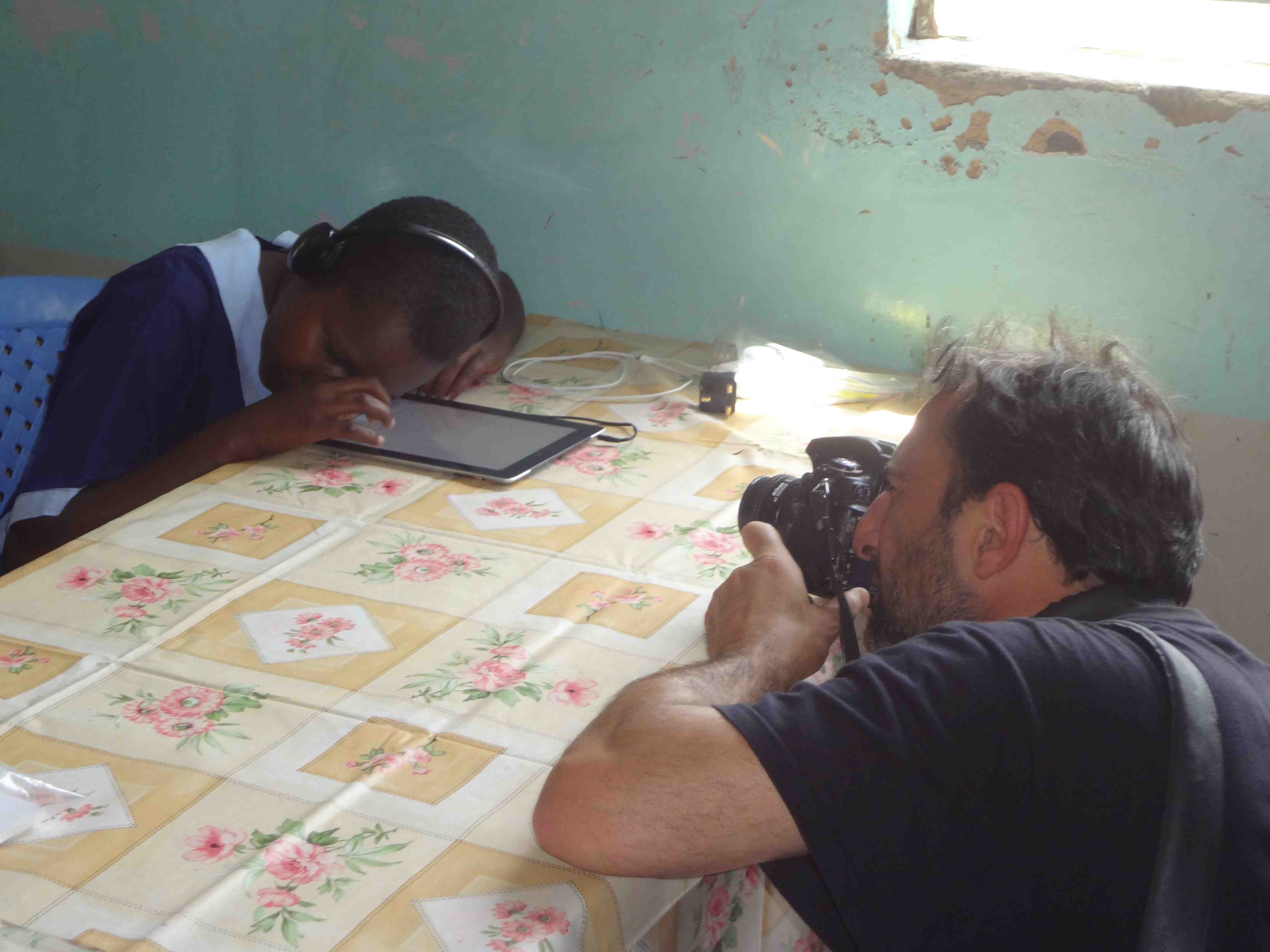 CaptionA professional photographer sent by USAID-Kenya takes a photo of Miriam working with an Ipad