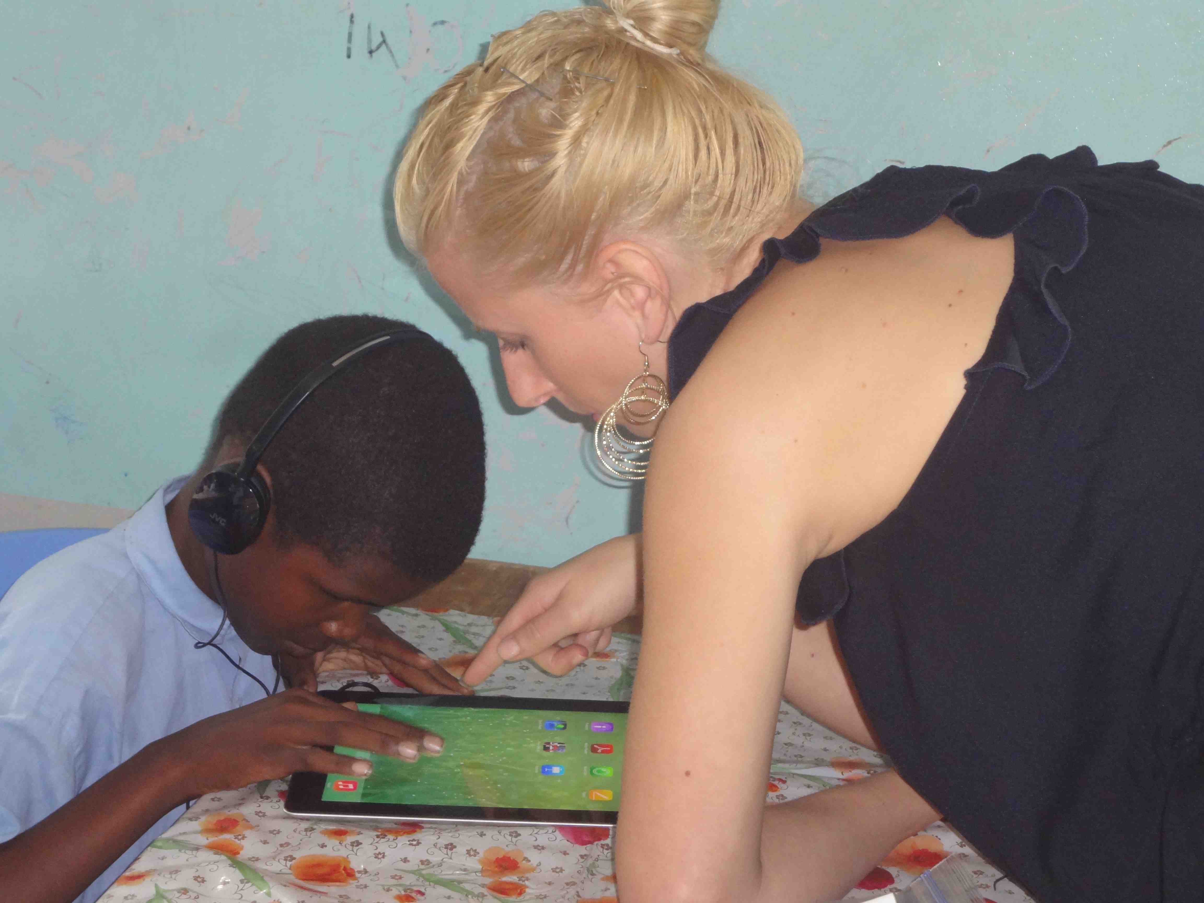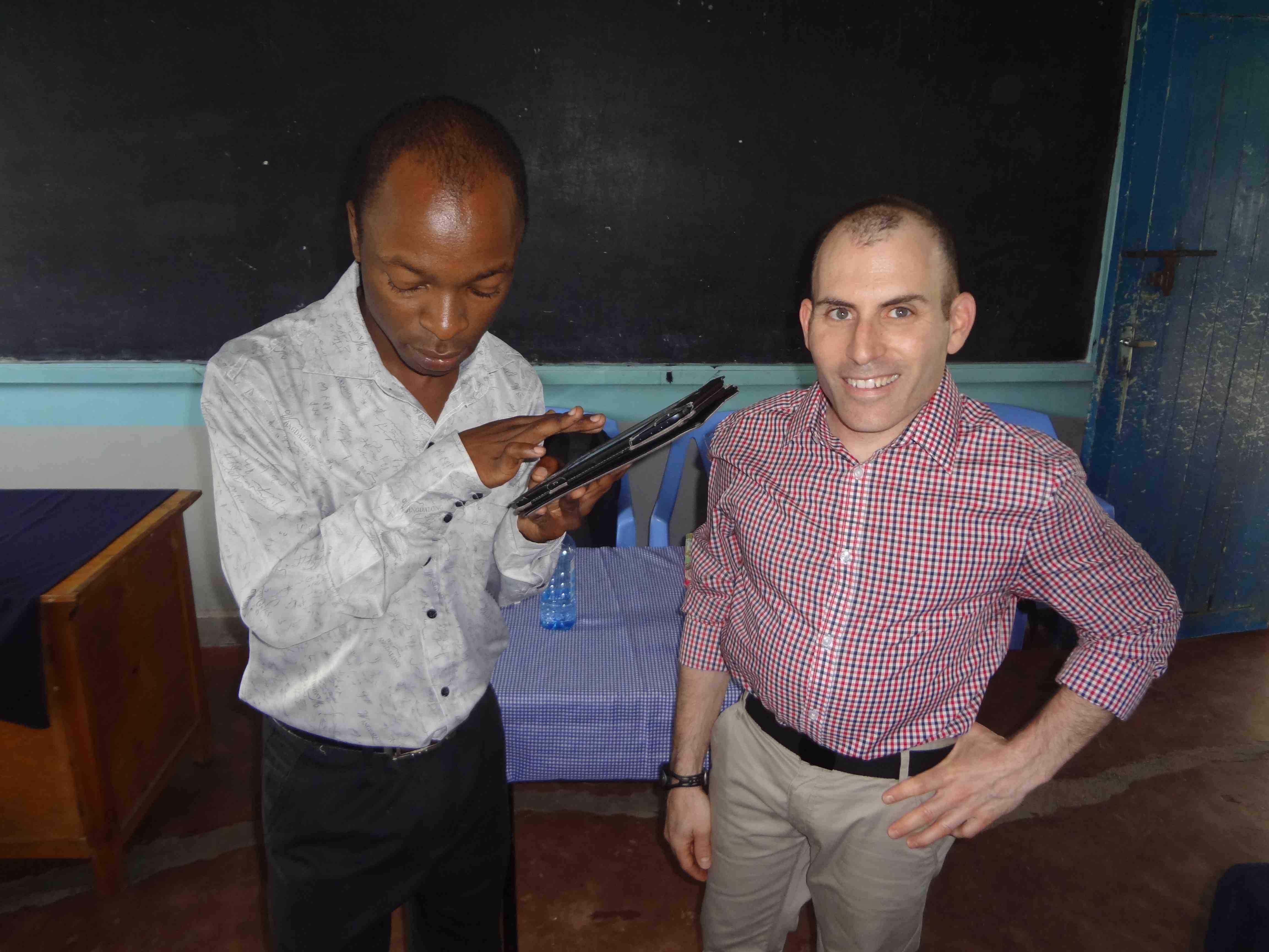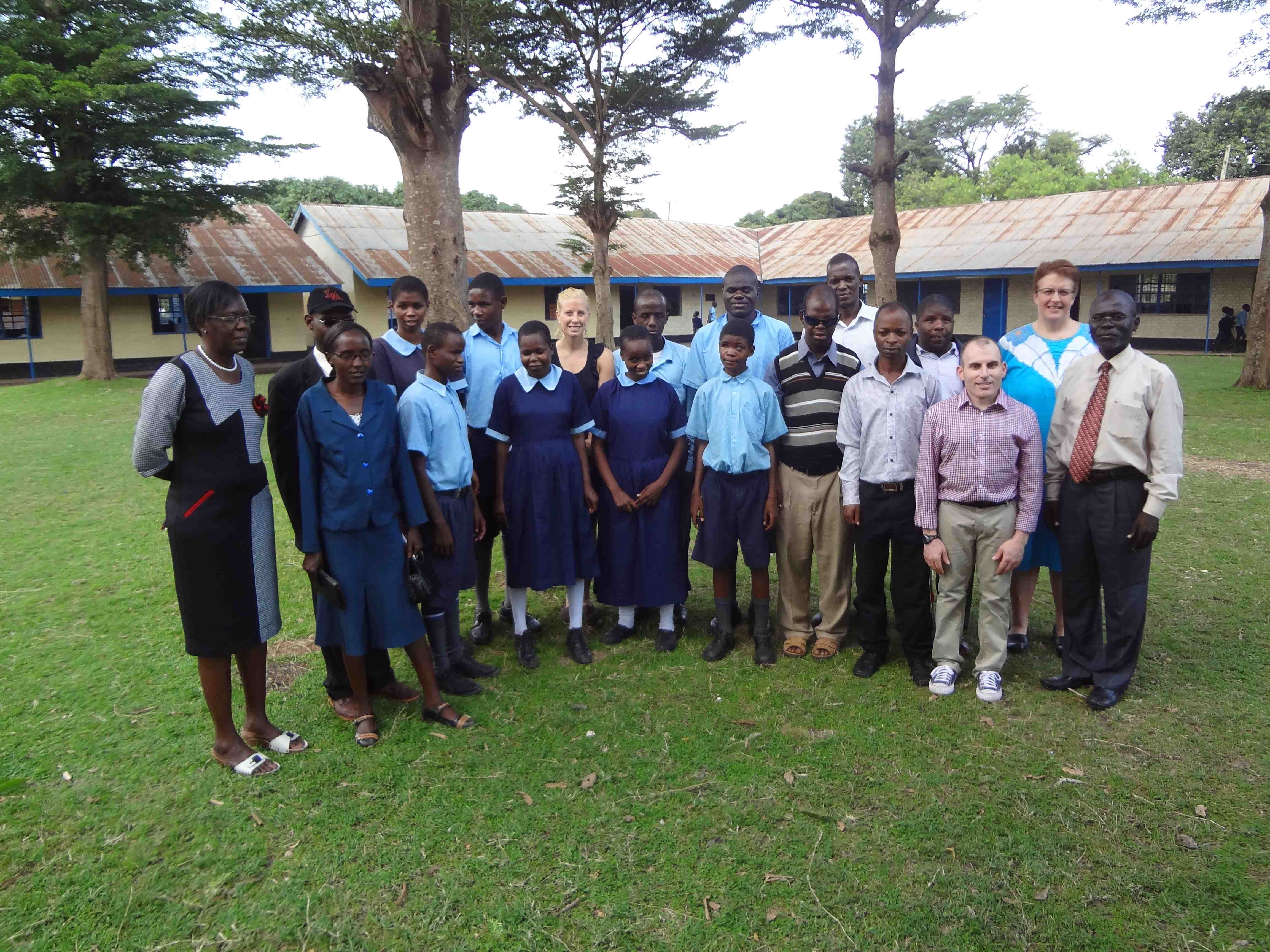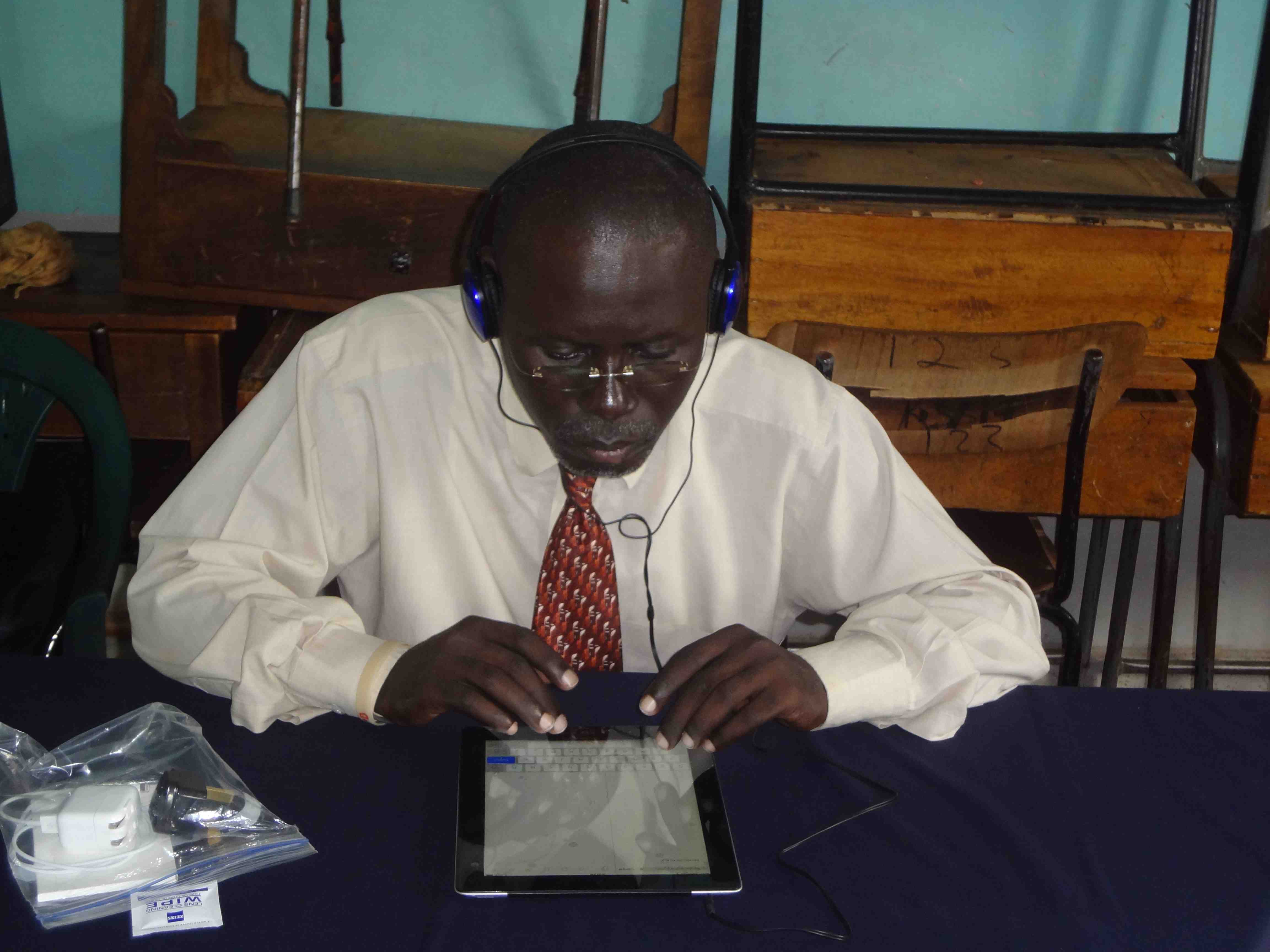 On June 17, 2014, Alan Foley, Katie Nichiporuk and Joanna Masingila worked with eight Standard 7 and Standard 8 pupils (7th and 8th graders) and three teachers at Kibos School for the Visually Impaired near Kisumu, Kenya. Some of us had visited Kibos last July and had donated some iPods and an iPad with keyboards at that time. This time we had 11 iPads and keyboards to donate.