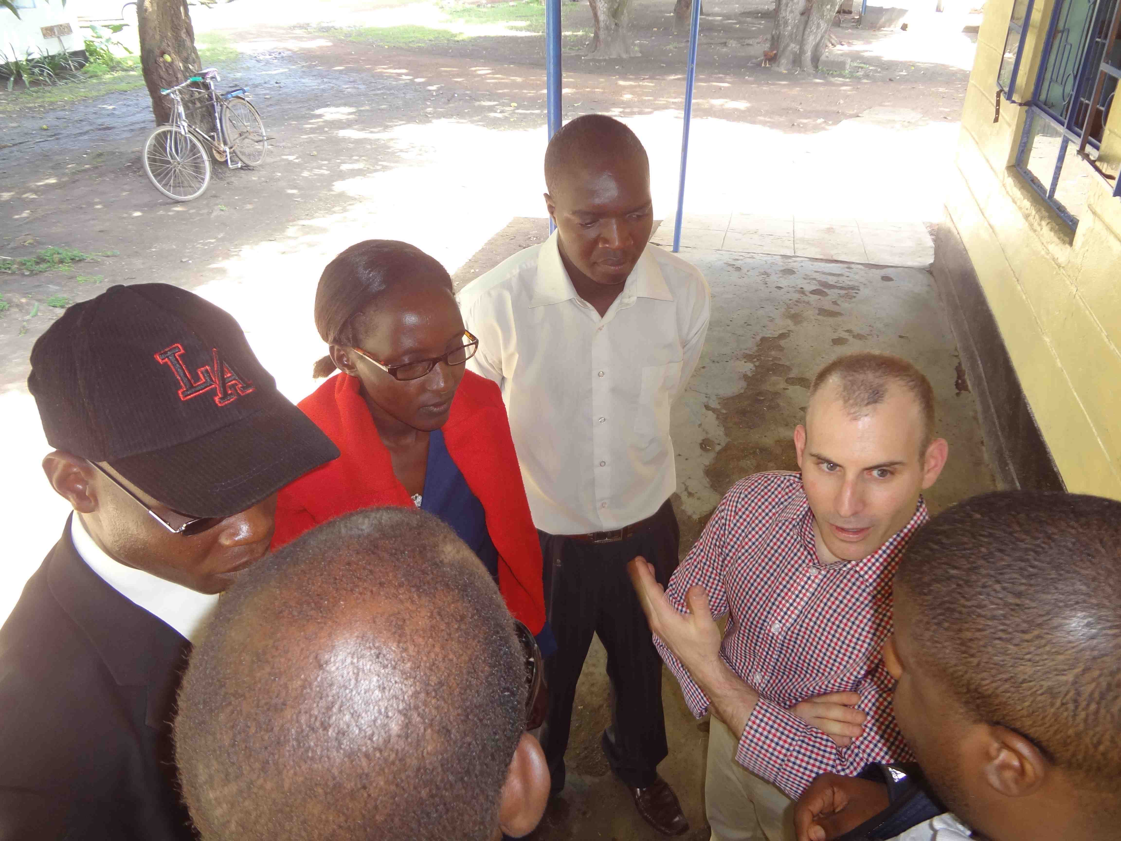 CaptionAlan discusses advocacy ideas with Hellen, Mandela, a secondary teacher, and two visitors from Kericho