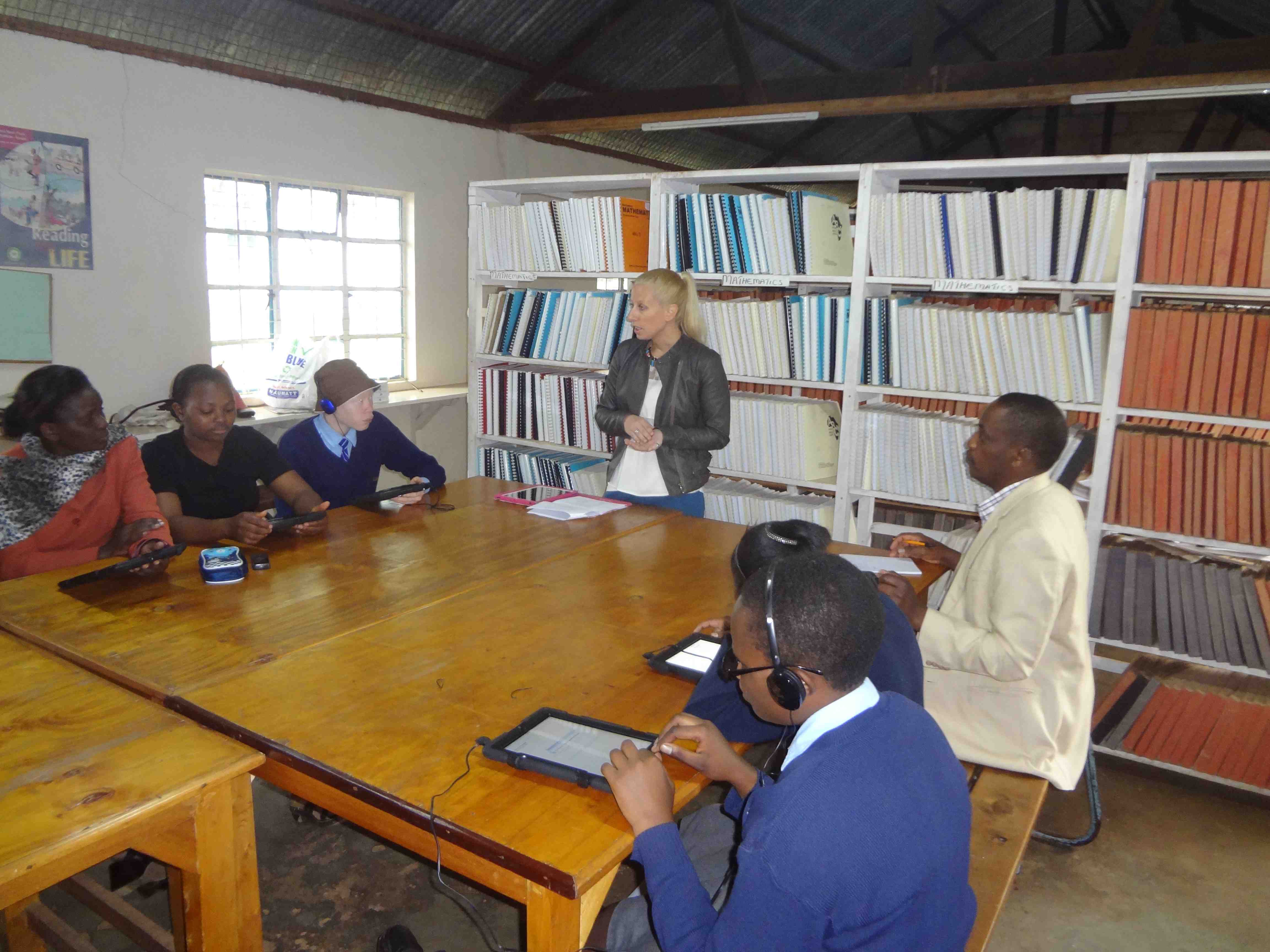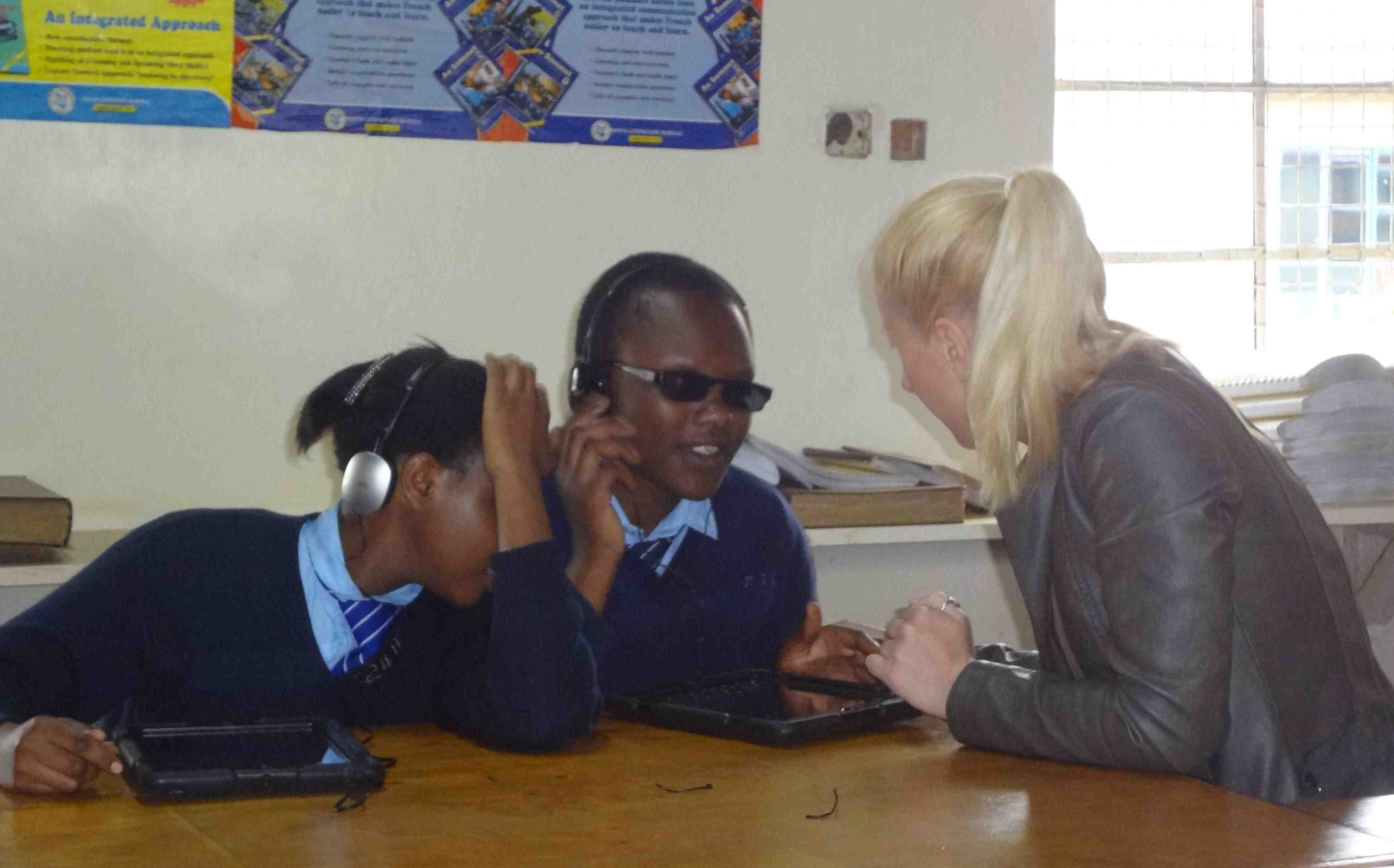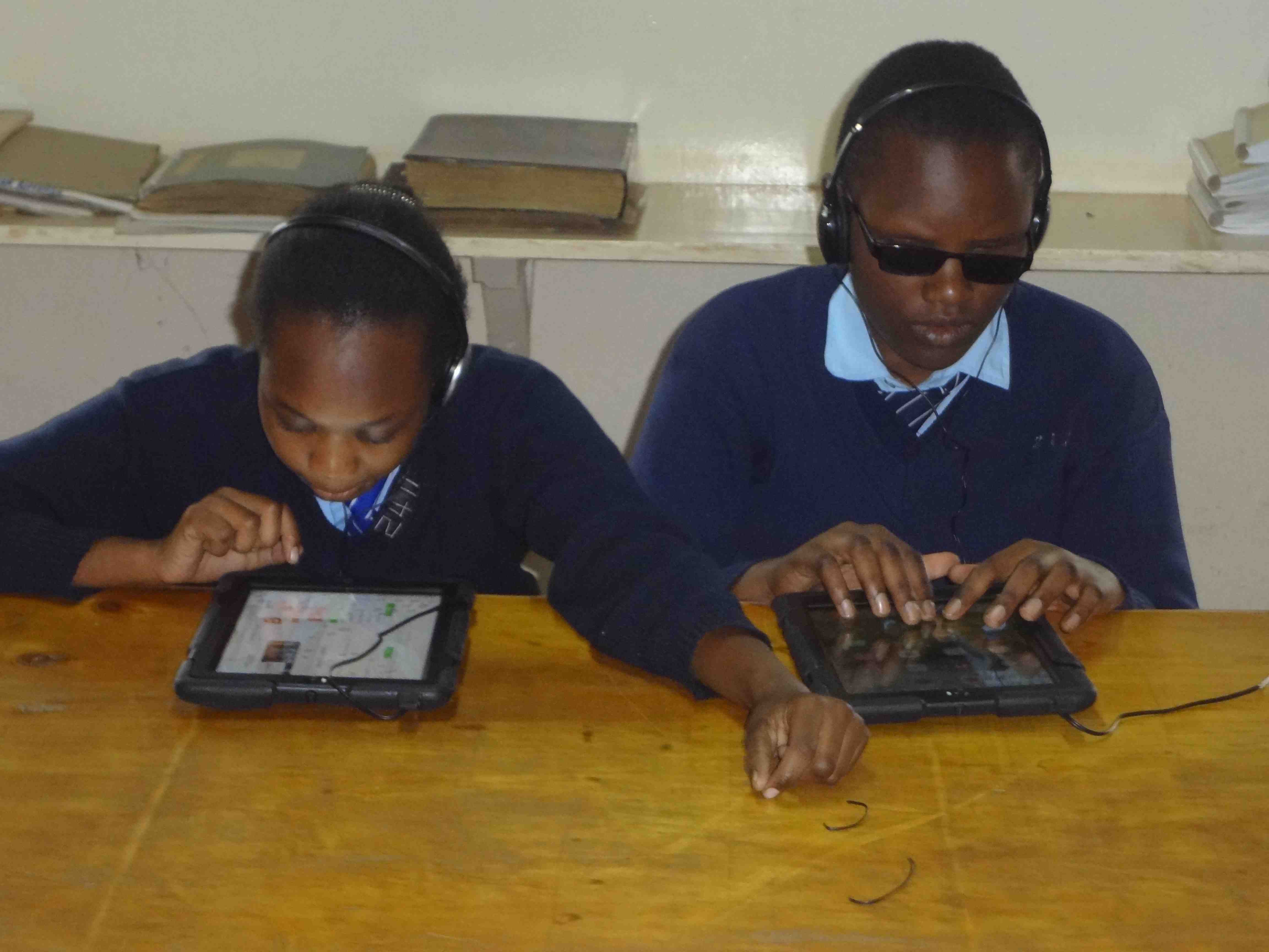On June 20, 2014, Alan Foley, Katie Nichiporuk and Joanna Masingila worked with six Form 1 (9th grade) and Form 3 (11th grade) students and eight teachers at Thika School for the Blind in Thika, Kenya. Some of us had visited Thika last July to introduce iOS technology and also in January 2014 to work with students and teachers and donate 8 iPads and keyboards. This time we had 3 more iPads and keyboards to donate.