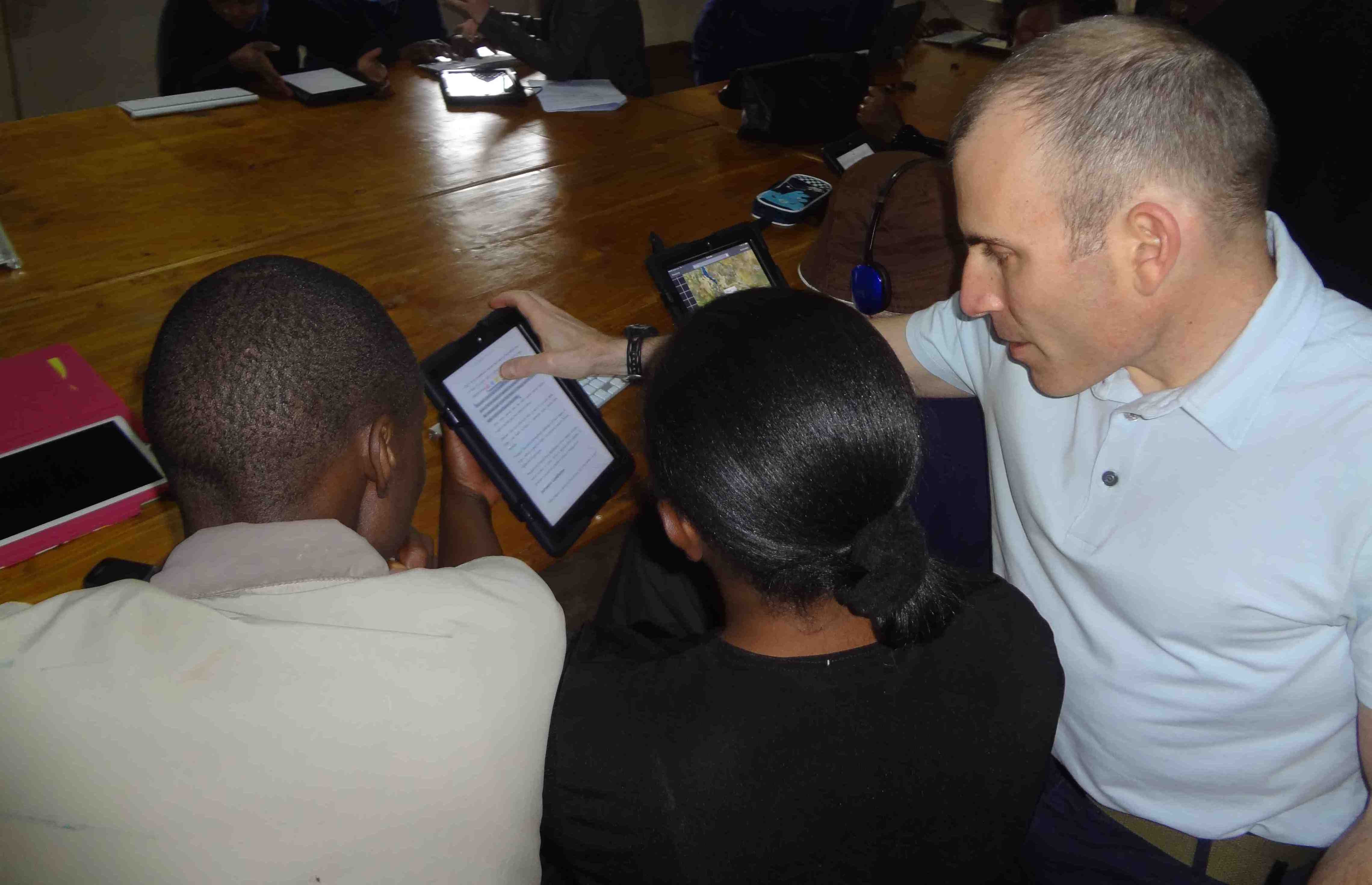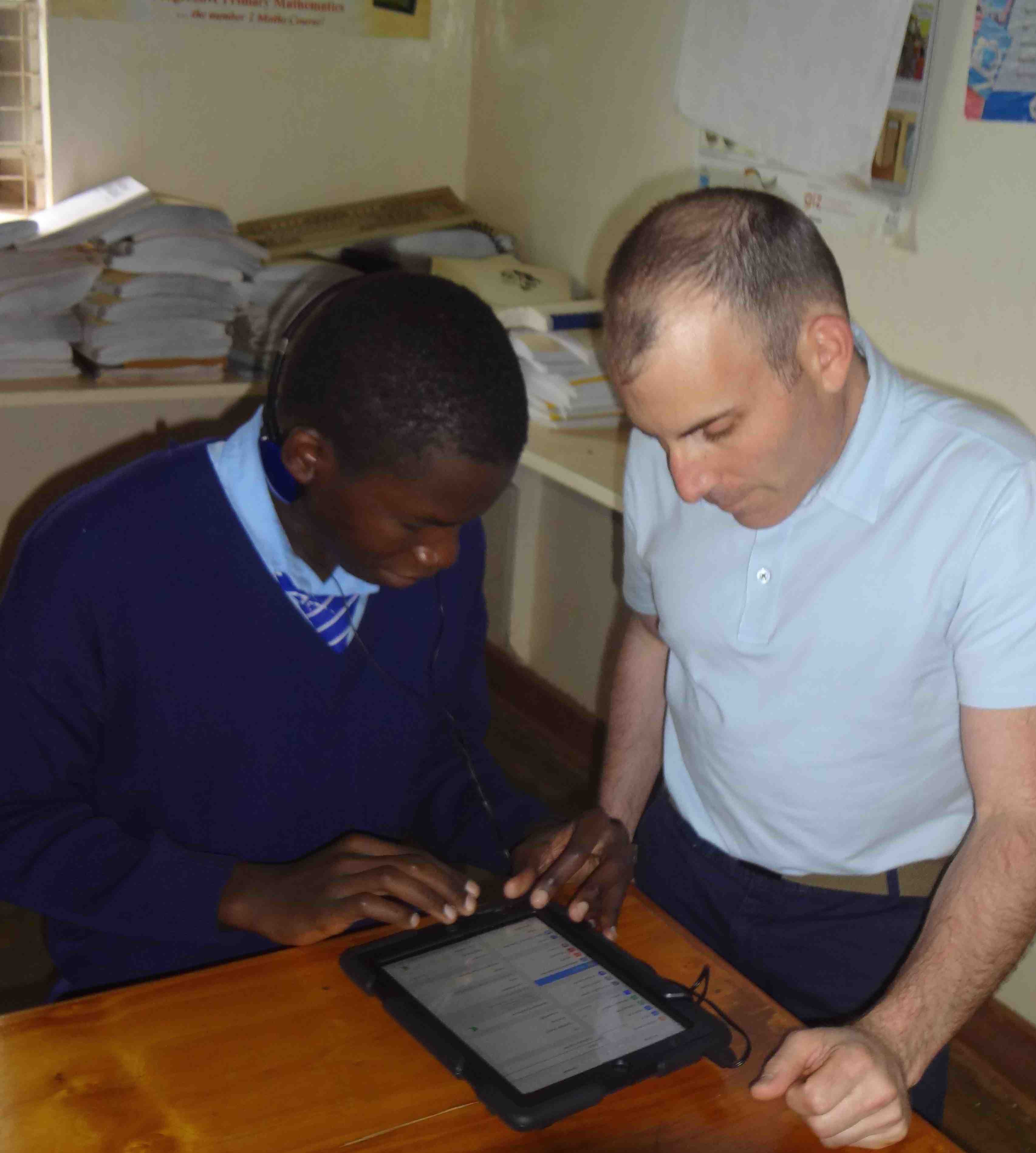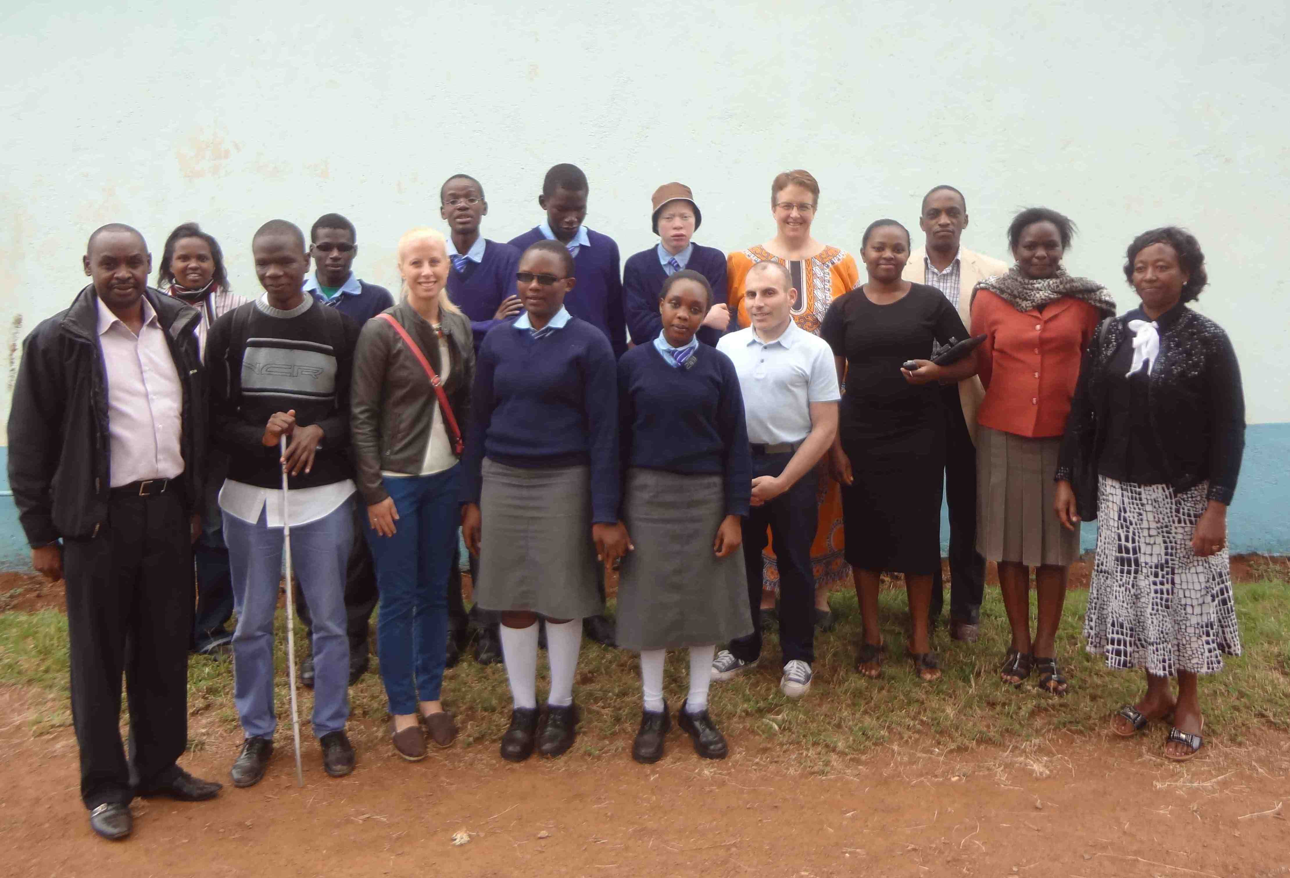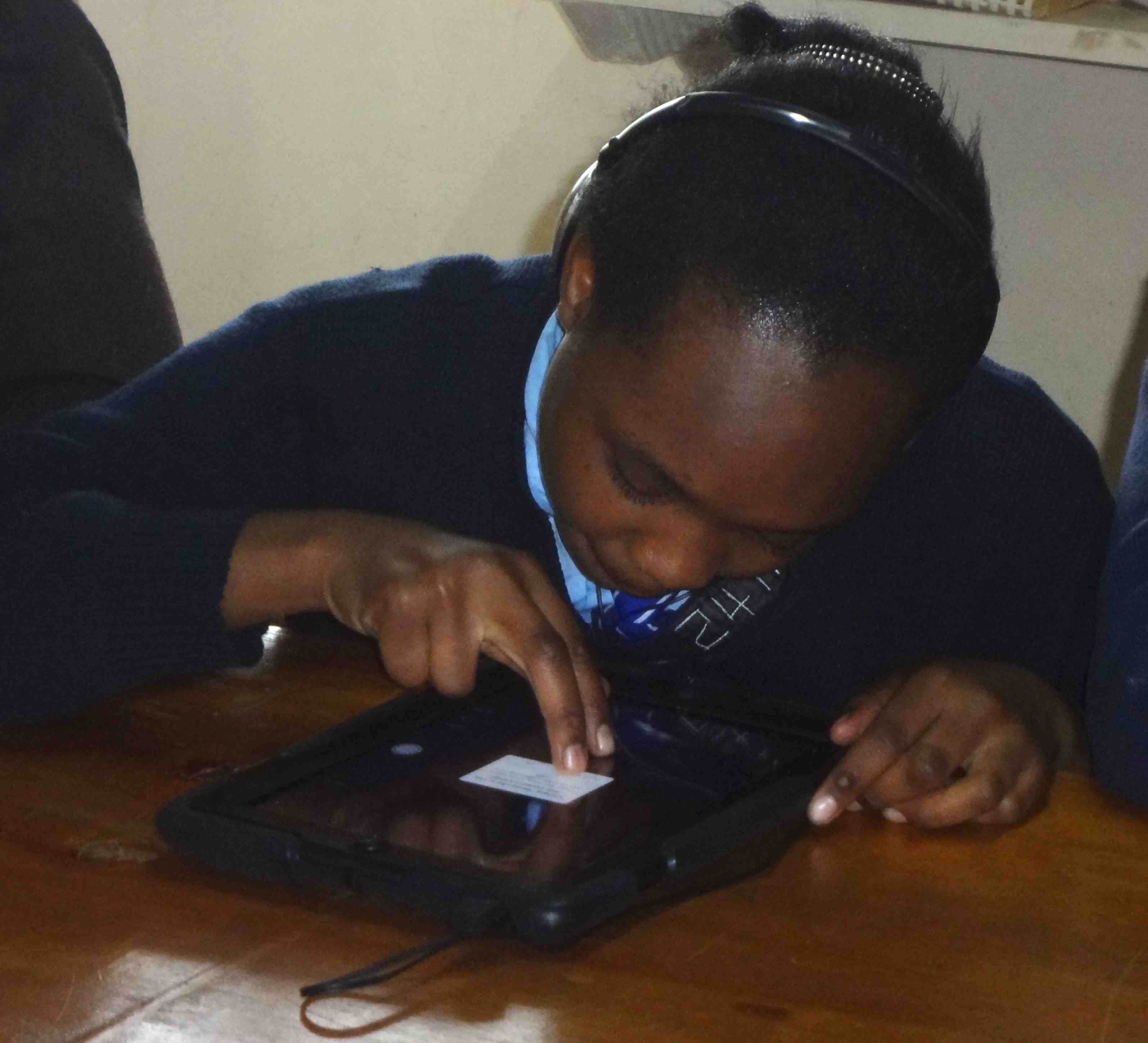On June 20, 2014, Alan Foley, Katie Nichiporuk and Joanna Masingila worked with six Form 1 (9th grade) and Form 3 (11th grade) students and eight teachers at Thika School for the Blind in Thika, Kenya. Some of us had visited Thika last July to introduce iOS technology and also in January 2014 to work with students and teachers and donate 8 iPads and keyboards. This time we had 3 more iPads and keyboards to donate.