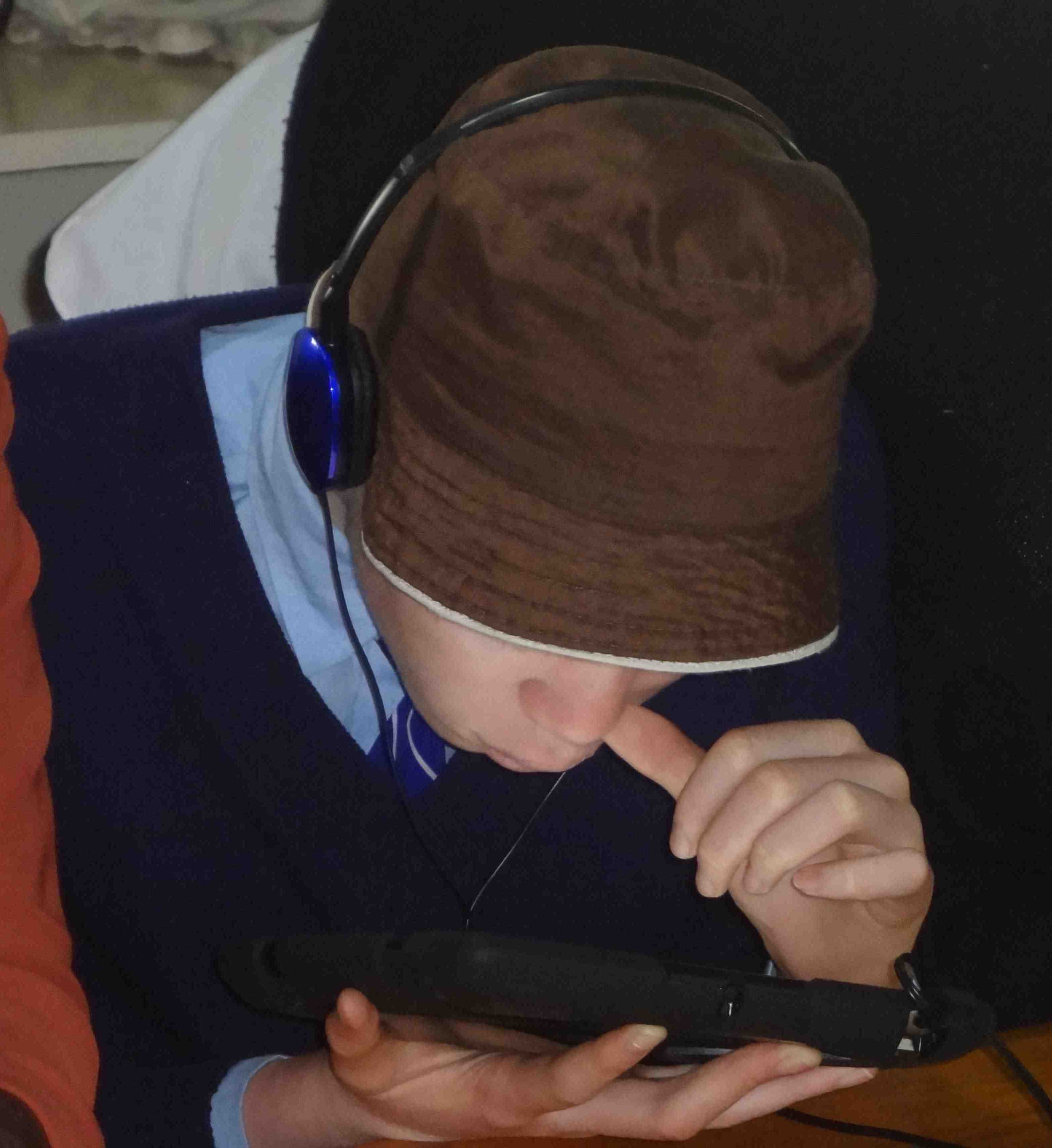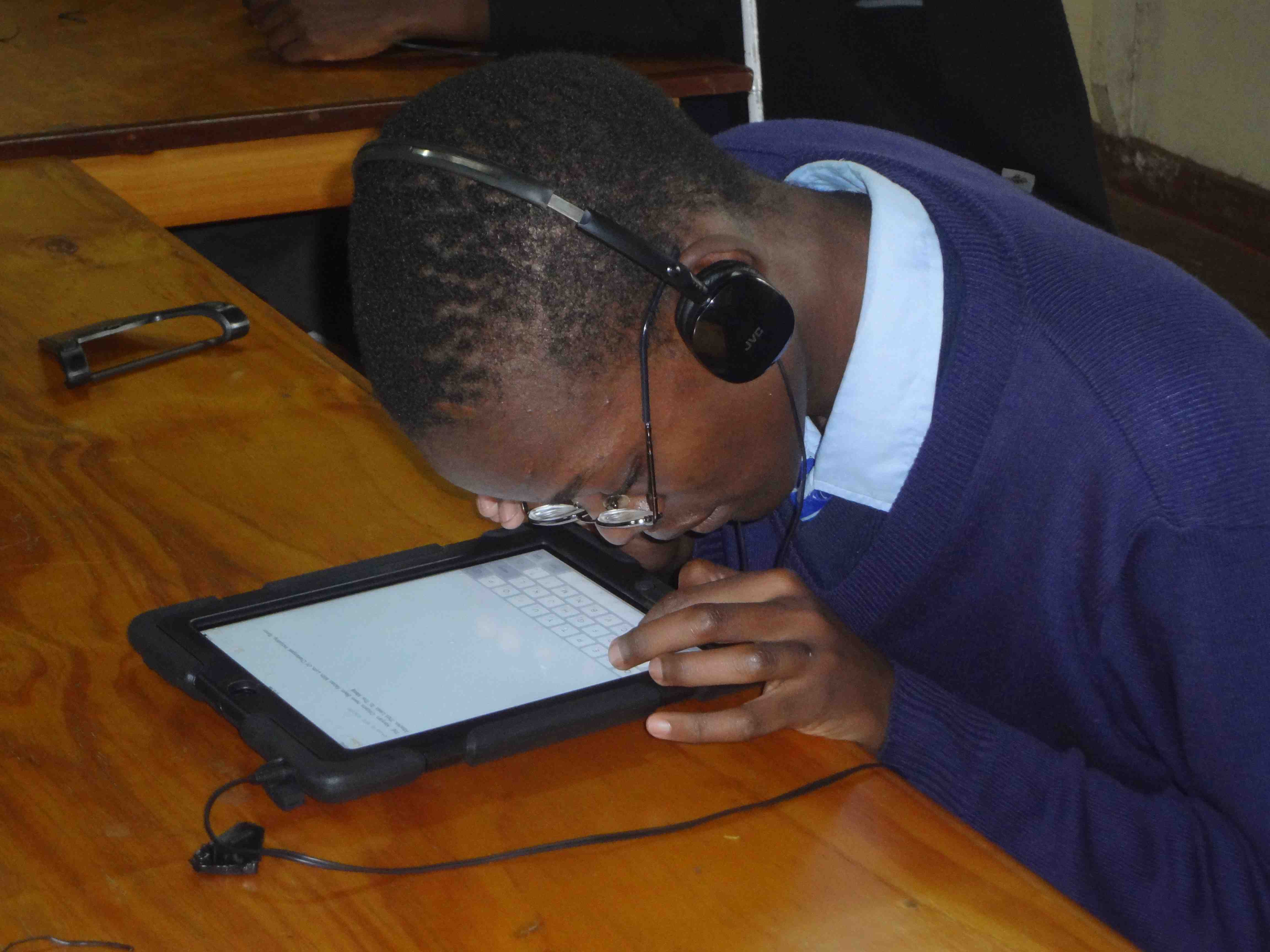CaptionIan Ogendo uses the Zoom (magnification) feature