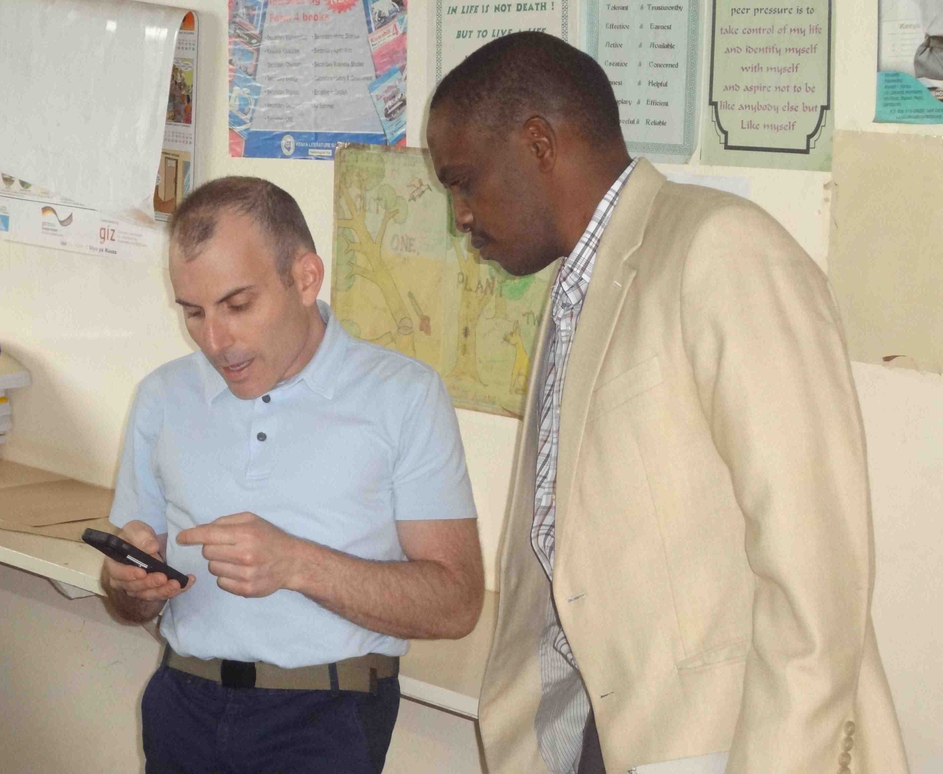 CaptionAlan Foley talks Nelson Otieno through some settings