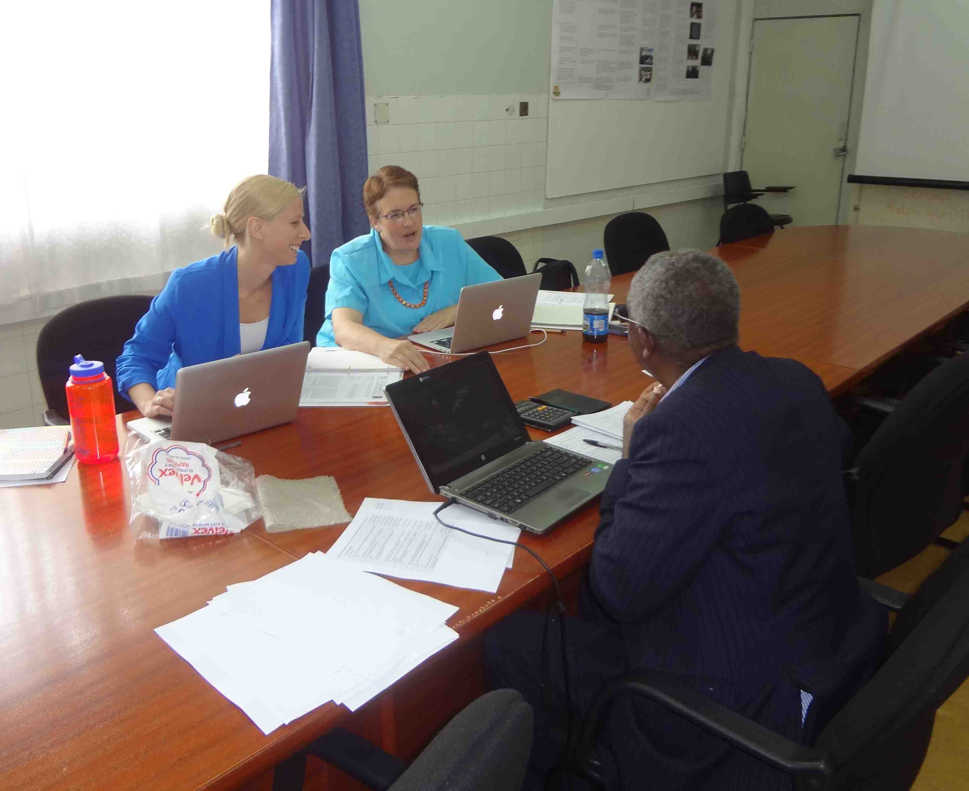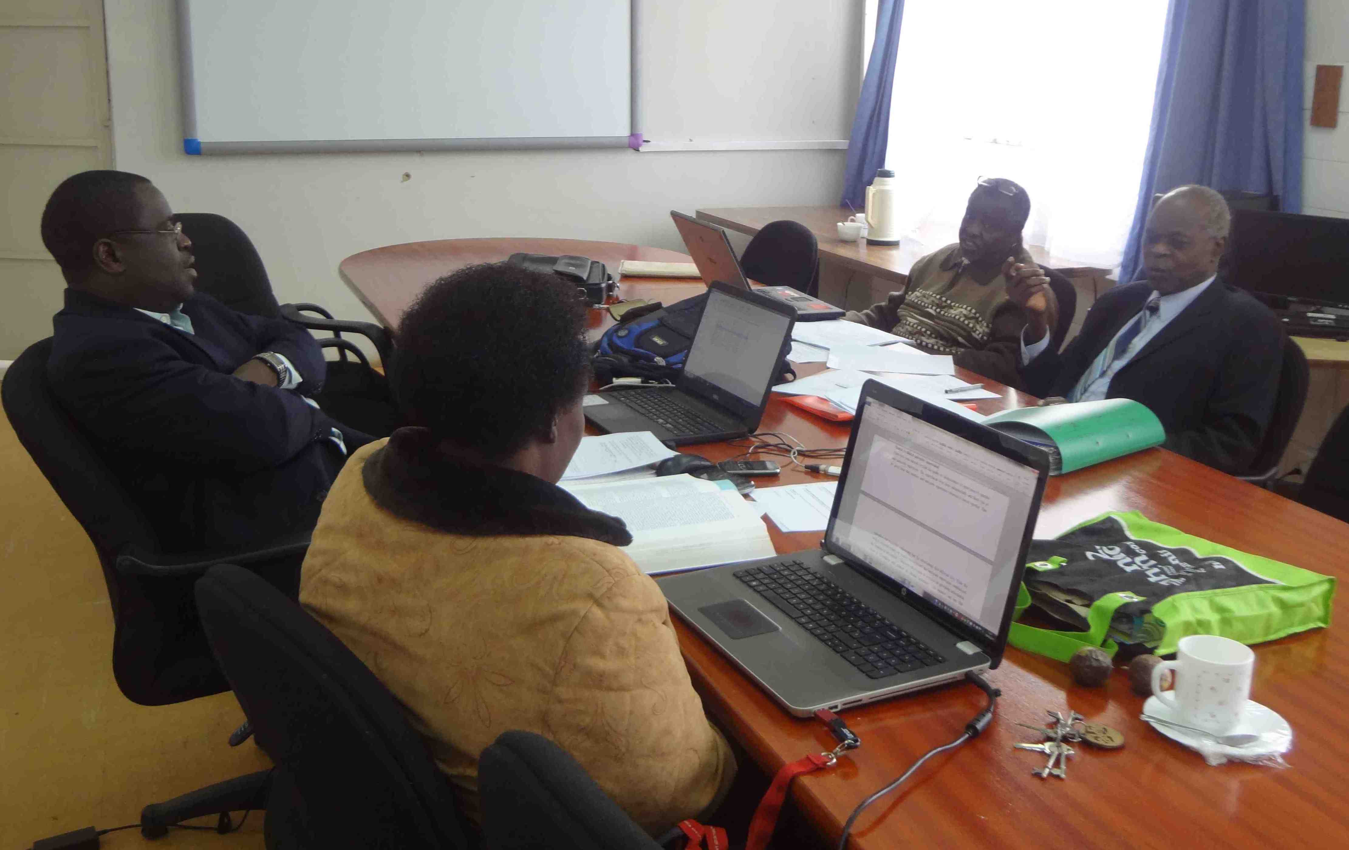 Members of the Kenyatta University and Syracuse University teams are gathered again this week at Kenyatta University to work on analyzing data for three collaborative research projects and writing up at least one paper from each study. The studies were designed beginning in 2012 and data were collected in 2013. There are six collaborative research studies that team members are working on, and three of these studies were the focus of a one-week workshop in January 2014. Two of these research groups (Teaching Practice and Technology Usage by Kenyan Secondary Teachers) have submitted papers for publication. The third research group (Literacy Norms in Kenyan Secondary Schools) is finalizing a paper for submission. The three studies we are currently working on deal with Mentoring, Teaching Large Classes, and Supporting All Learners. All data were collected in Kenyan secondary schools.
