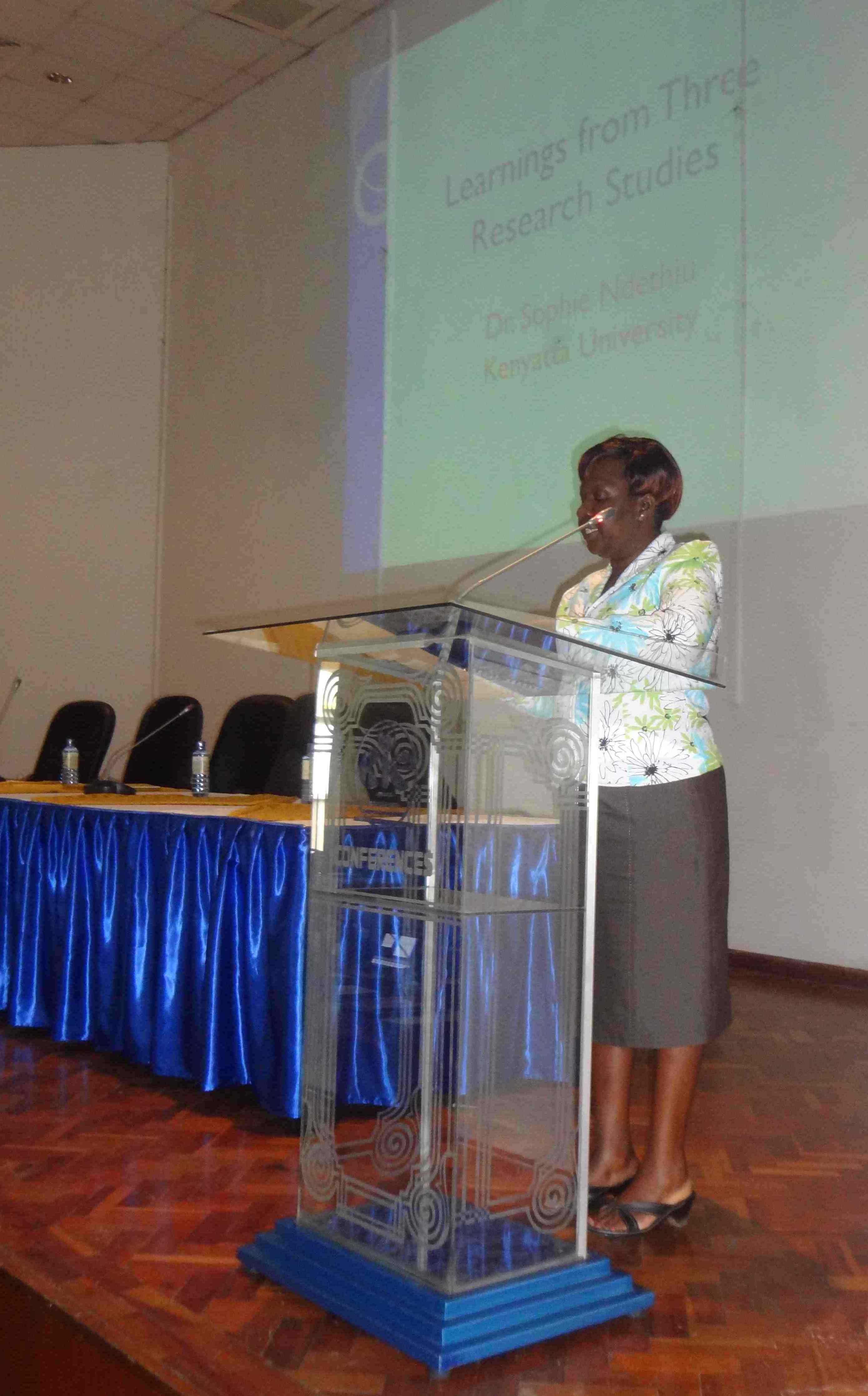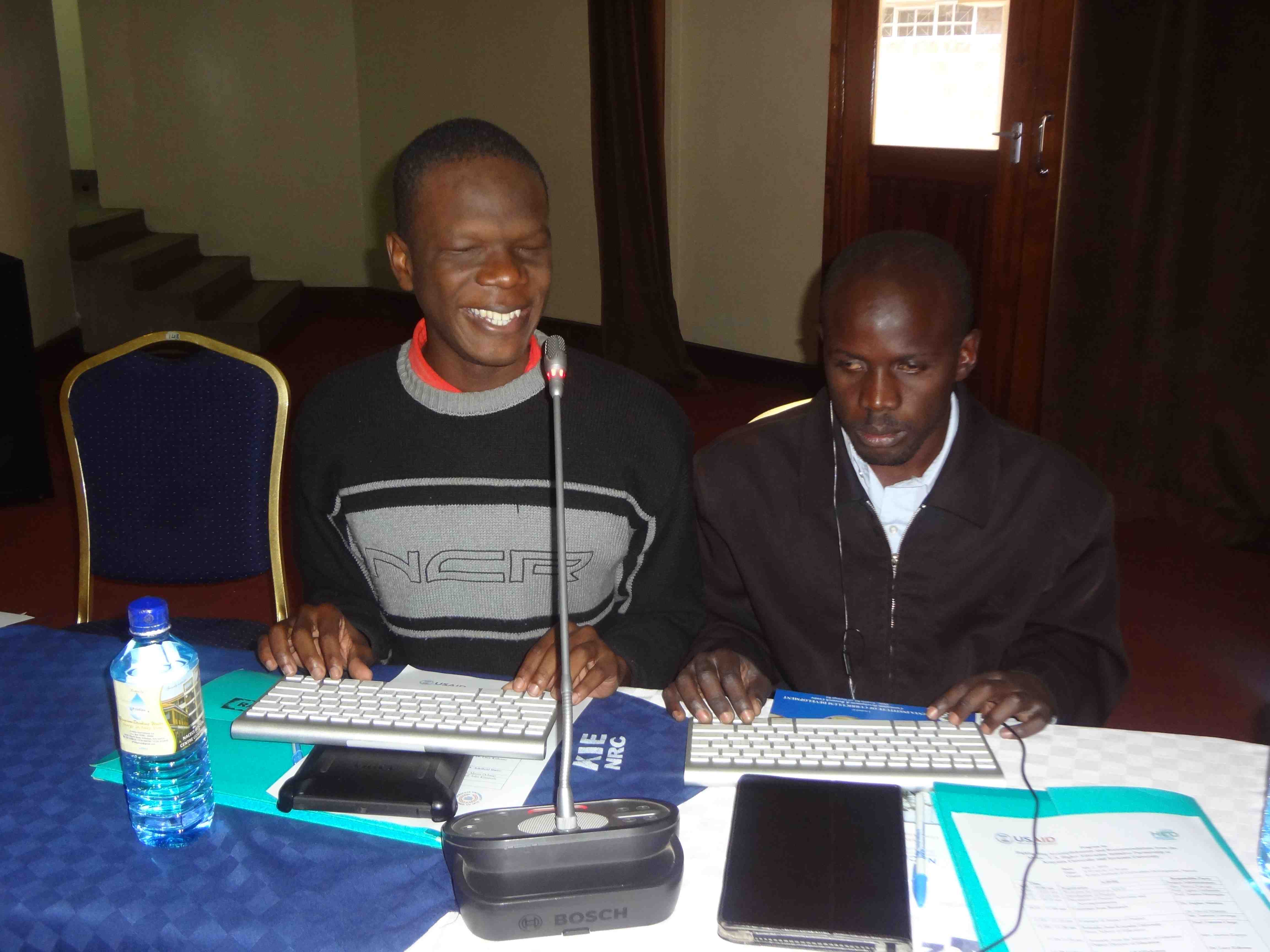 On July 2, 2014, we had a stakeholders’ meeting to present the activities and accomplishments from our partnership project that has been USAID-funded. We held the meeting at the Kenya Institute of Curriculum Development and were welcomed by the Acting Director, Mrs. Mercy Karogo. Prof. Agnes Gathumbi, KU project director, introduced the project. Prof. Joanna Masingila, SU project director, discussed project activities and accomplishments. Dr. Sophie Ndethiu and Dr. David Khatete, KU project team members, presented the recommendations from six collaborative research studies. Mr. Sammy Luvonga and Mr. Dan Onyango, KU students with visual impairments, spoke about the impact the project has had on their academics and lives.