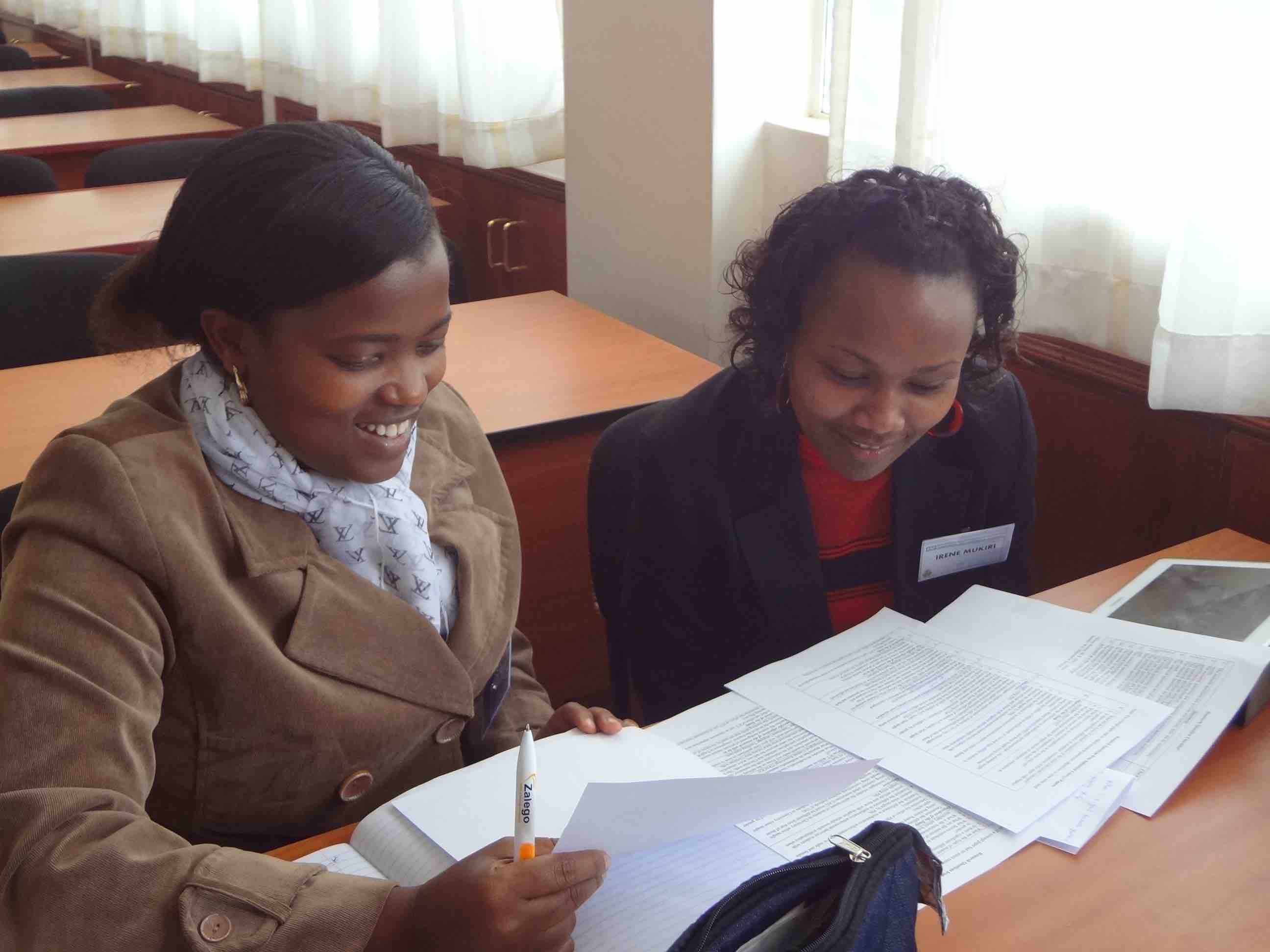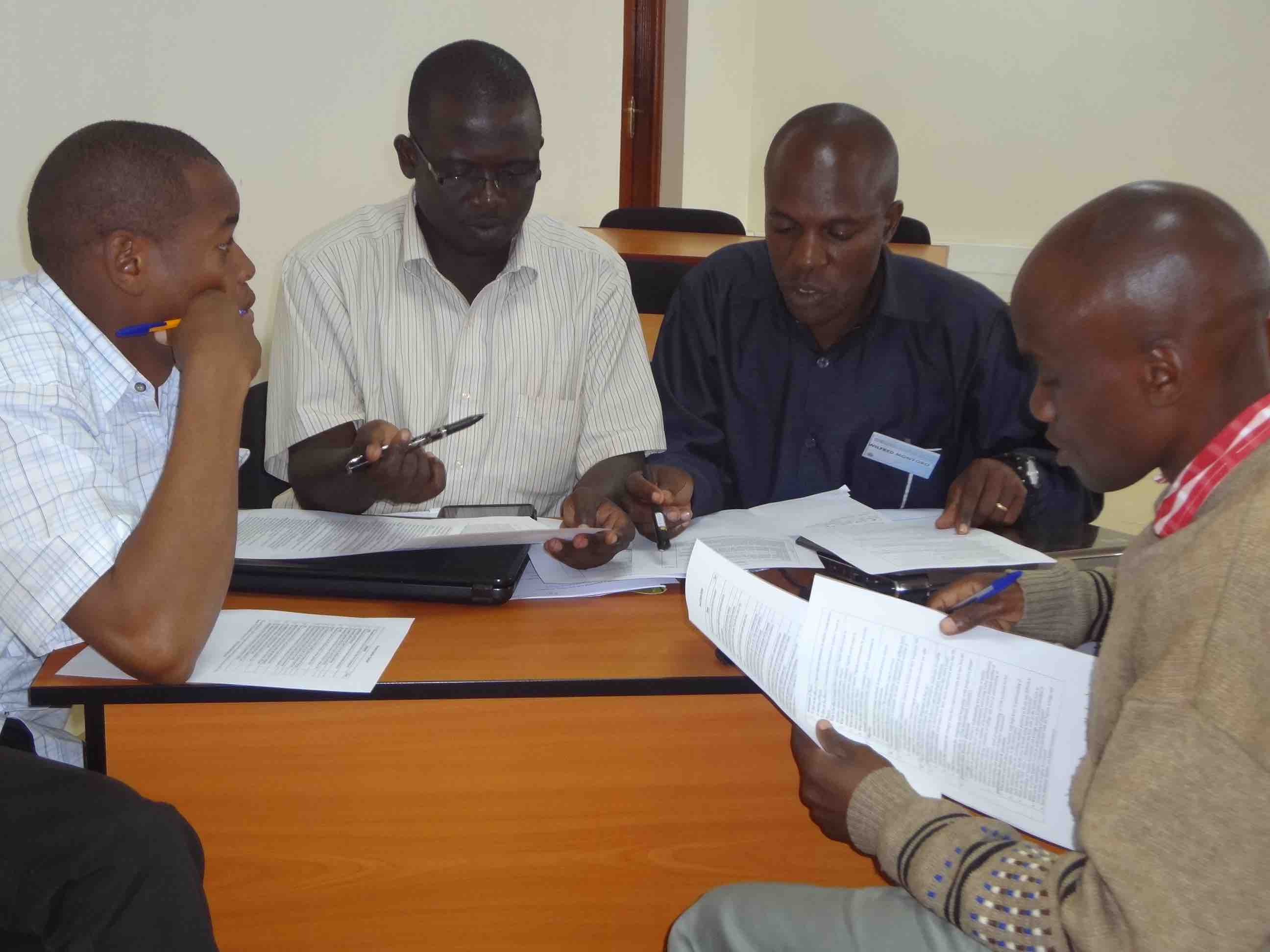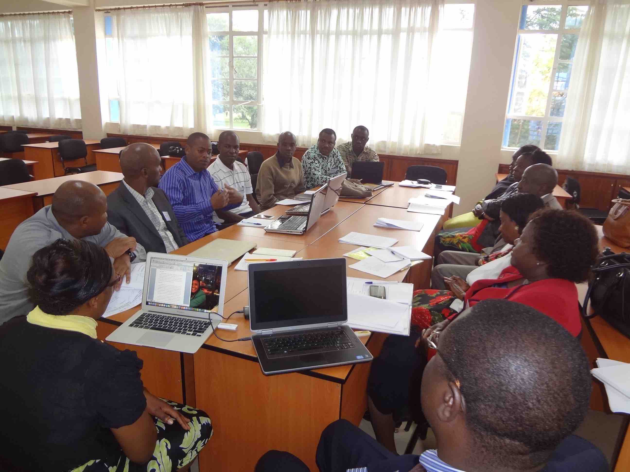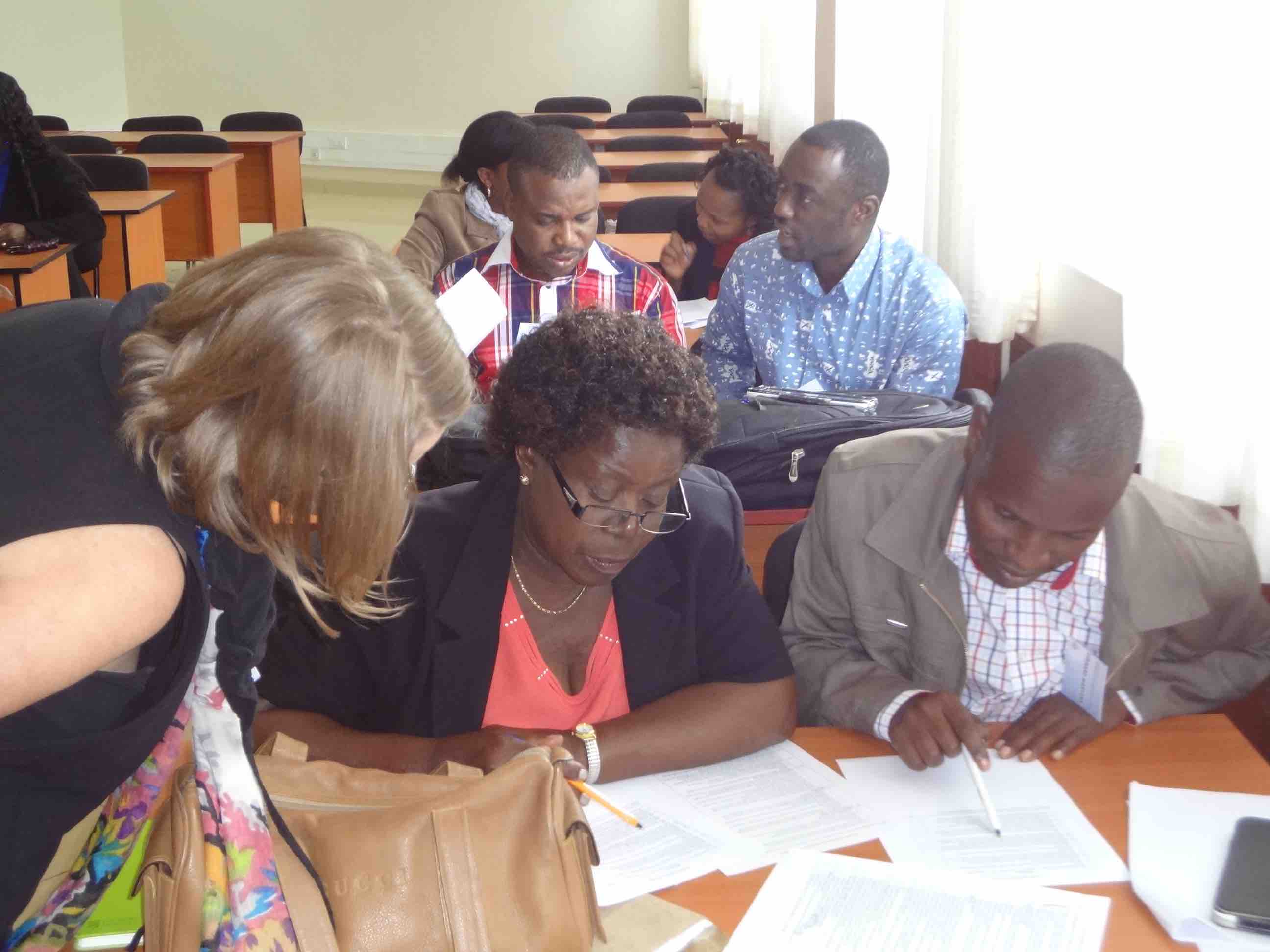 After each presentation, participants split up into three working groups to apply the ideas just presented and discuss concept papers submitted by doctoral participants. The working groups were facilitated by the presenters and Prof. Moses Ochanji, Associate Professor at California State University, San Marcos, Prof. Penina Kamina, Associate Professor at State University of New York College at Oneonta, Dr. Adelheid Bwire, Lecturer at Kenyatta University, and Dr. Marguerite Miheso-O’Connor, Lecturer at Kenyatta University.