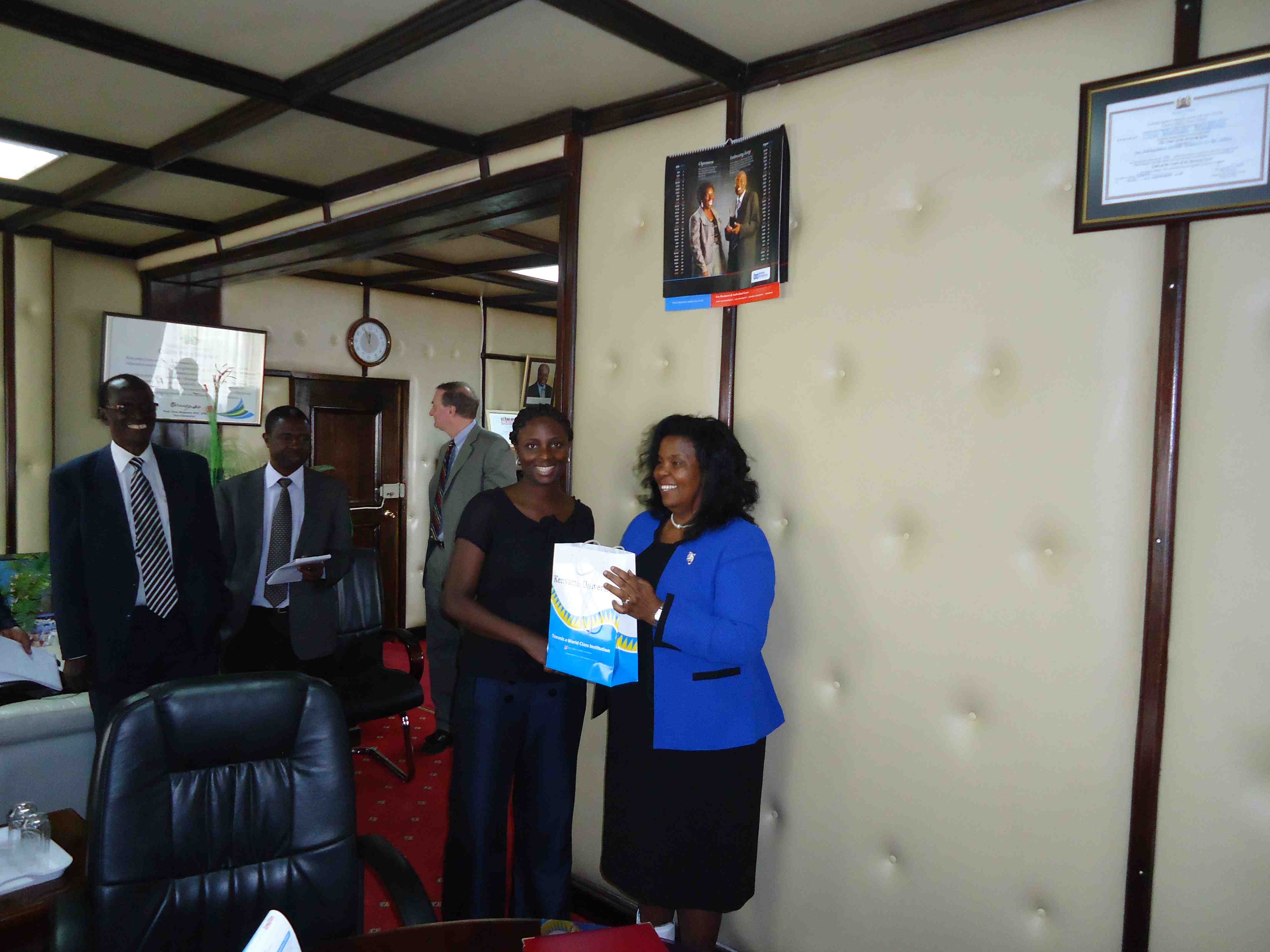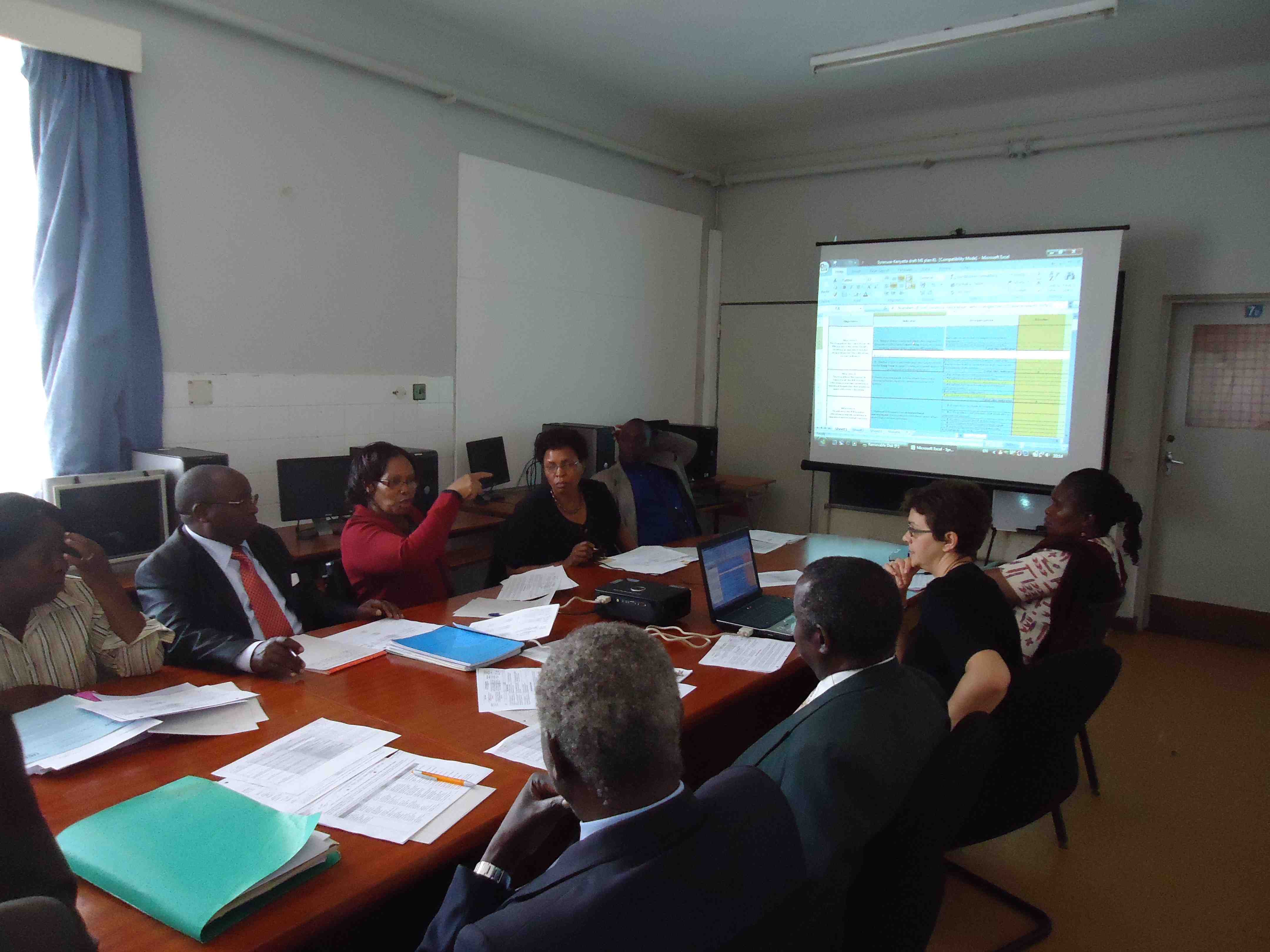 Staff members from Higher Education for Development (HED), which oversees our partnership through the Africa-U.S. Higher Education Initiative, came to Kenya for meetings with our team on July 11-13, 2011. Azra Nurkic, Director of Program Quality and Impact, and Kine Liddell, Senior Program Specialist, met with us to discuss our progress and especially our monitoring and evaluation plans. Terry Hartle, Senior Vice President of the American Council on Education (ACE), also participated in the meetings. The ACE is the major coordinating body for all higher education institutions in the United States and oversees HED. Kenya is unique among the 10 African countries to have partnerships through the Africa-U.S. Higher Education Initiative in that there are two partnership projects in Kenya—the Kenyatta University-Syracuse University project and the University of Nairobi-Colorado State University project. Our meetings included a meeting at the USAID mission in Kenya, where we briefed the USAID/Kenya staff members about our projects and our progress. The USAID/Kenya staff members expressed their support for our projects and encouraged us to find ways to make our project activities visible in Kenya.