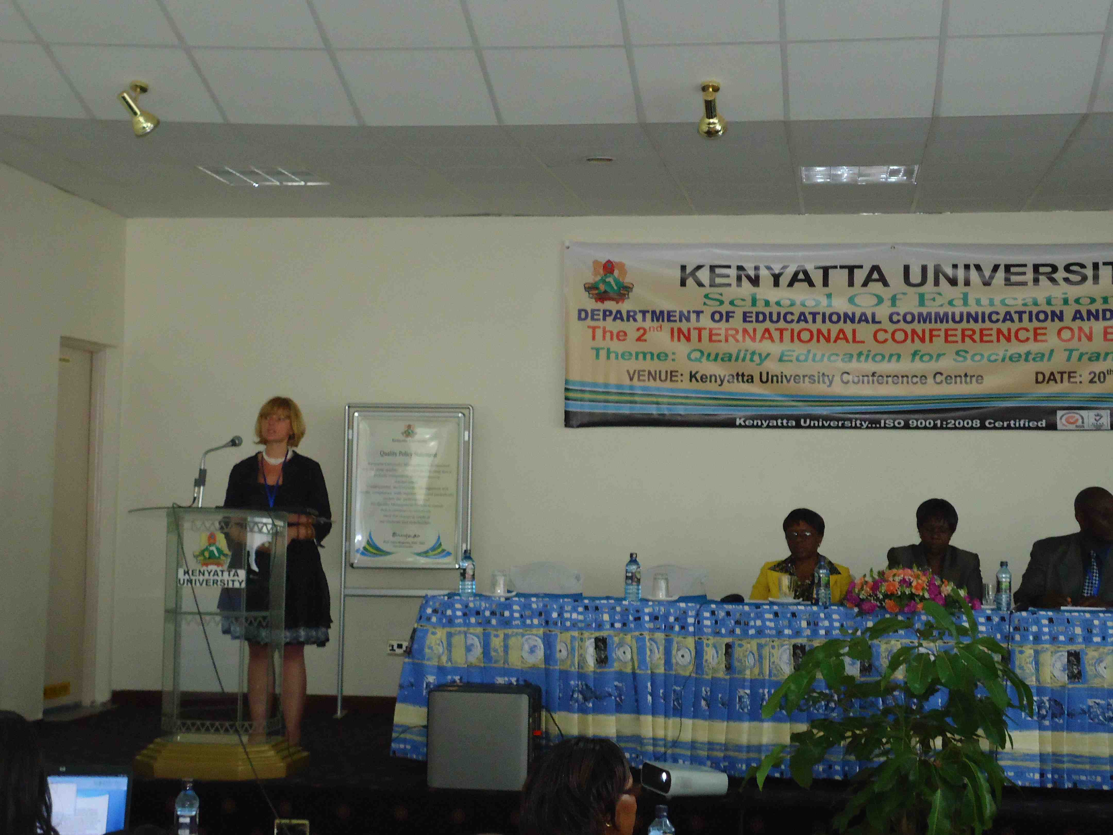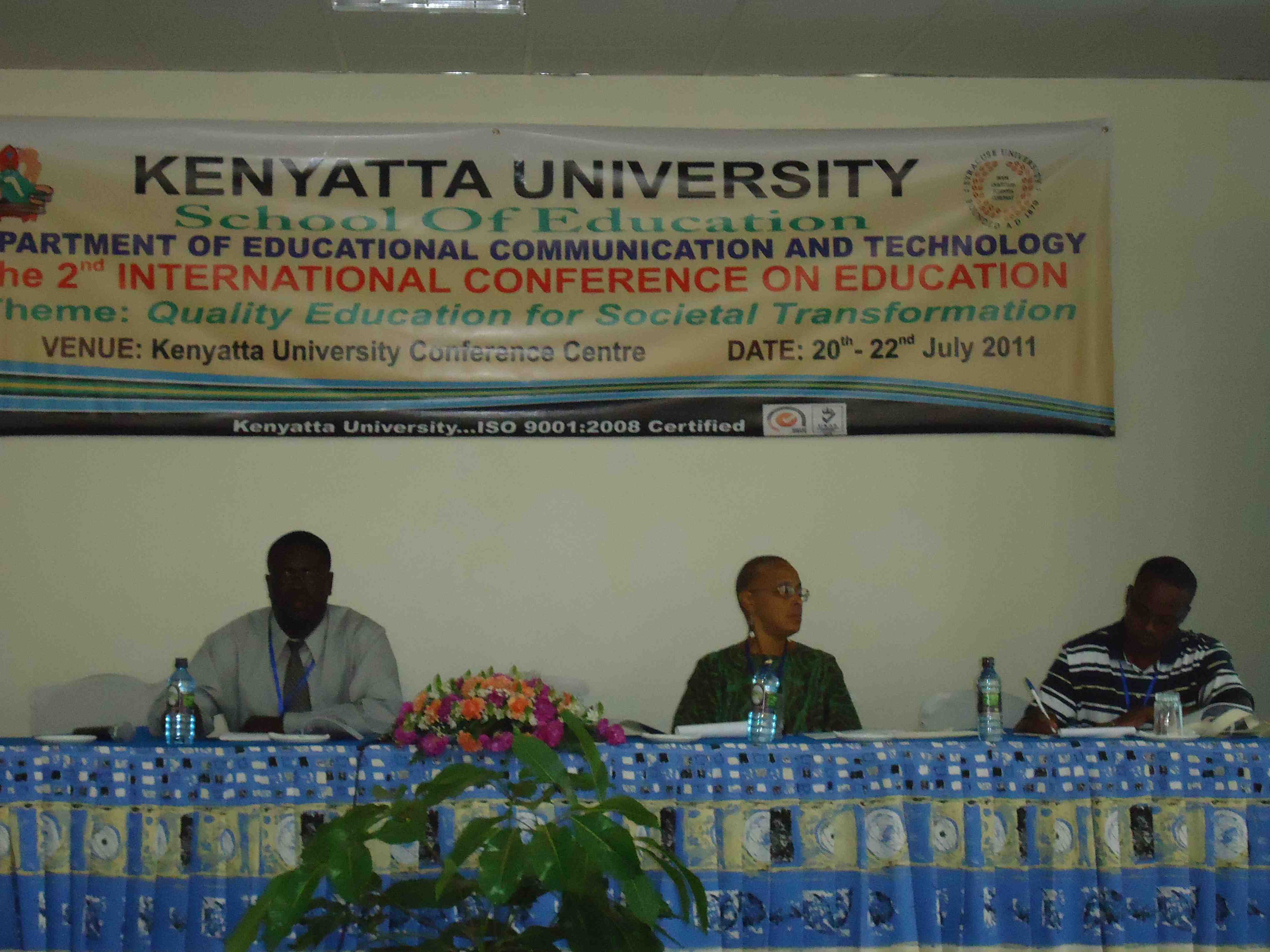 The 2nd International Conference on Education (ICE) took place July 20-22, 2011 at the Kenyatta University Conference Centre. The ICE was hosted by the School of Education at Kenyatta University and co-sponsored by the School of Education at Syracuse University. The conference theme was “Quality Education for Societal Transformation”. The conference was opened by the Minister for Higher Education, Science and Technology Prof. Hellen Sambili. There were over 100 participants from at least 10 countries—Canada, England, Ethiopia, India, Kenya, Nigeria, Poland, Tanzania, Uganda, United States. The conference was closed by Mr. Enos Oyaya, Director, Quality Assurance and Standards, Ministry of Education.