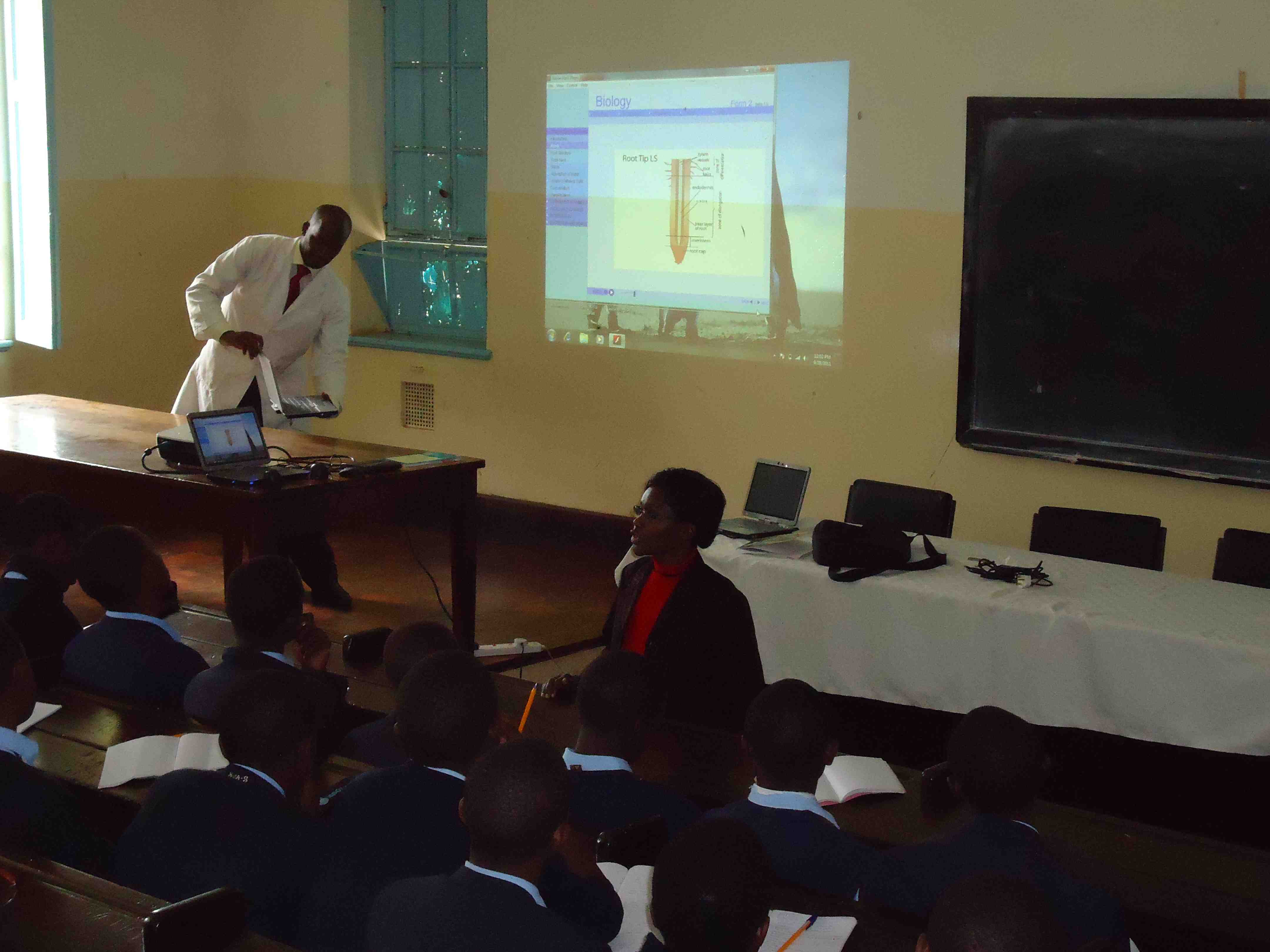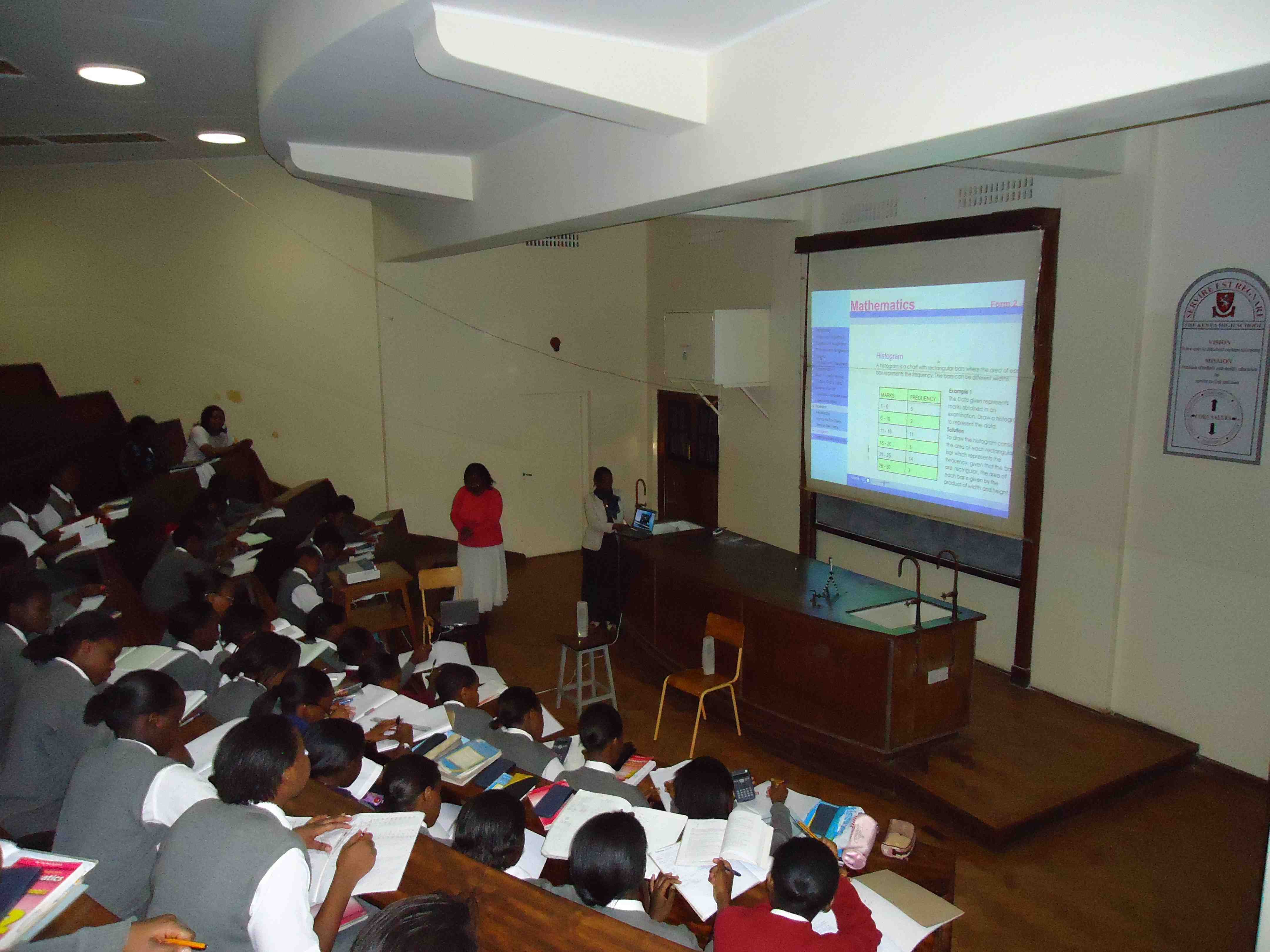 Through our HP Catalyst Initiative, we are working with eight teachers from two secondary schools (a teacher in biology, chemistry, mathematics and physics at each school). Four of the teachers work at Kenya High, a national girls secondary school in Nairobi, and the other four work at Nairobi School, a national boys secondary school in Nairobi. We have had workshops with these teachers this year and each of them was given a HP Tablet computer through our project. Recently, we have gone to observe and support these teachers in integrating technology into their teaching, especially in ways to support student conceptual learning.