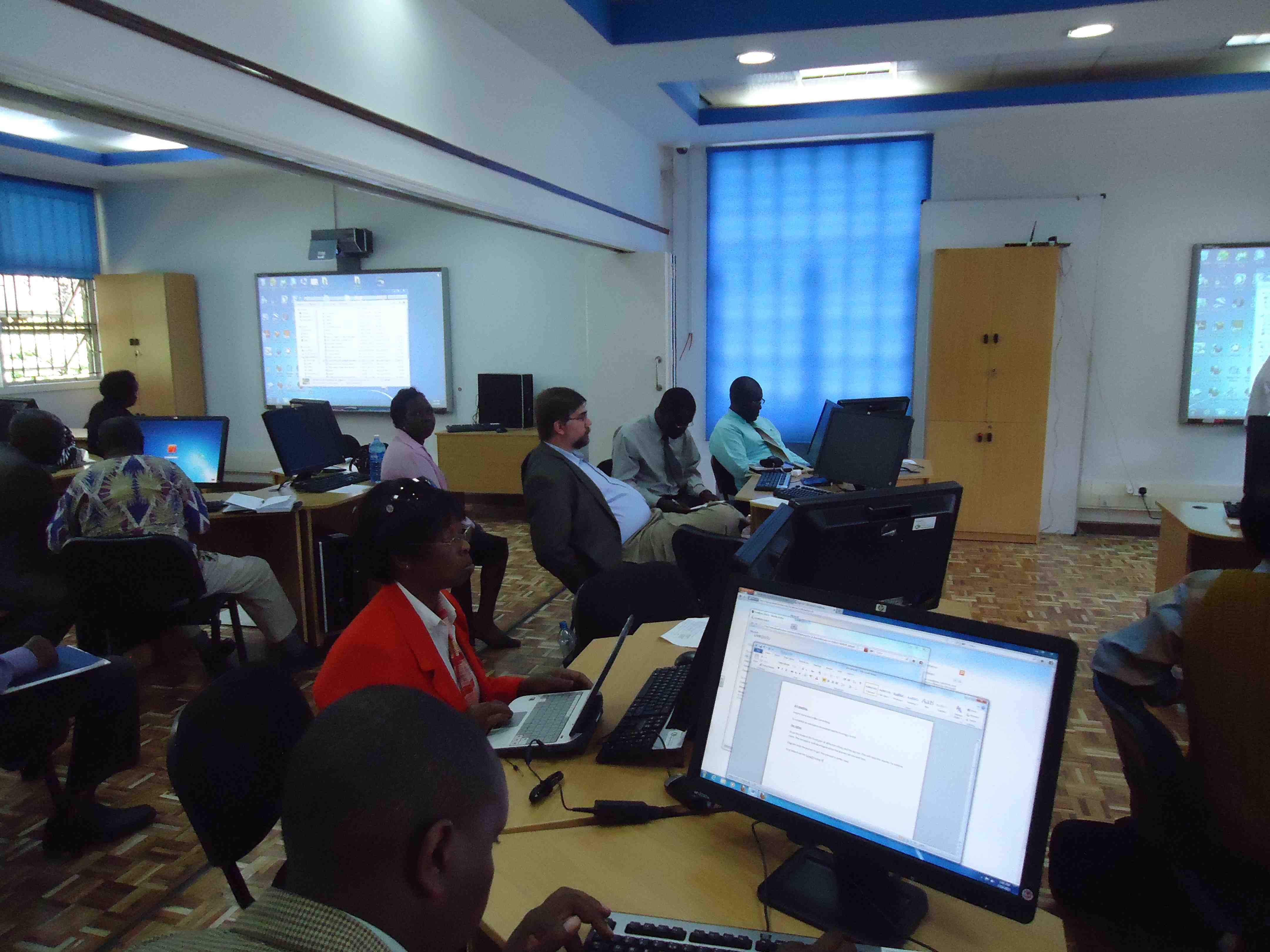 On January 10, 2012, the teacher education faculty members of the Department of Educational Communication & Technology went to the National ICT Innovation and Integration Centre (NI3C) for a workshop on integrating technology into their classroom practice and preparing teachers to be able to integrate technology into their classrooms. The NI3C is part of the Ministry of Education of the Government of Kenya and is supporting teachers at all levels with technology integration. We have established a sub-committee comprised of KU-SU team members, NI3C staff members and a Ministry of Education staff member to work on developing a plan for further professional development for all departmental faculty members.