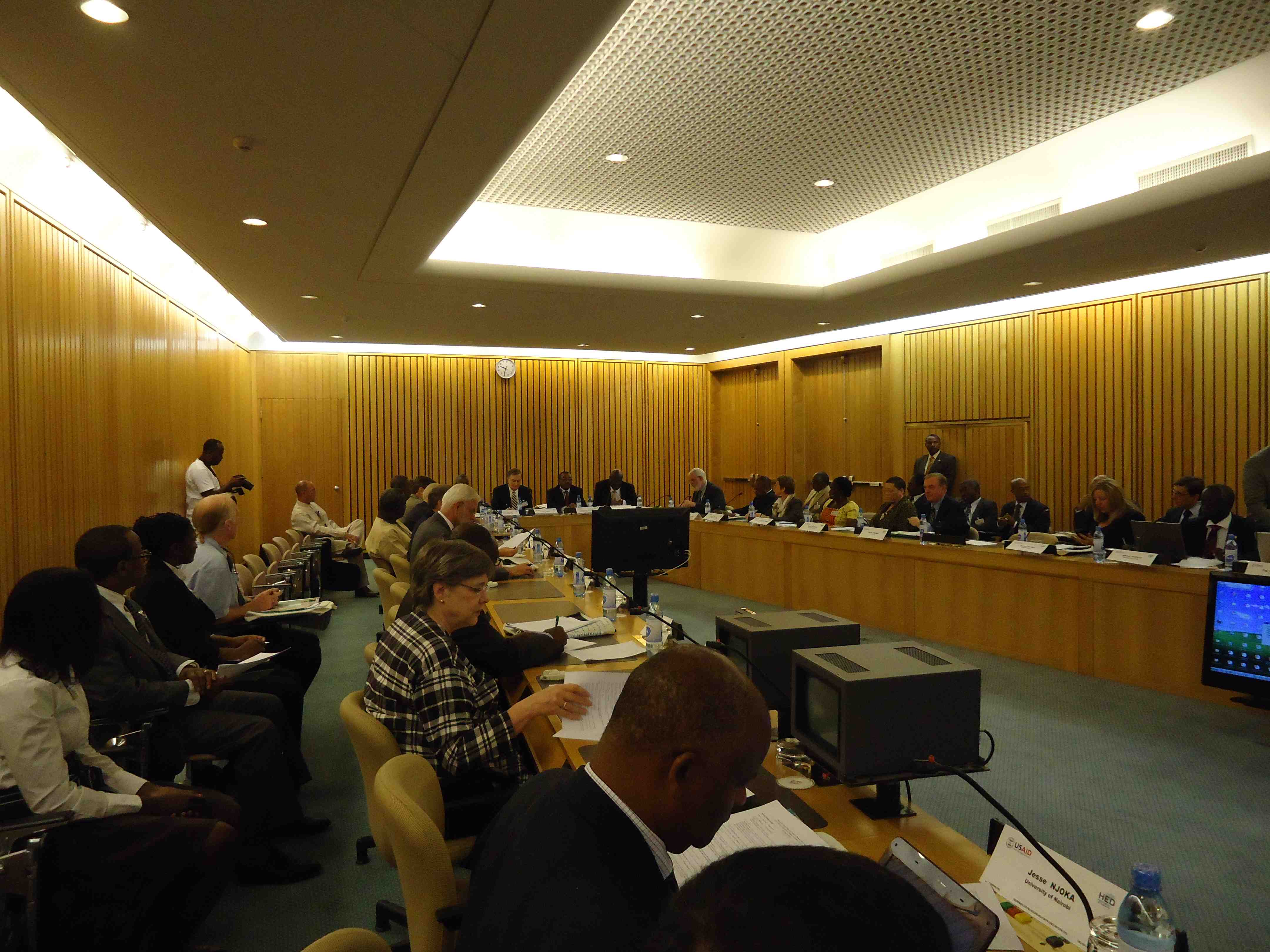 Higher Education for Development (HED) organized an Africa-U.S. Higher Education Initiative Partners’ Meeting that was held at the United Nations Conference Centre in Addis Ababa, Ethiopia February 13-15, 2012 for the African and U.S. partnership directors and invited guests from various development agents. Addis Ababa University and the Ethiopian Ministry of Education assisted in hosting the meetings. Representatives from the Africa-U.S. Higher Education Initiative, Addis Ababa University, the American Council on Education, the Association of Public and Land-grant Universities (A•P•L•U), Higher Education for Development, the Association of African Universities, the World Bank, the African Union Commission, the U.S. Embassy in Ethiopia, Ethiopian Ministry of Education, USAID/Ethiopia, the African Capacity Building Foundation, the European Universities Association, the Regional Universities Forum for Capacity Building in Agriculture (RUFORUM), the University of Cape Coast in Ghana, as well as 2009 World Food Prize Laureate Gebisa Ejeta and several partnership directors of other successful USAID- and HED-sponsored partnerships in Africa presented during the meetings. Also contributing at the meetings were representatives from the Association of American Universities, the American Association of State Colleges and Universities, and the National Association of Independent Colleges and Universities. A special focus of the meetings were the presentations by and discussions of each of the 11 Africa-U.S. Higher Education Initiative partnerships on their activities, outcomes, challenges and lessons learned to date.