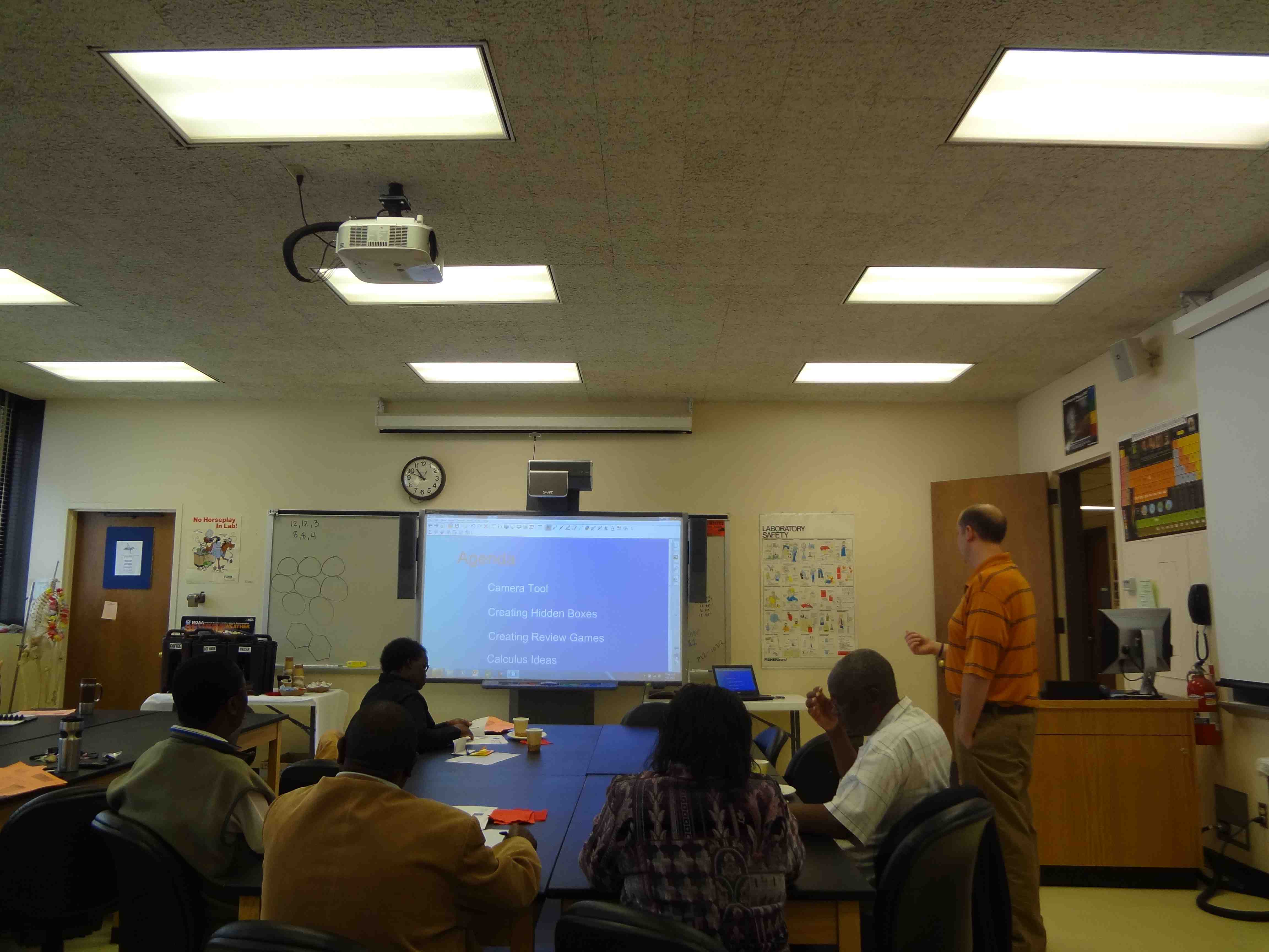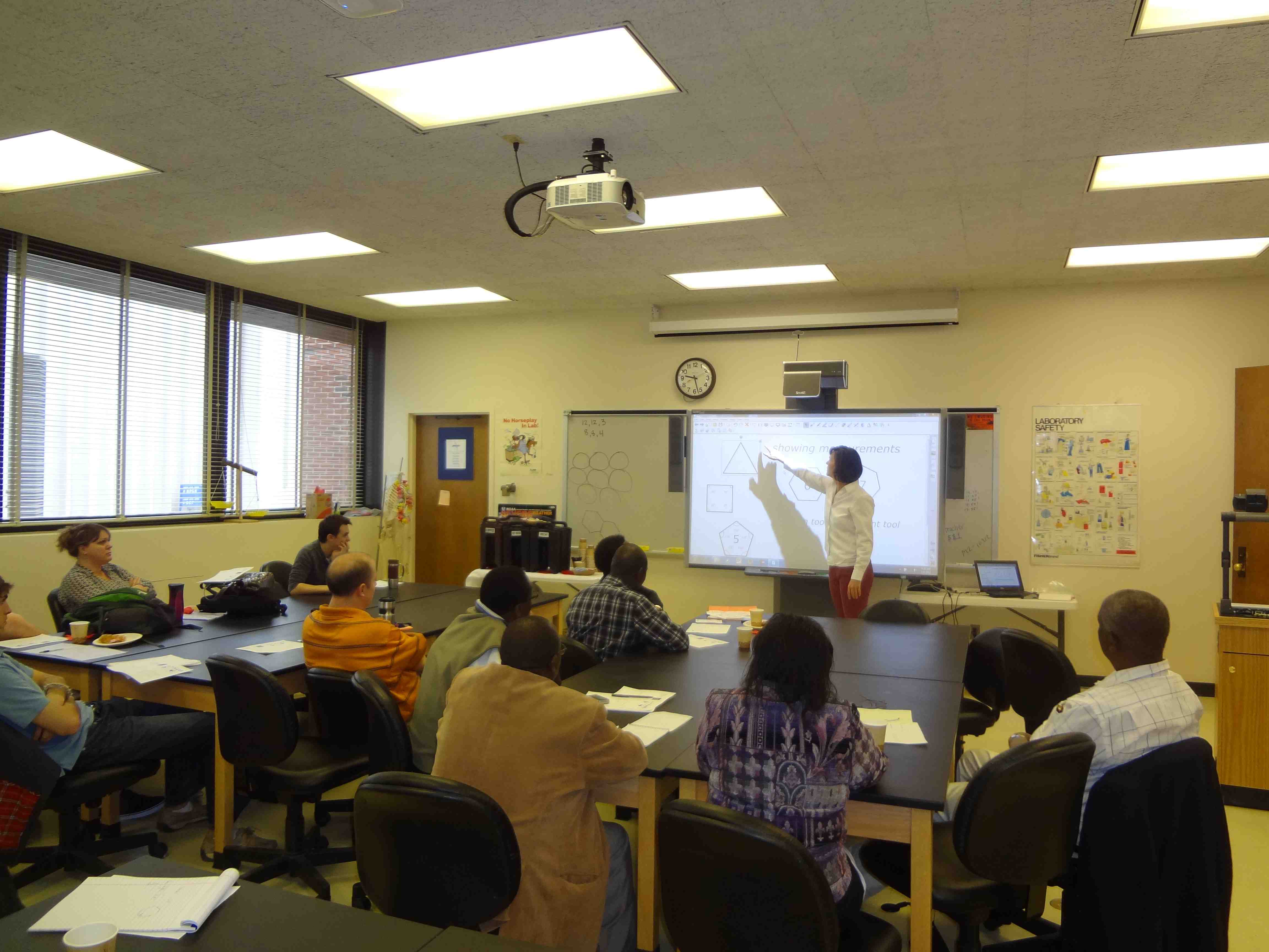 Six Kenyatta University faculty members (Adelheid Bwire, Agnes Gathumbi, David Khatete, John Kimemia, Bernard Mugo, Michael Waititu) who are currently at Syracuse University through scholar exchanges or a “sandwich degree” program participated in a SMART Board workshop, held on the SU campus and led by four Syracuse-area high school mathematics and science teachers on May 5th.